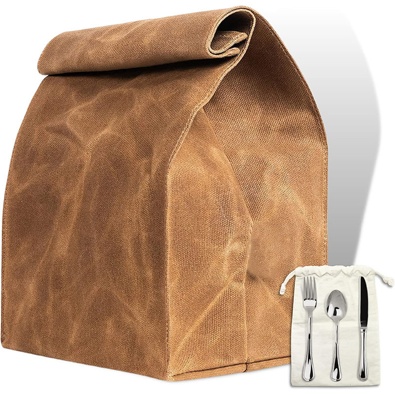 跨境专供油蜡帆布午餐包上班族饭盒保鲜便当包铝膜保温
