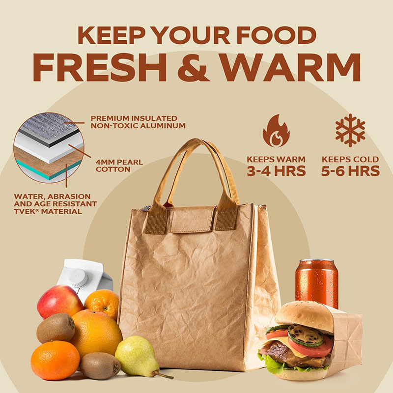 厂家杜邦纸保温便当包防水牛皮纸午餐包手提饭盒袋户外野餐包冰包