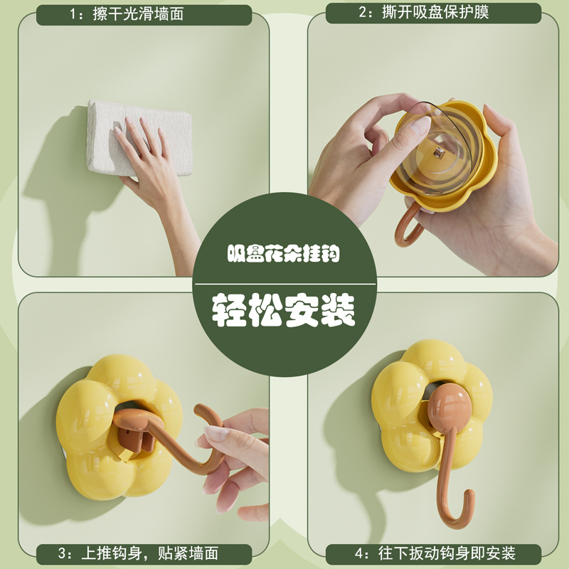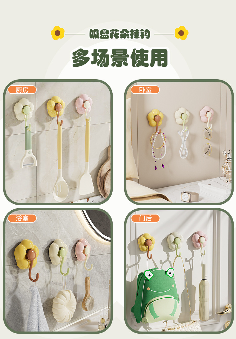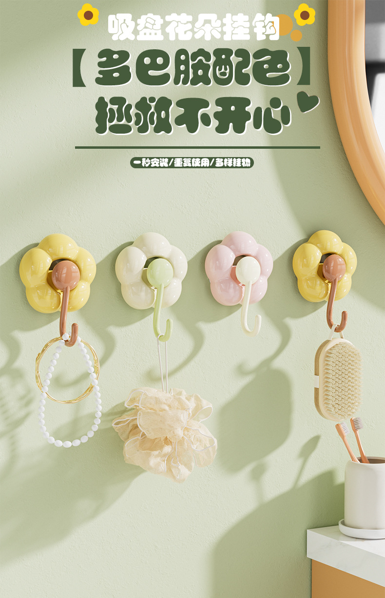 吸盘花朵挂钩真空强力无痕免打孔粘钩家用浴室厨房门后卫生间