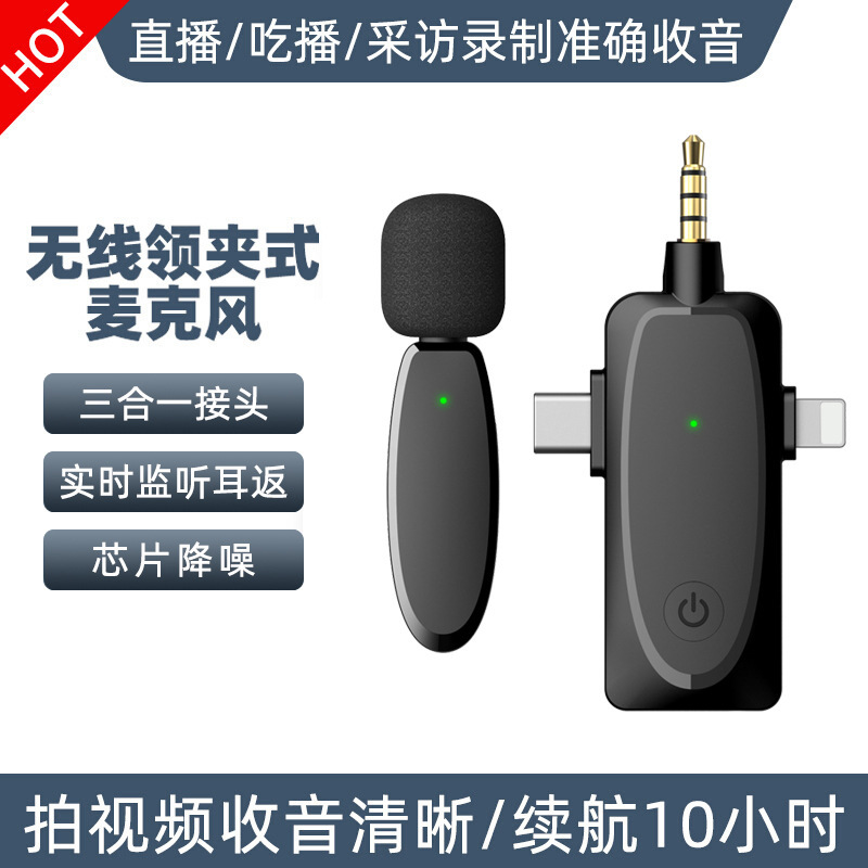 AP003跨境手机直播无线领夹麦克风一拖二直播收音迷你无线麦克风