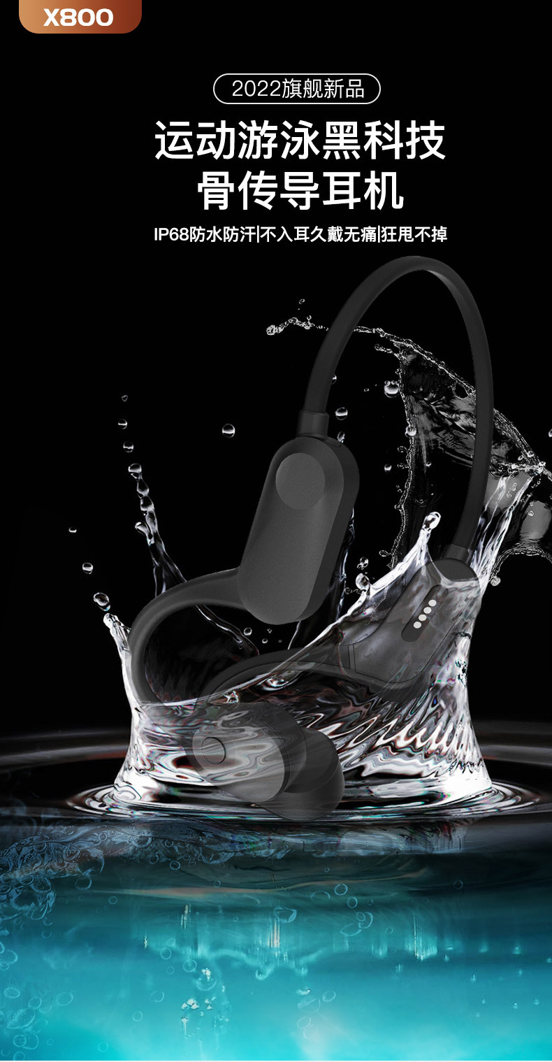 X800跨境骨传导蓝牙耳机游泳防水带内存跑步运动无线耳机高音质