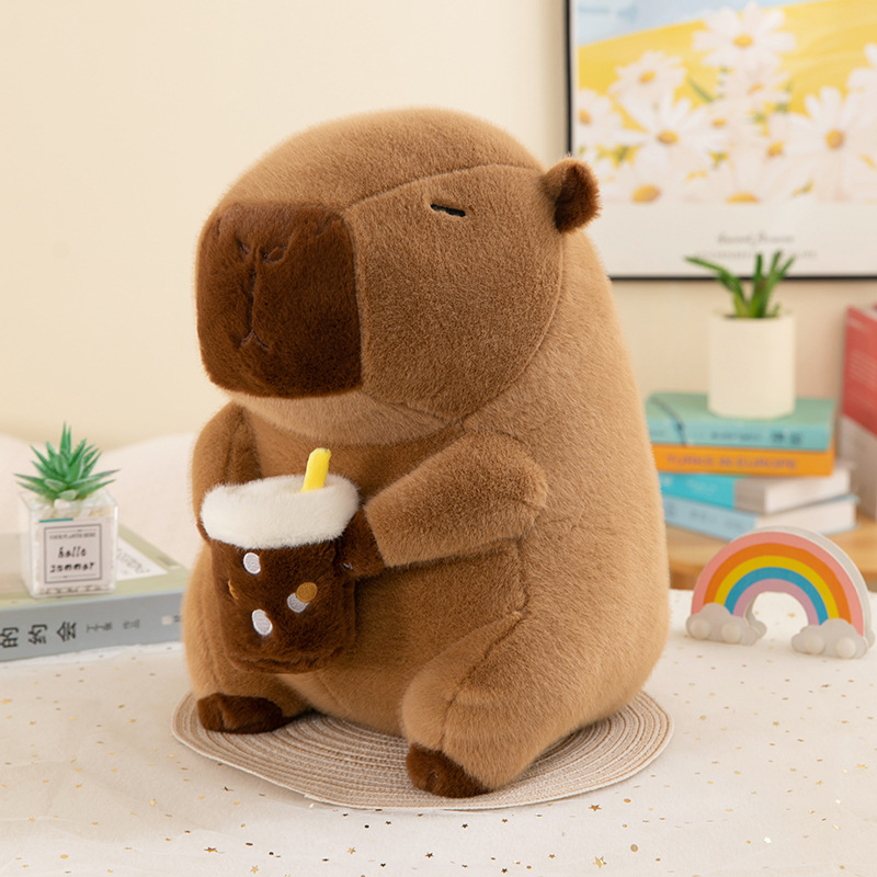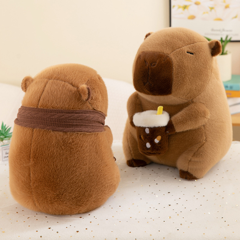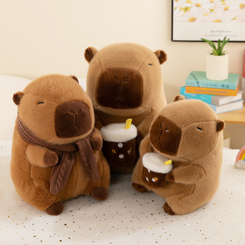 跨境卡皮巴拉奶茶杯公仔玩偶毛绒玩具围巾水豚玩偶水豚仔豚鼠
