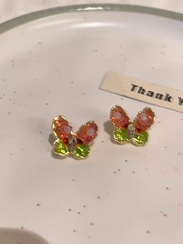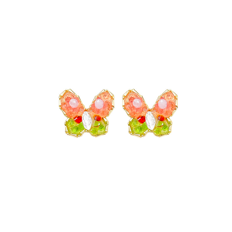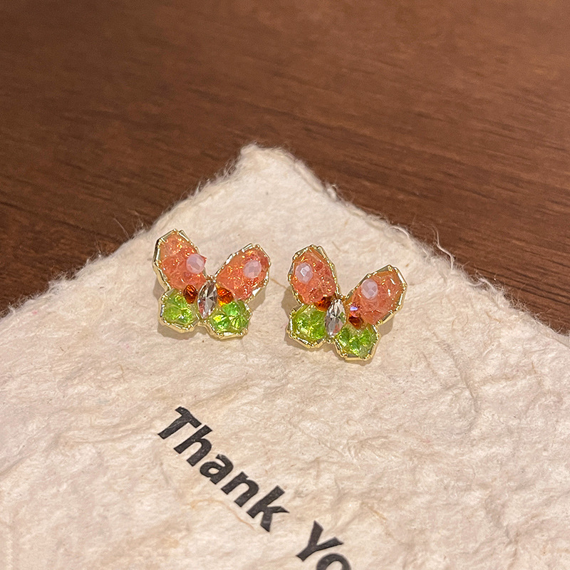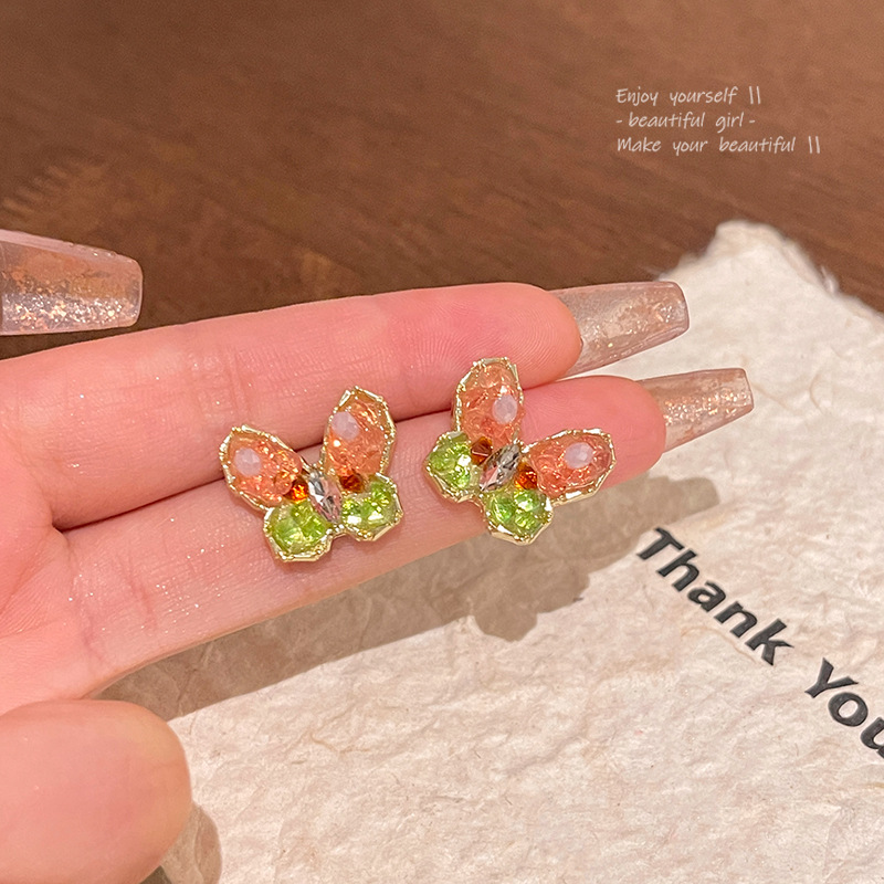 饰品S925银针超仙百搭气质耳环网红耳饰彩色水晶碎钻蝴蝶耳钉女