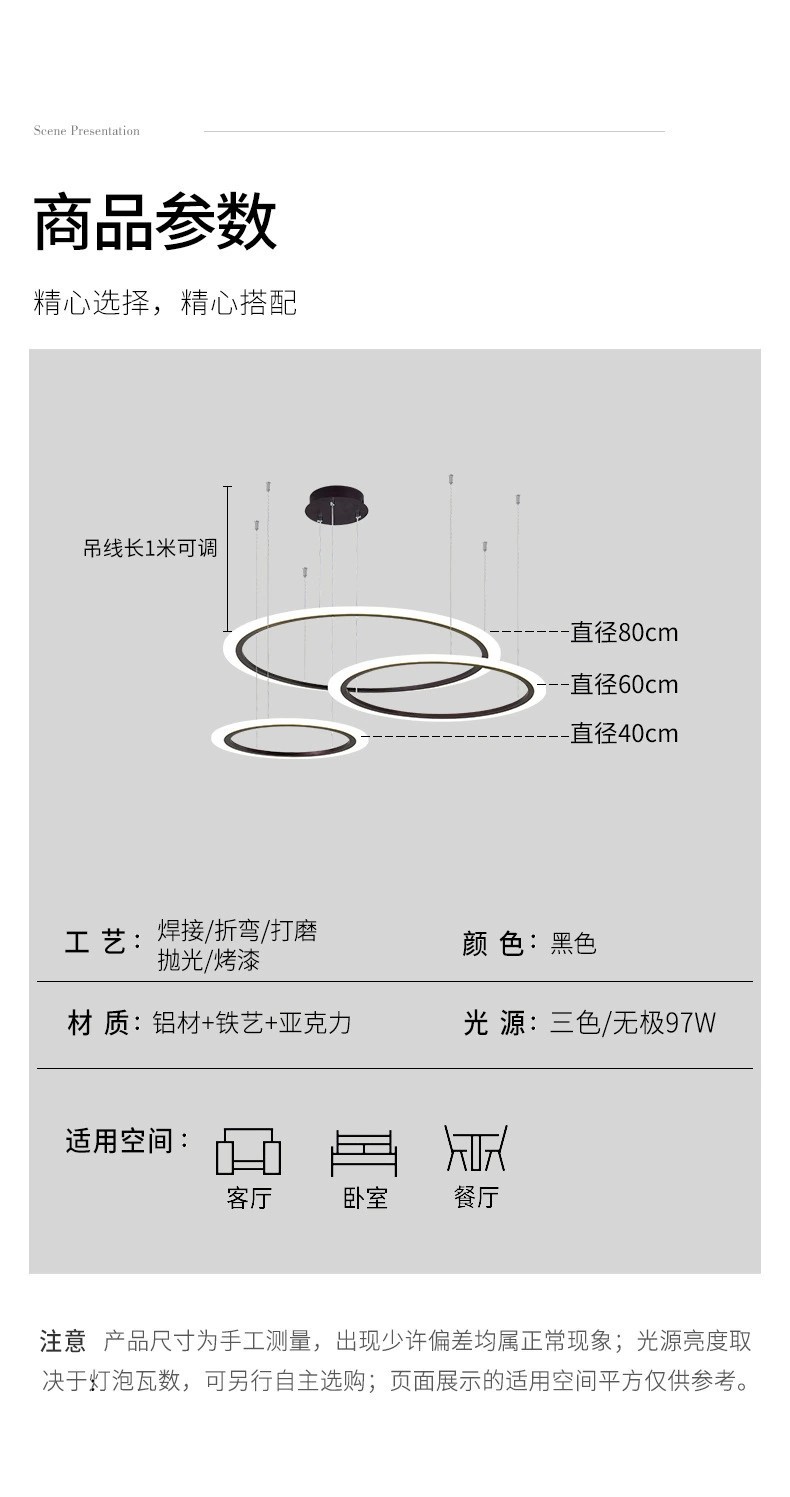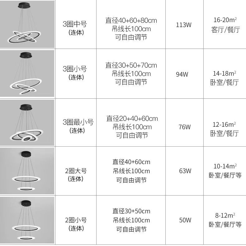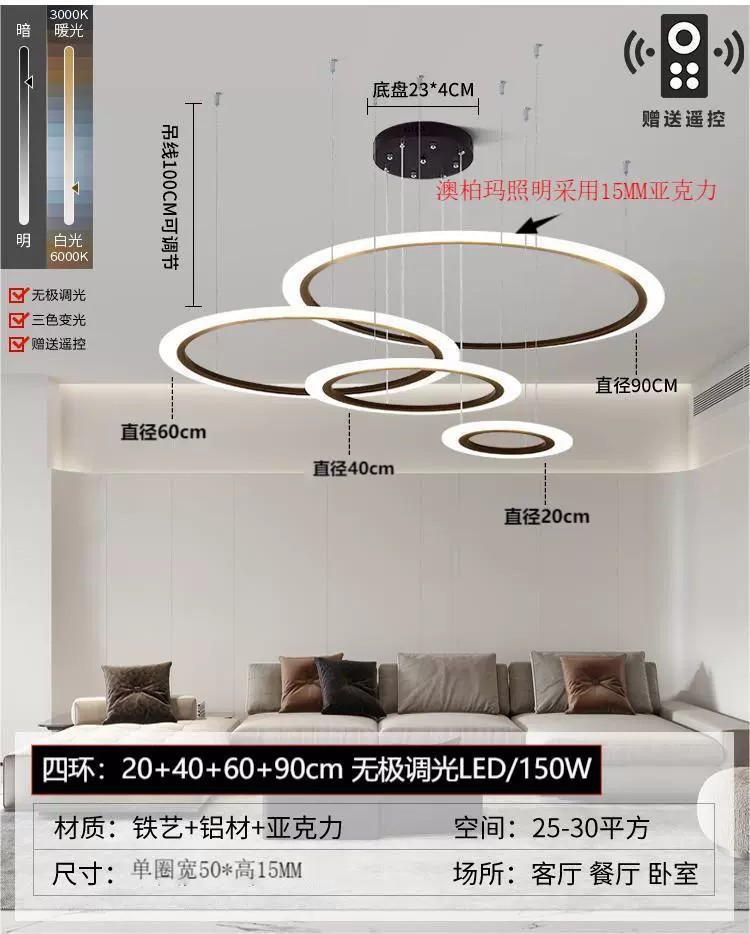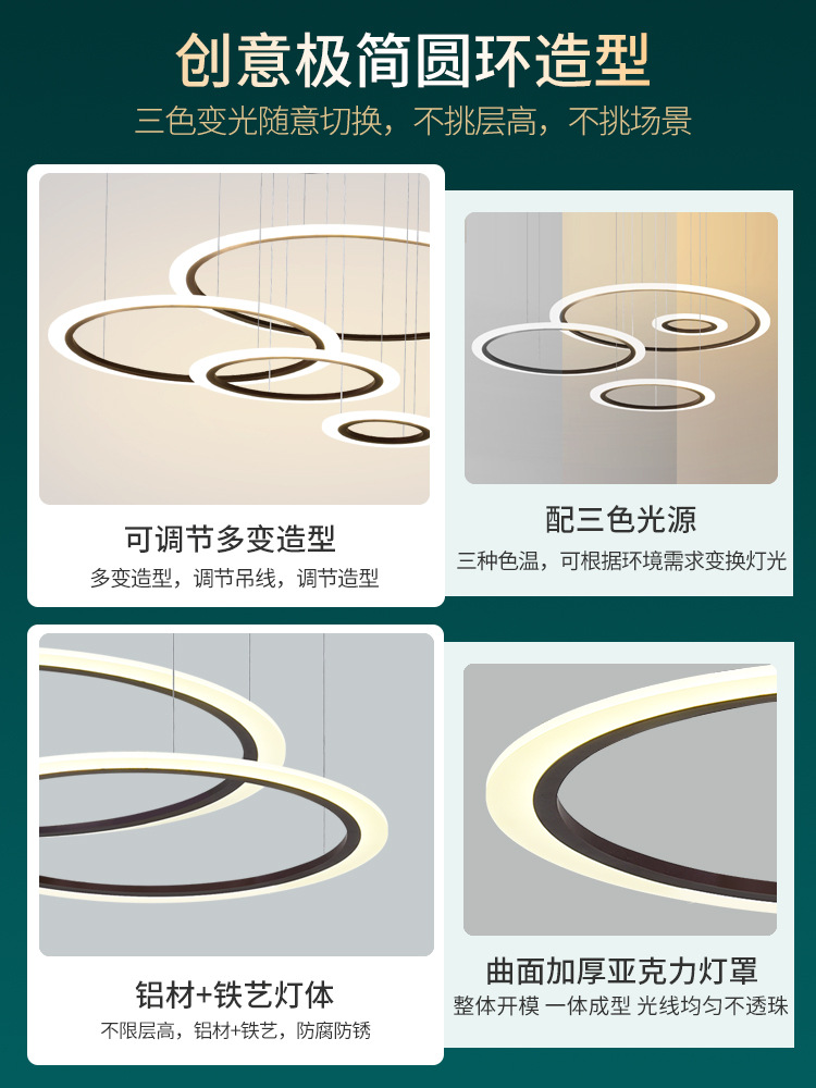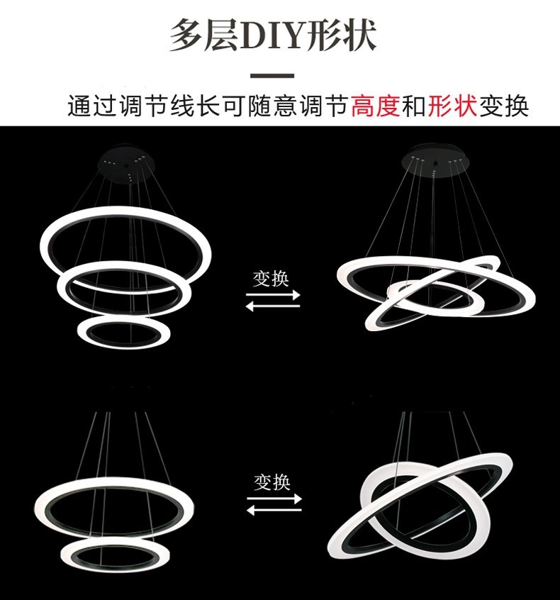 外贸专供北欧简约圆环灯客厅吊灯家用亚克力led中山灯具