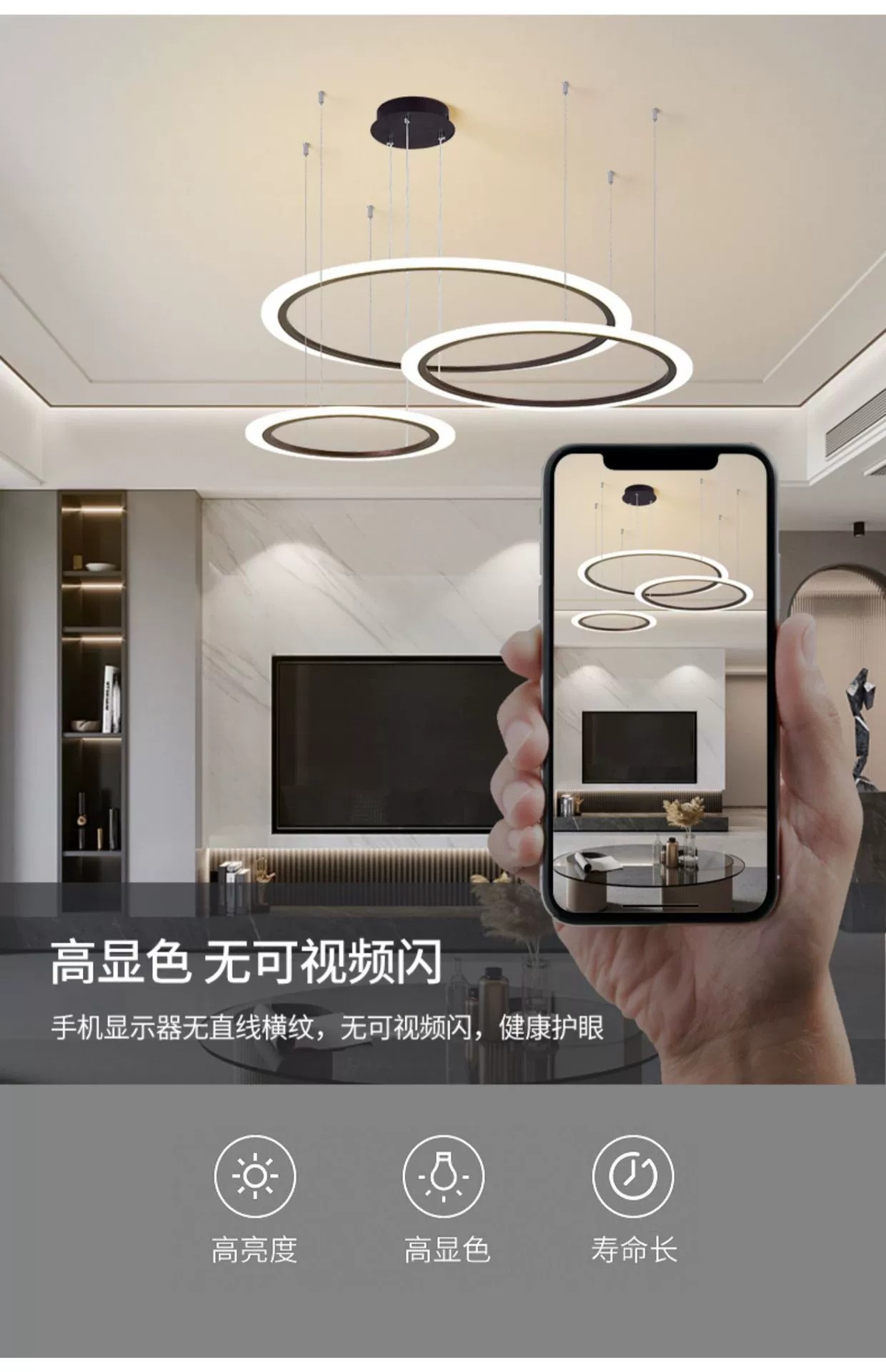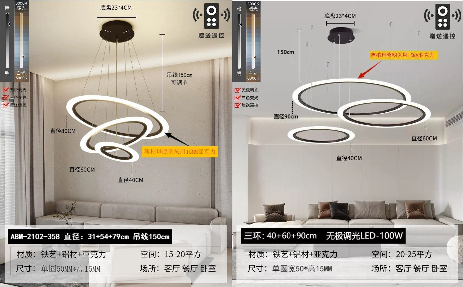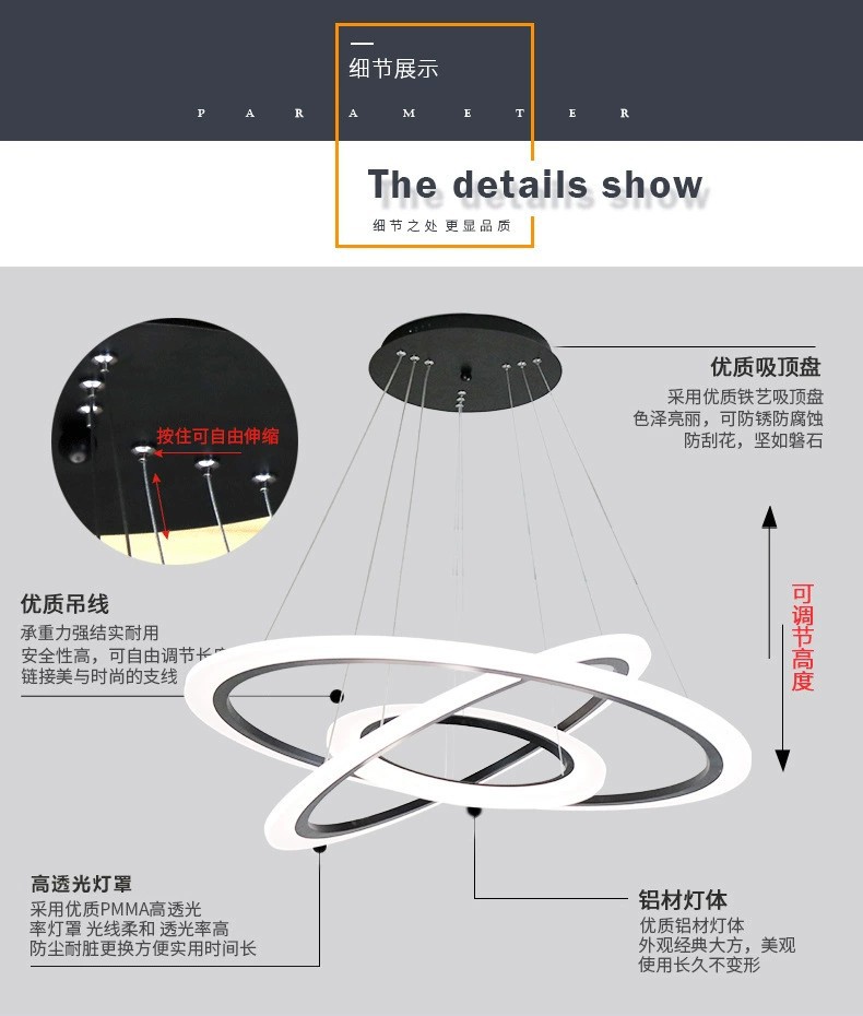 外贸专供北欧简约圆环灯客厅吊灯家用亚克力led中山灯具