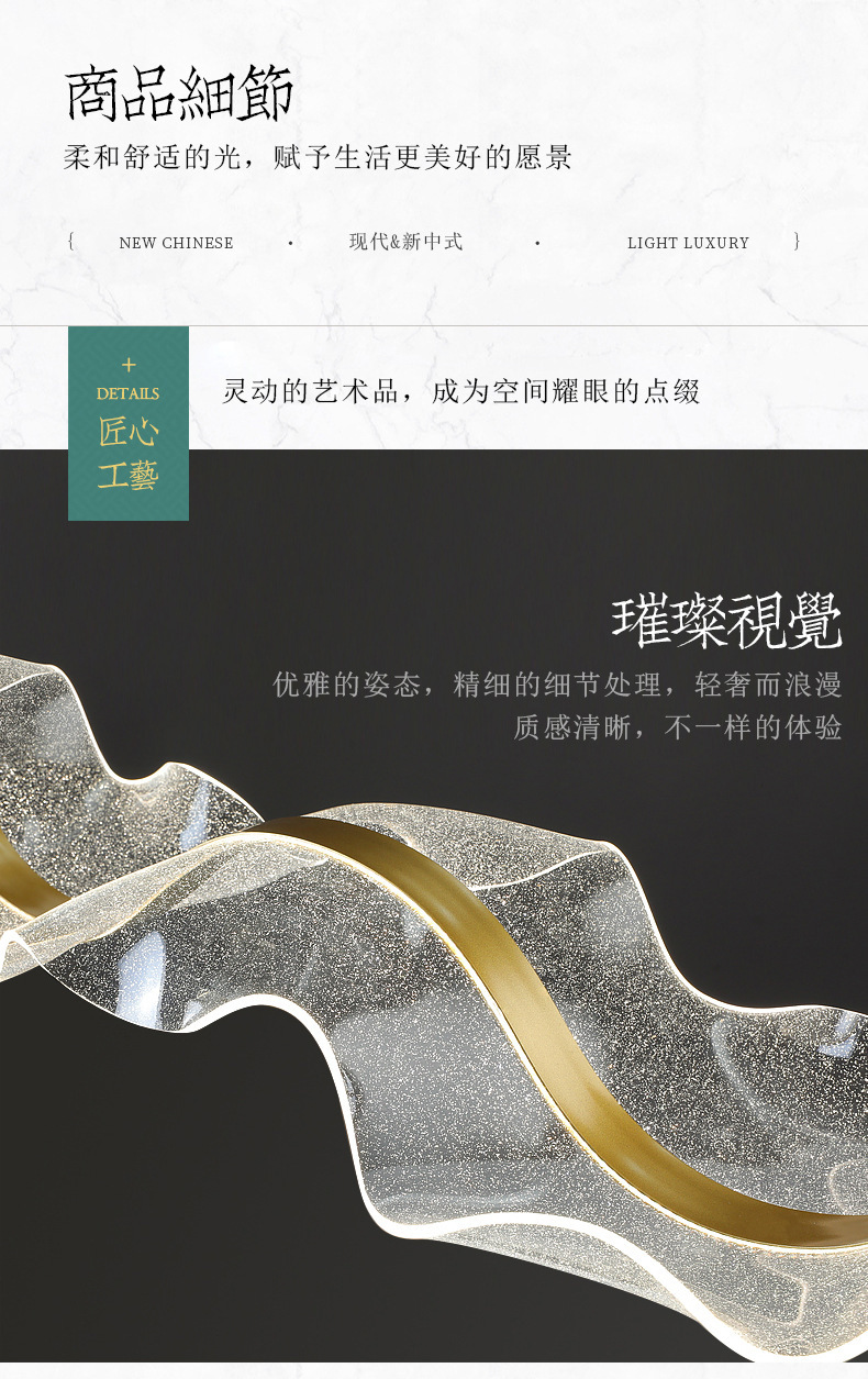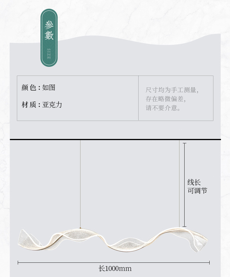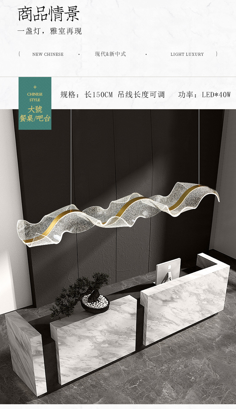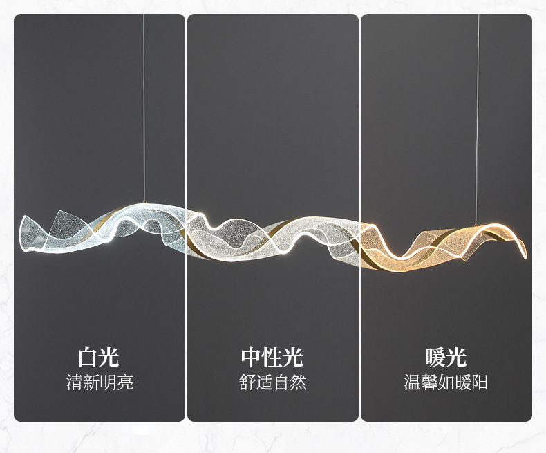 外贸专供亚克力艺术飘带吊灯led长条波浪形前台收银台吧台灯直供