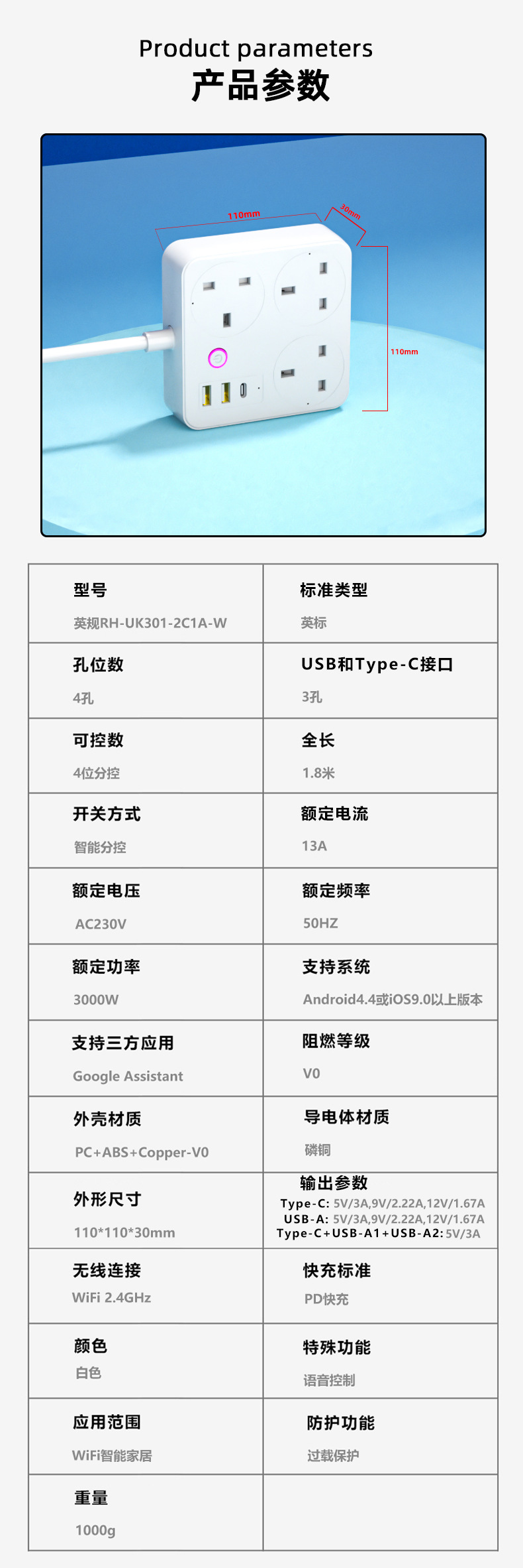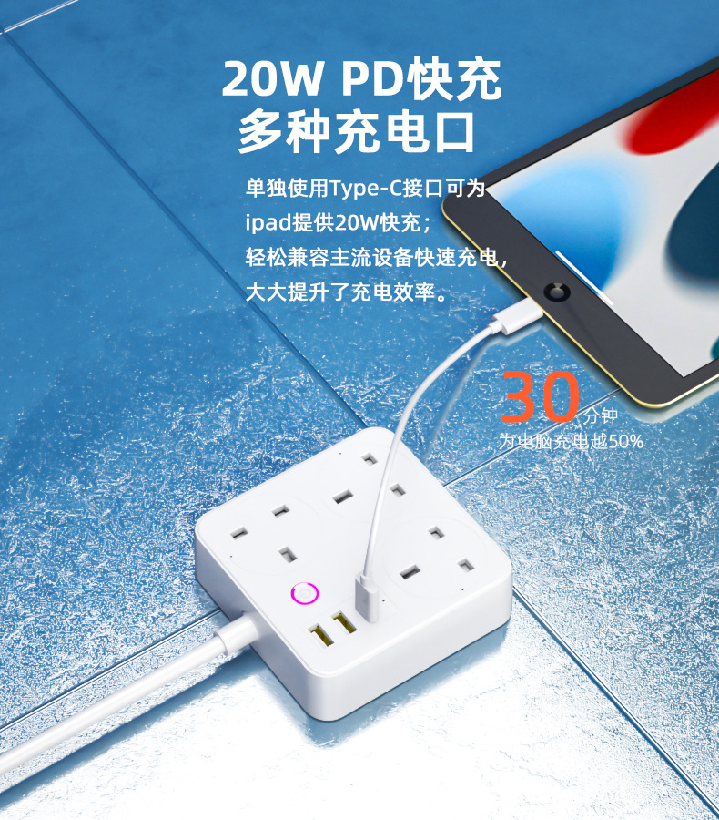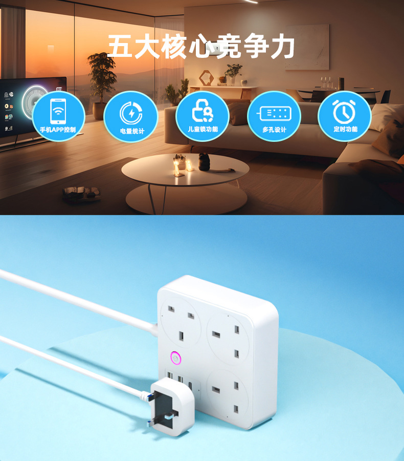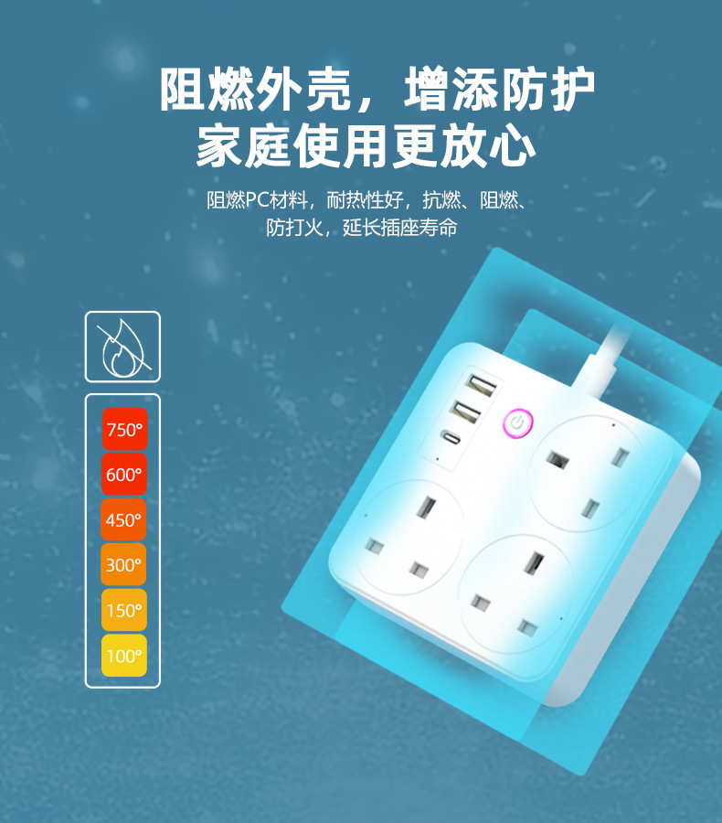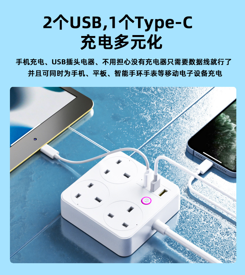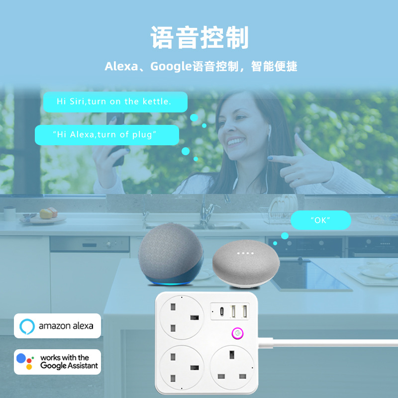 智能排插涂鸦英标欧标阻燃快充插座家用WIFI多孔定时插排插线板