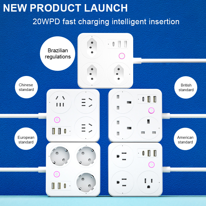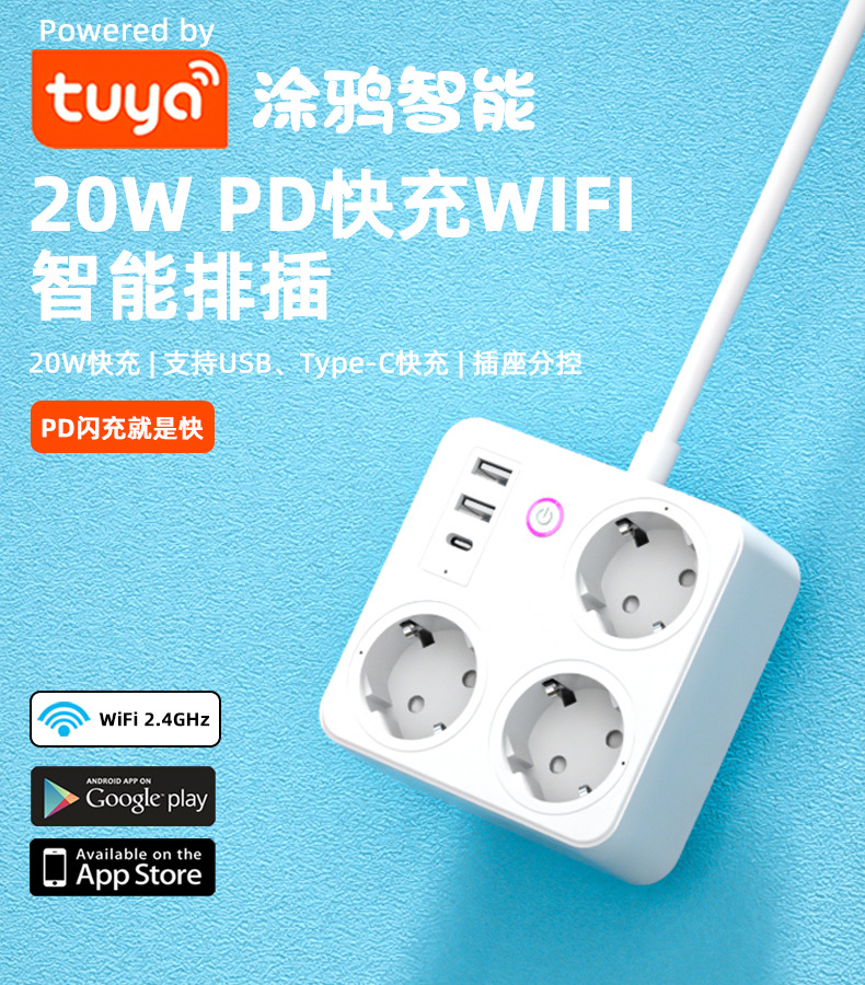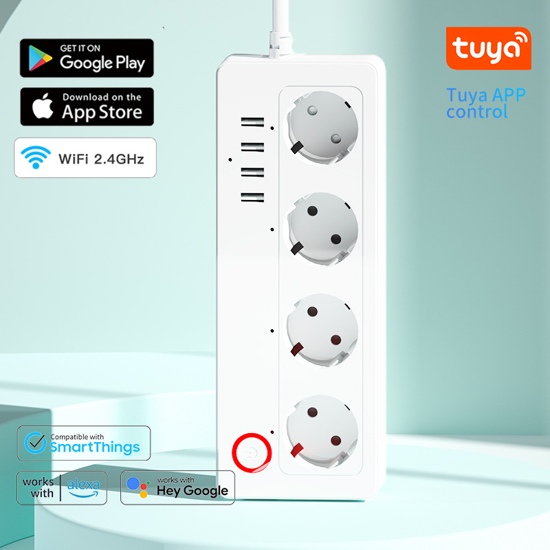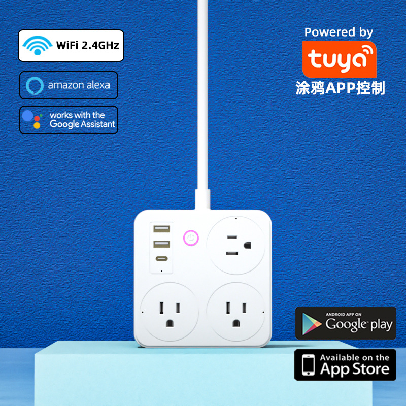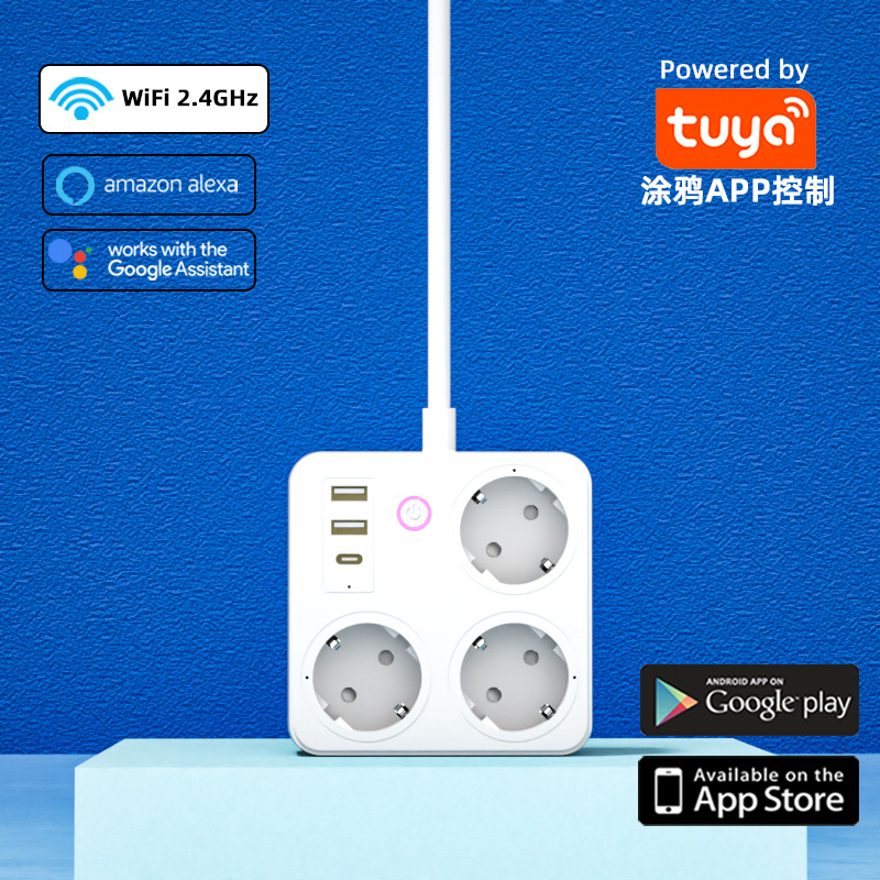 跨境欧标排插智能德标英标美标插线板涂鸦WIFI家用计量多插位插座