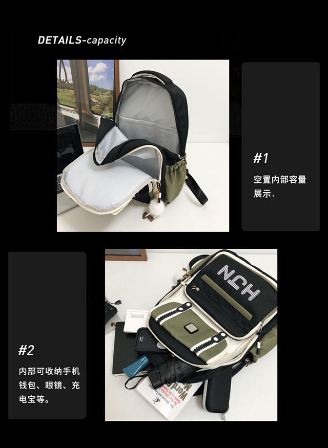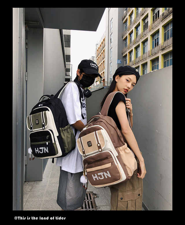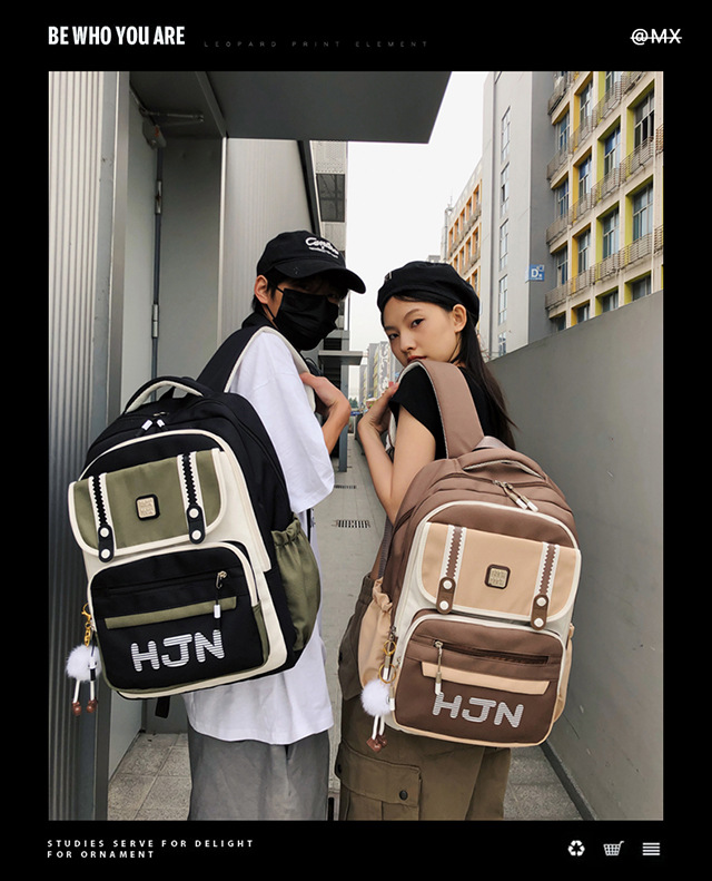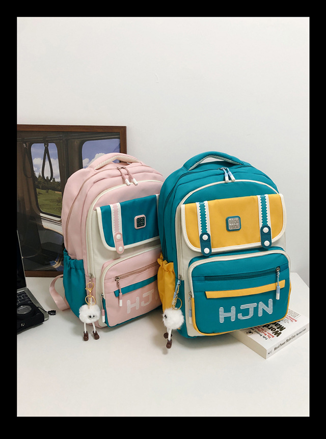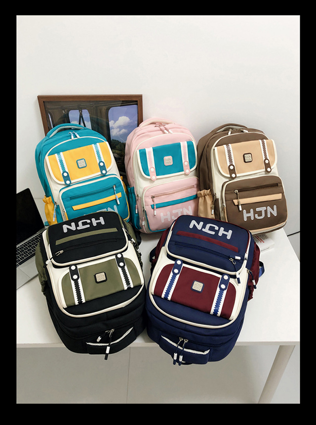 书包撞色初中大学生高中生双肩包ins小学生背包