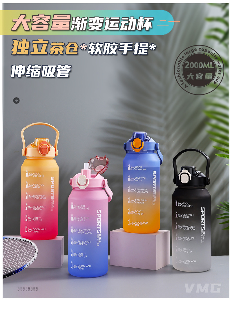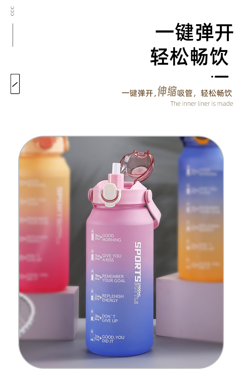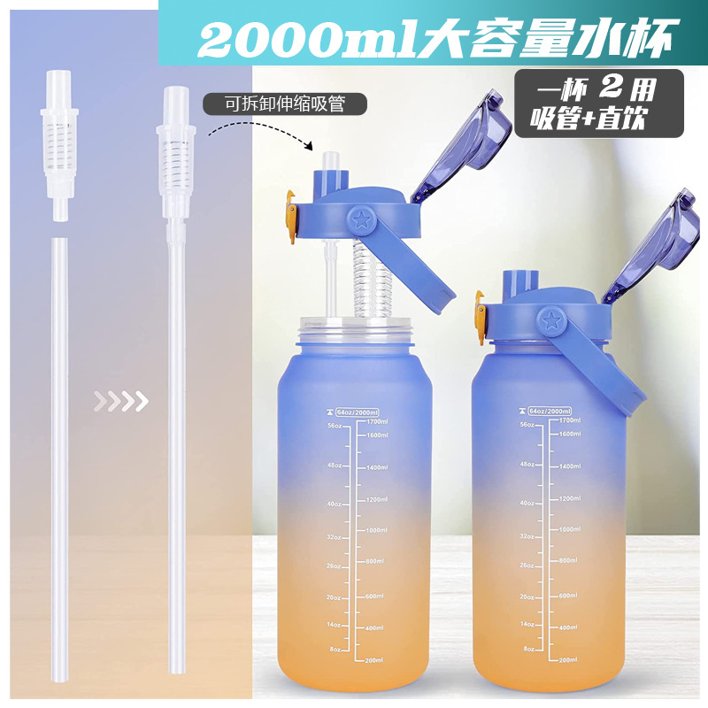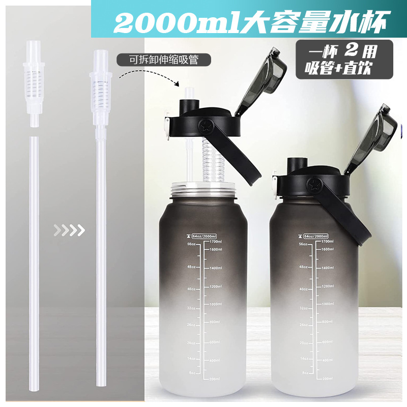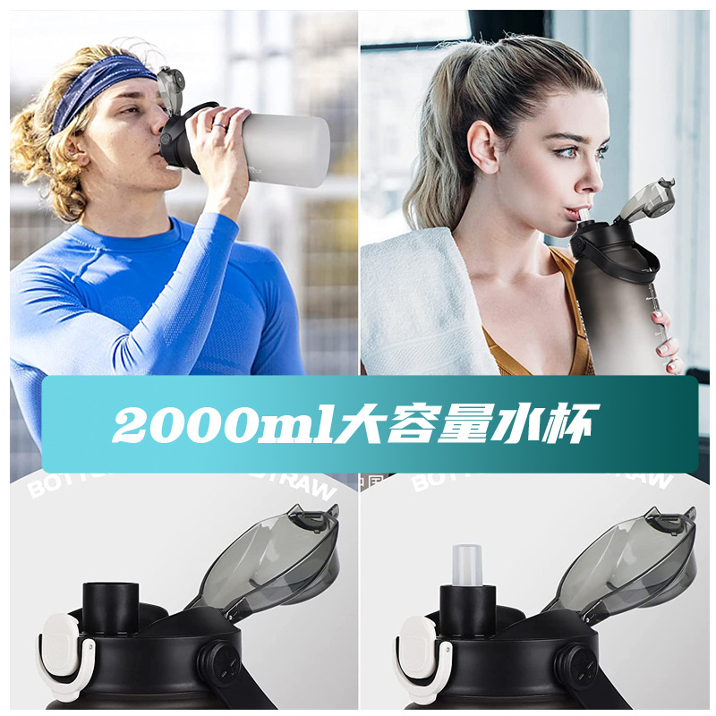 2000ml水杯大容量男生女士带吸管水壶高颜值磨砂运动户外塑料杯子