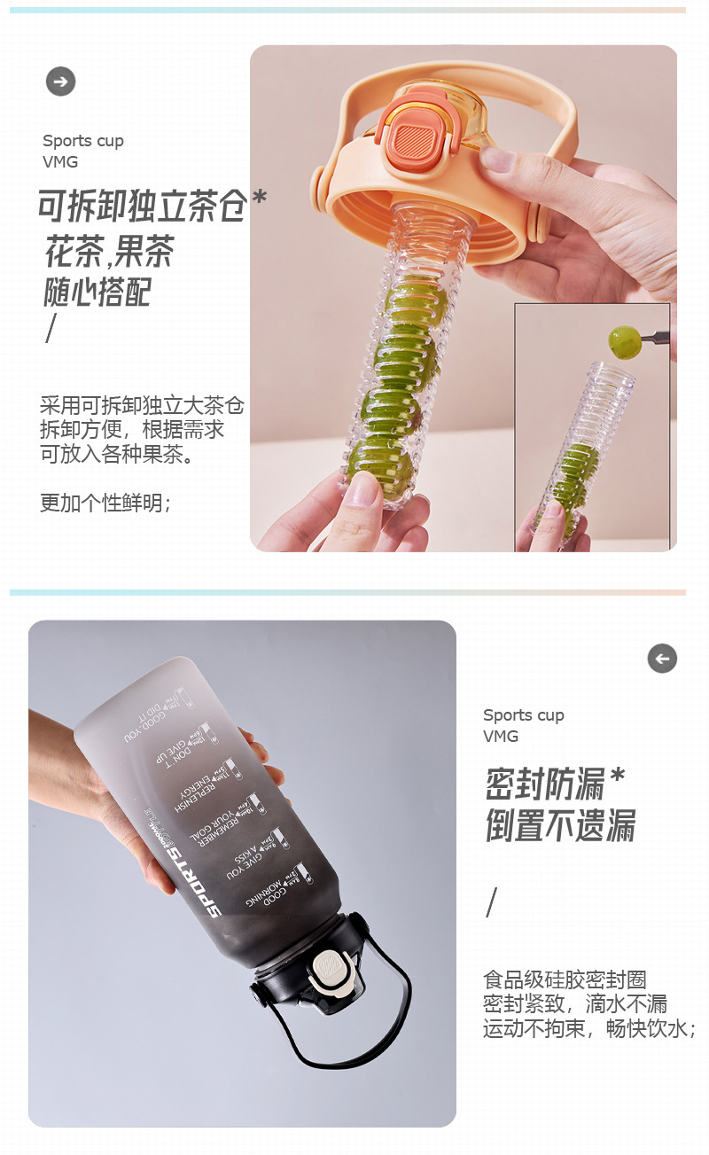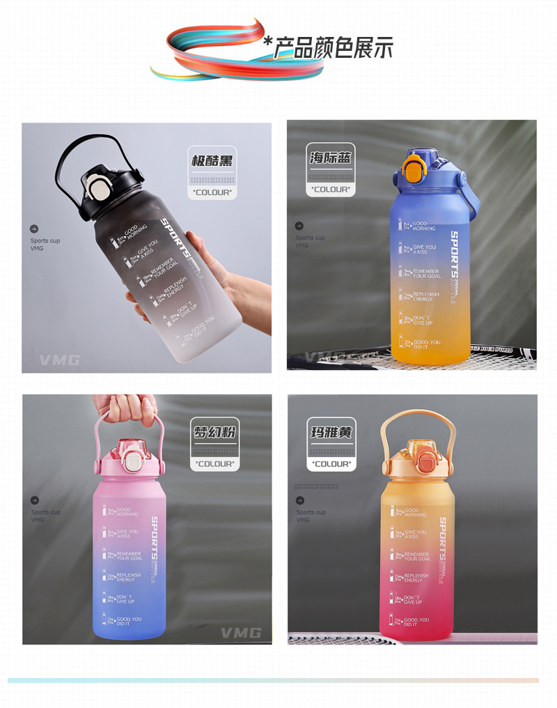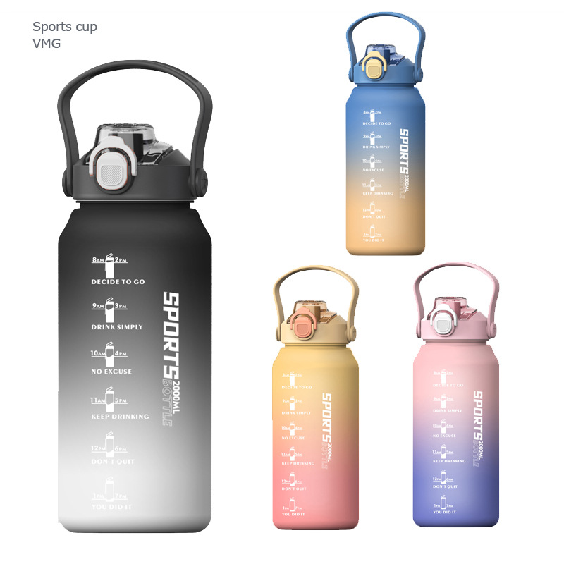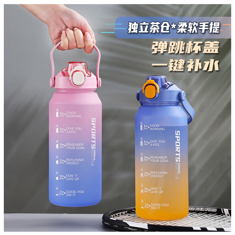 2000ml水杯大容量男生女士带吸管水壶高颜值磨砂运动户外塑料杯子