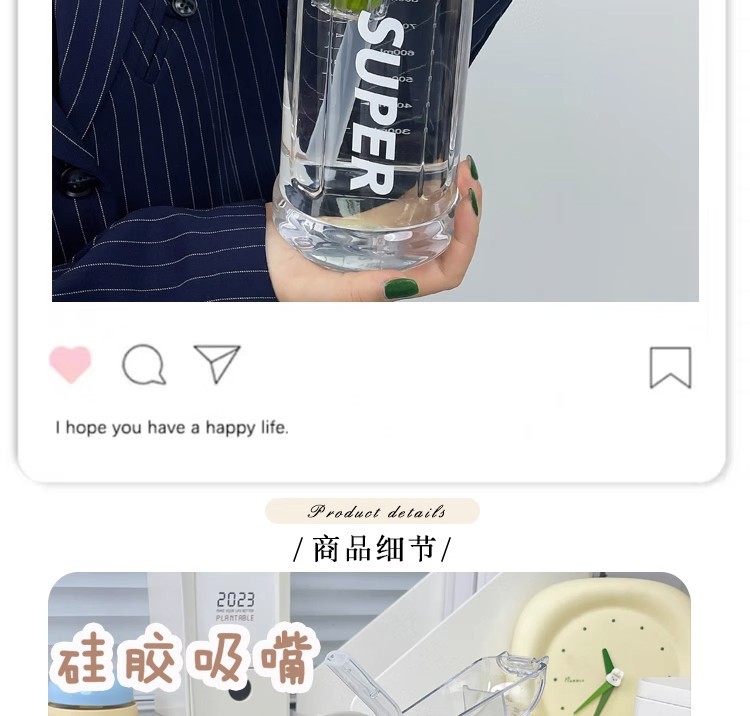 1500ml大容量水杯男女学生耐高温运动水壶户外水瓶顿吨桶吸管杯子
