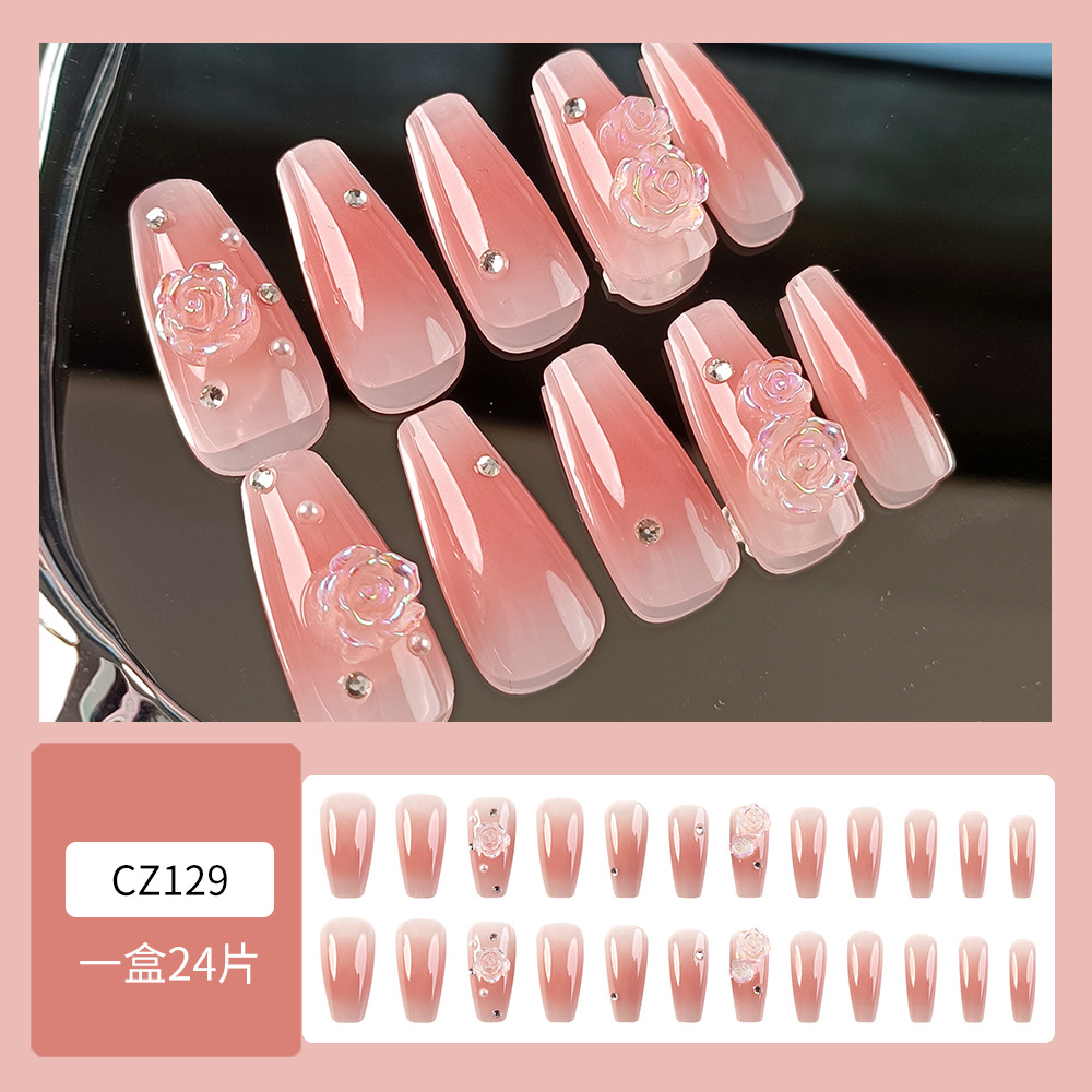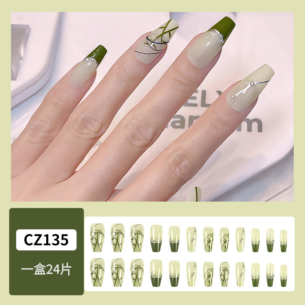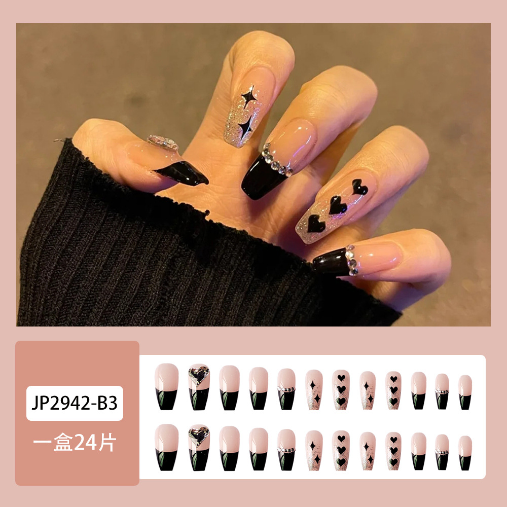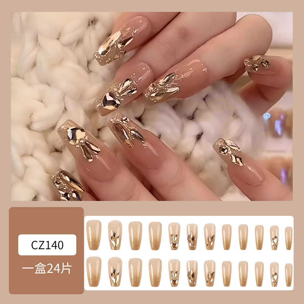 新品假指甲贴片可拆卸美甲贴片 蝴蝶珍珠镶钻长款穿戴甲片批发ins