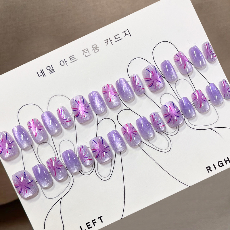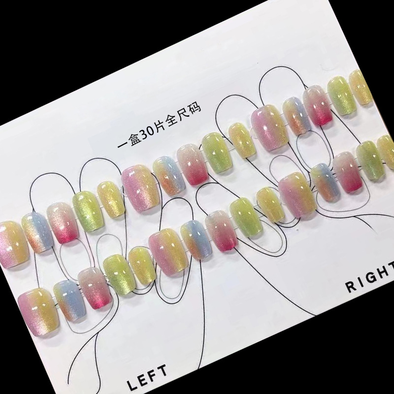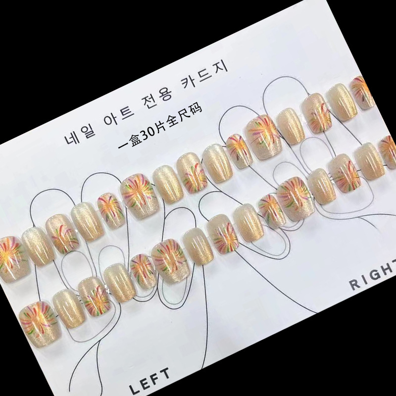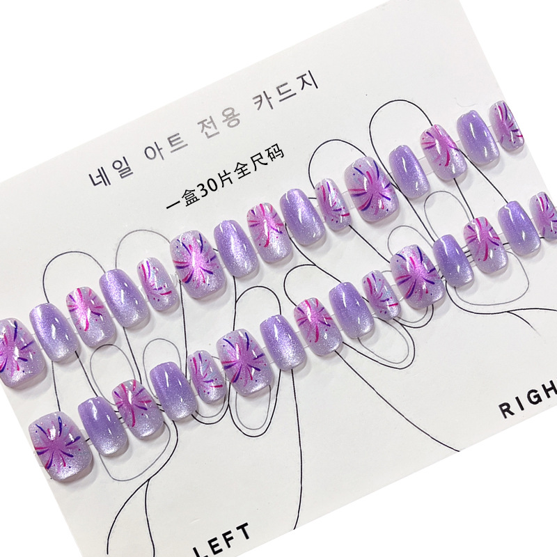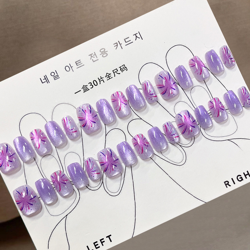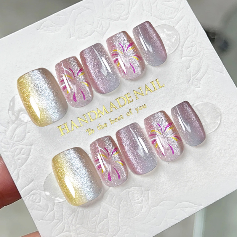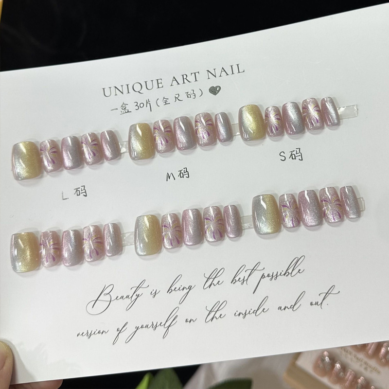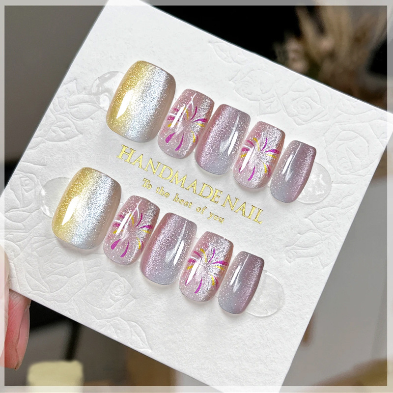 D291假指甲贴片可拆卸穿戴甲新品烟花追光猫眼手工封层30片光疗甲