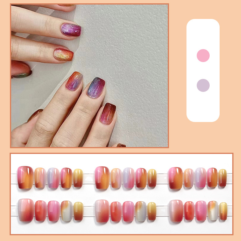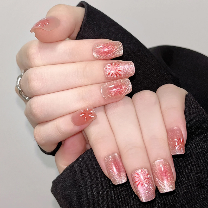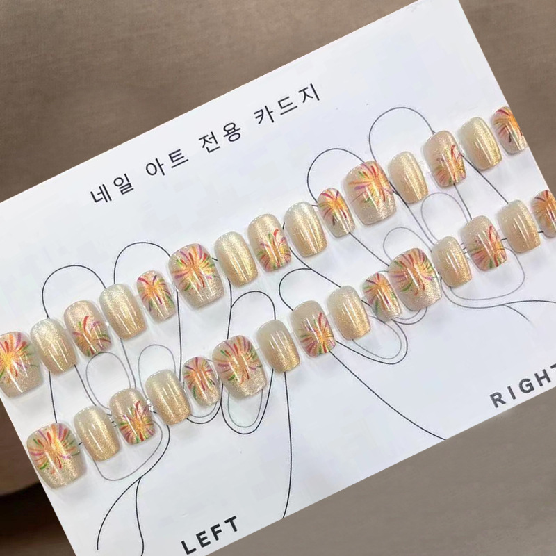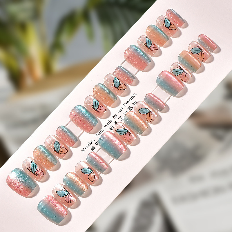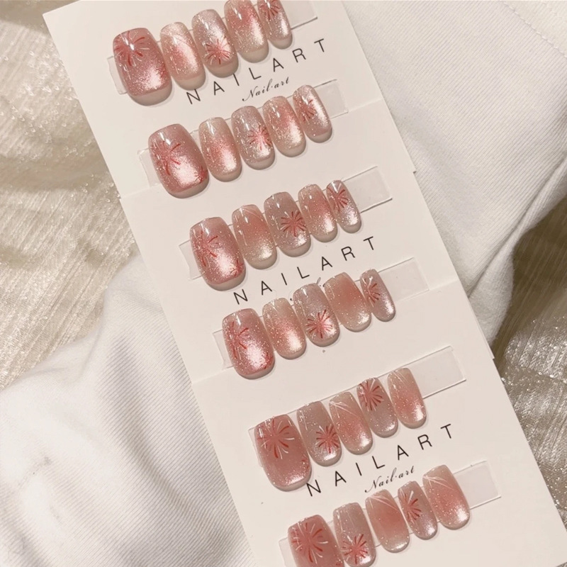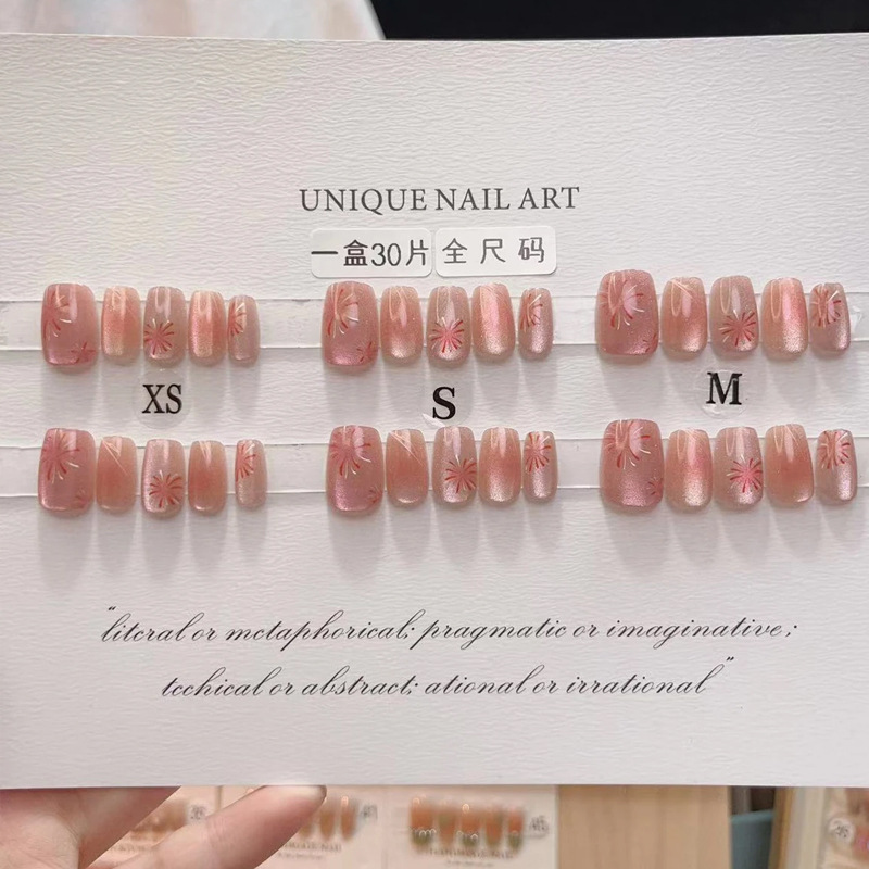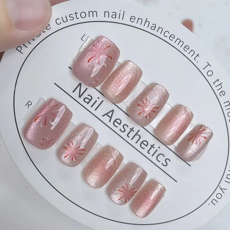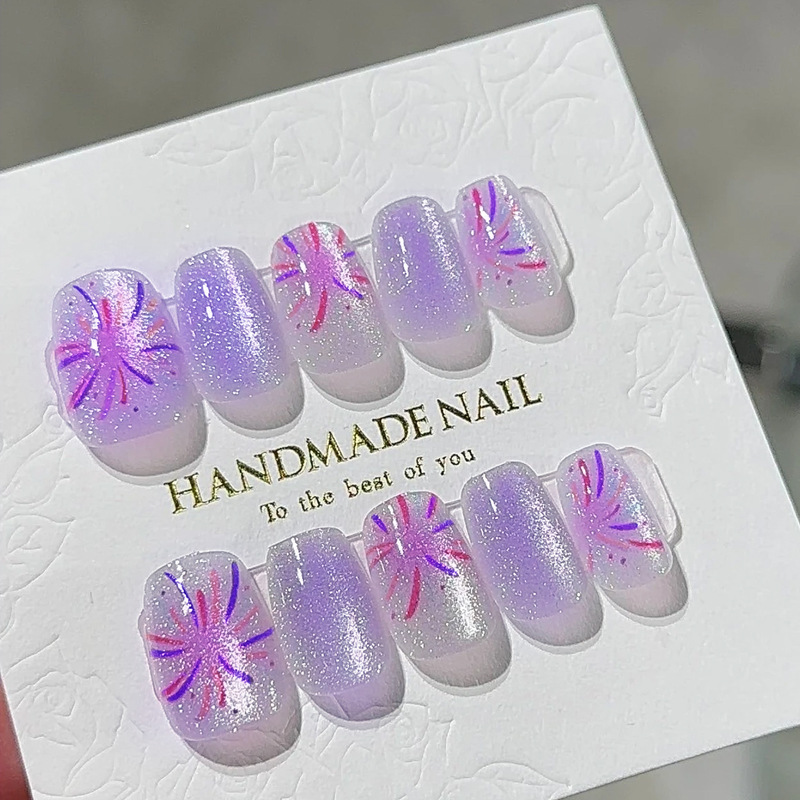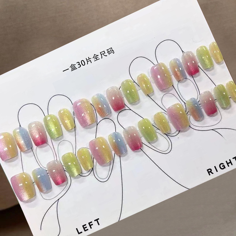 D291假指甲贴片可拆卸穿戴甲新品烟花追光猫眼手工封层30片光疗甲