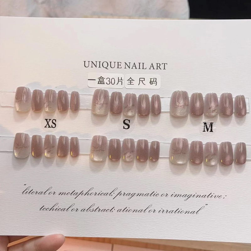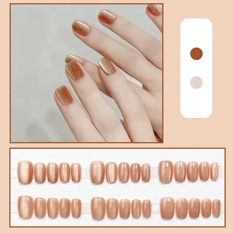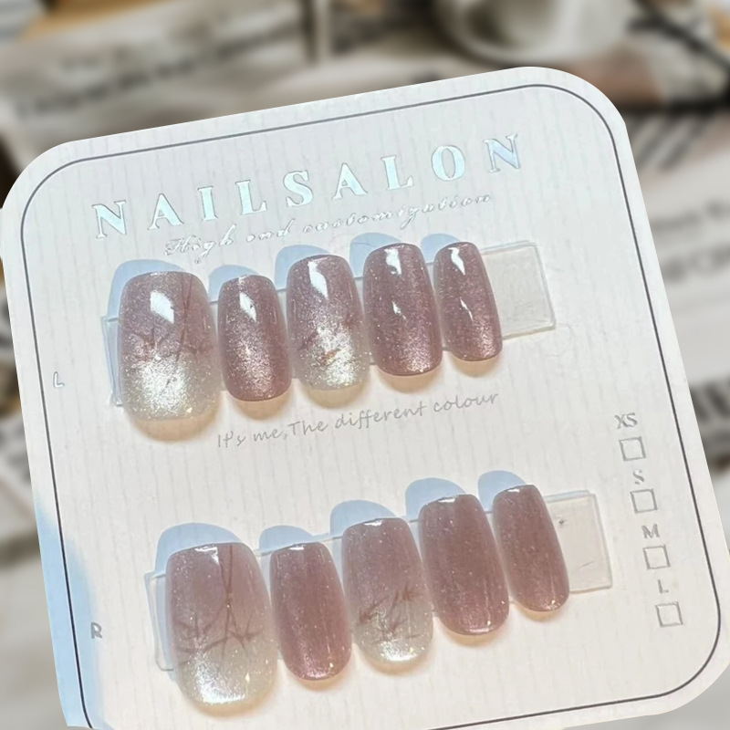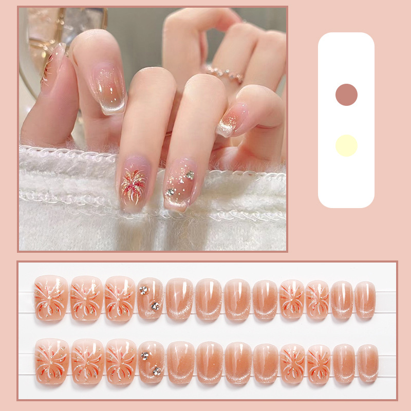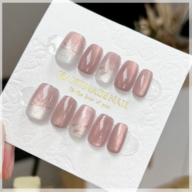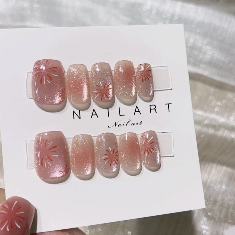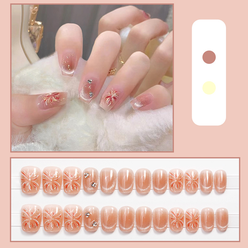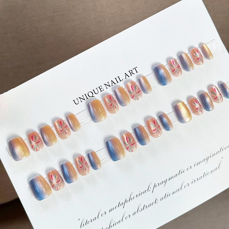 D291假指甲贴片可拆卸穿戴甲新品烟花追光猫眼手工封层30片光疗甲