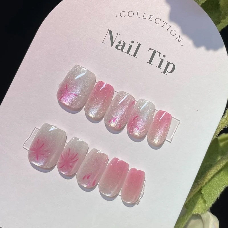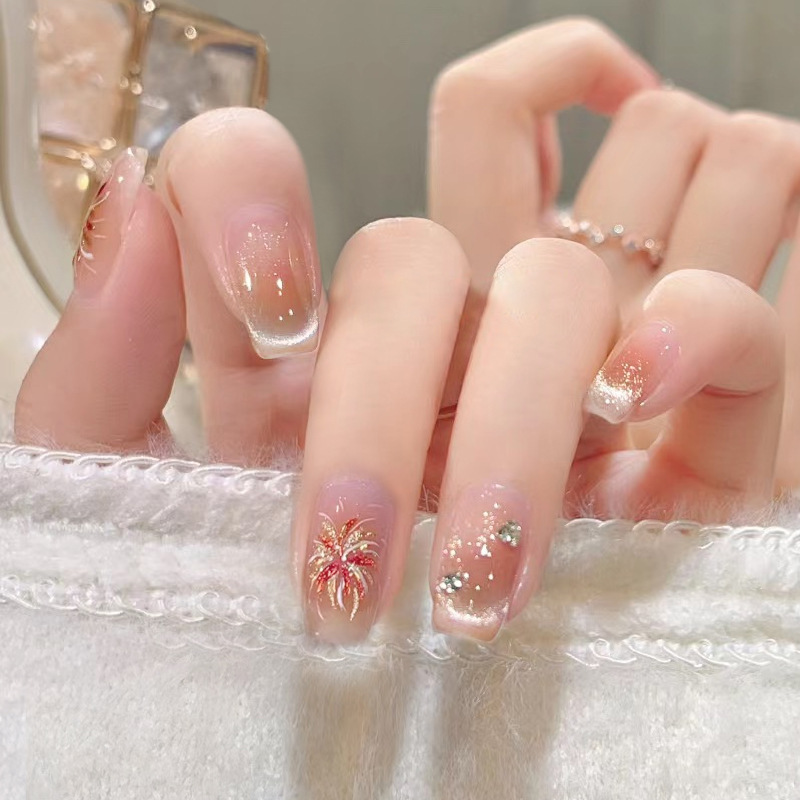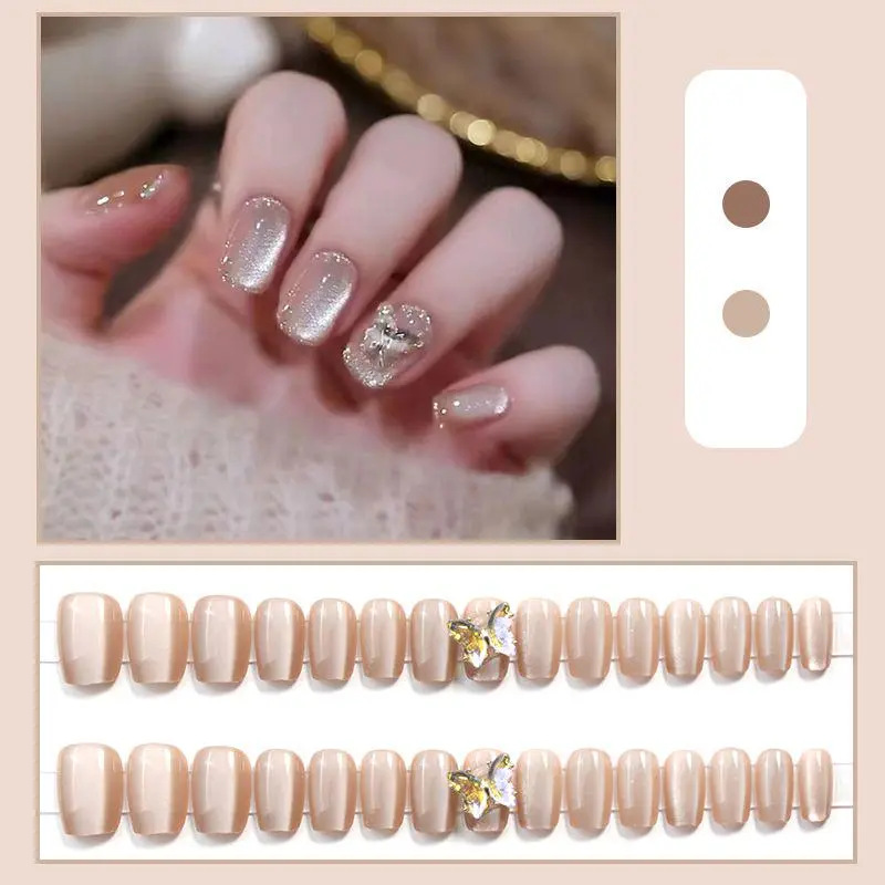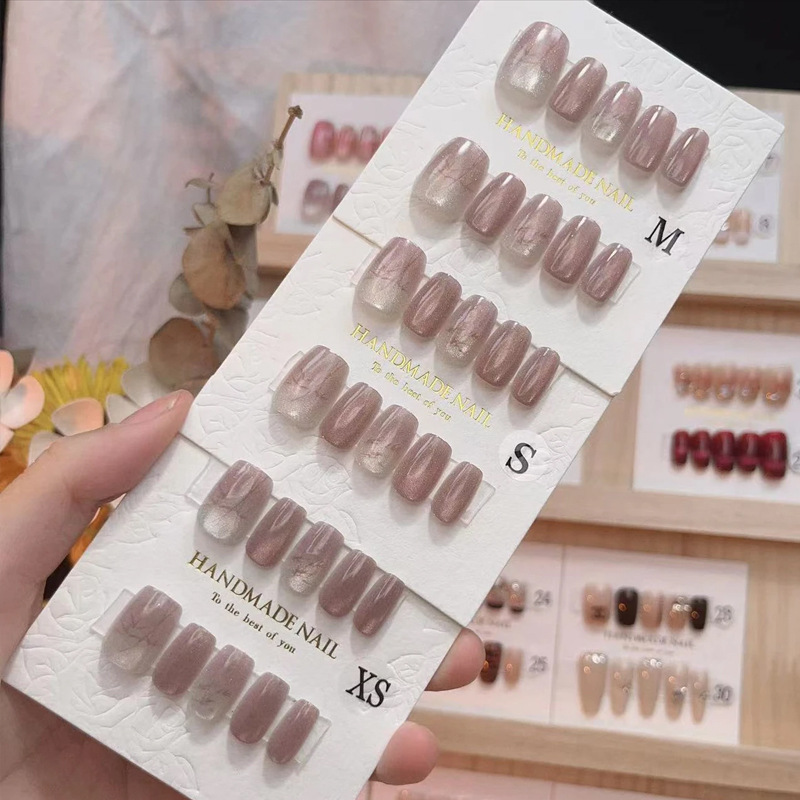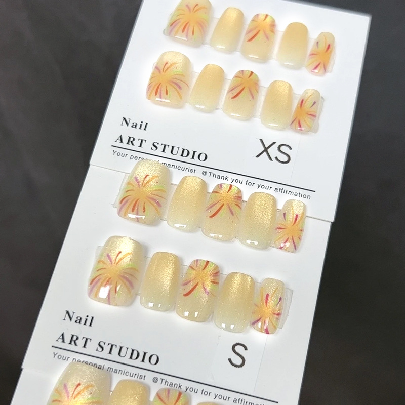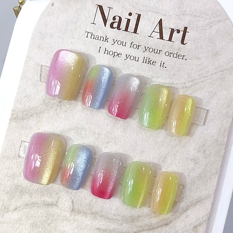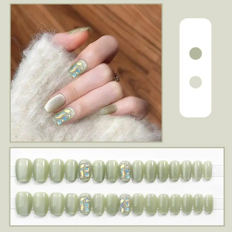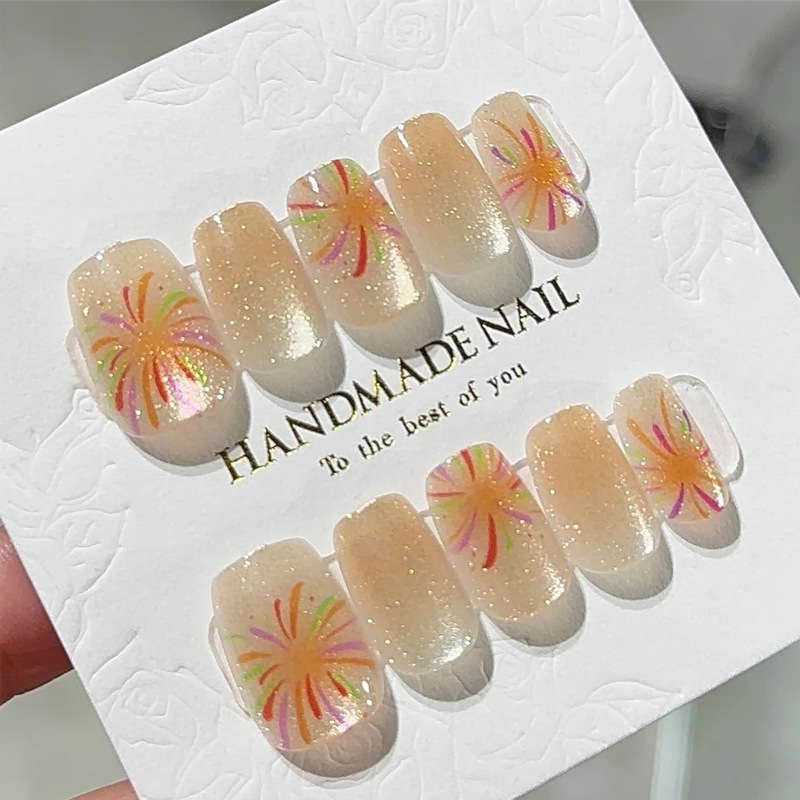 D291假指甲贴片可拆卸穿戴甲新品烟花追光猫眼手工封层30片光疗甲