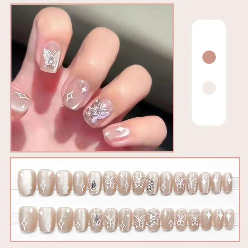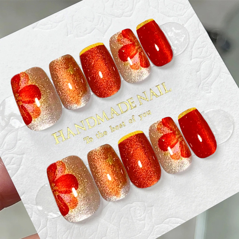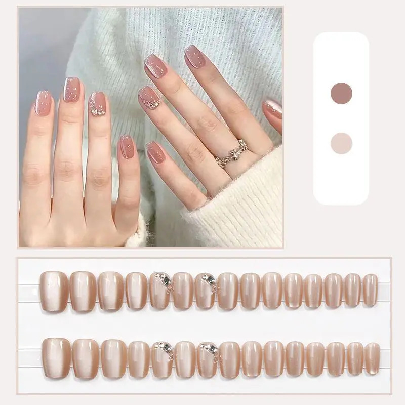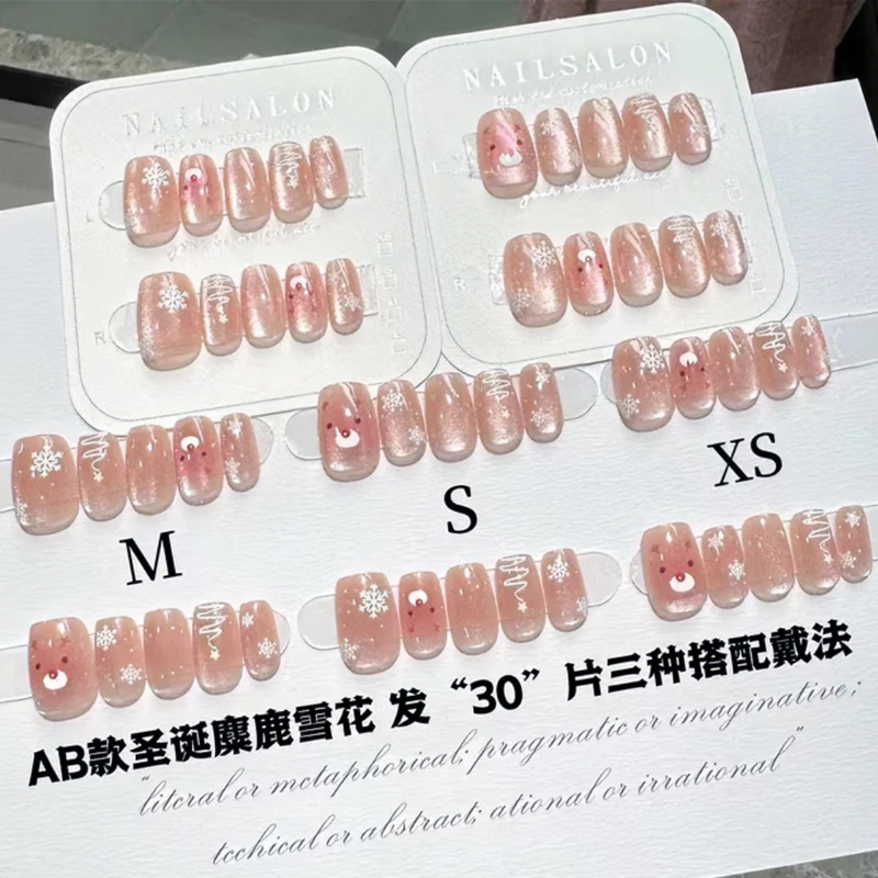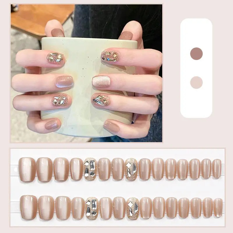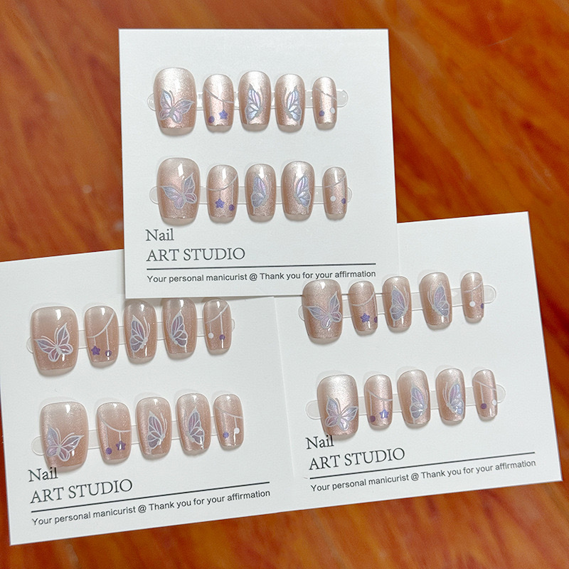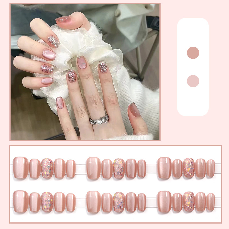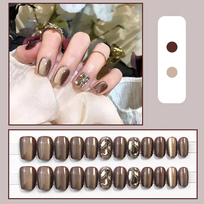 D291假指甲贴片可拆卸穿戴甲新品烟花追光猫眼手工封层30片光疗甲