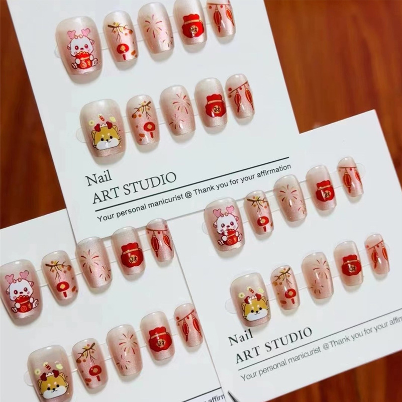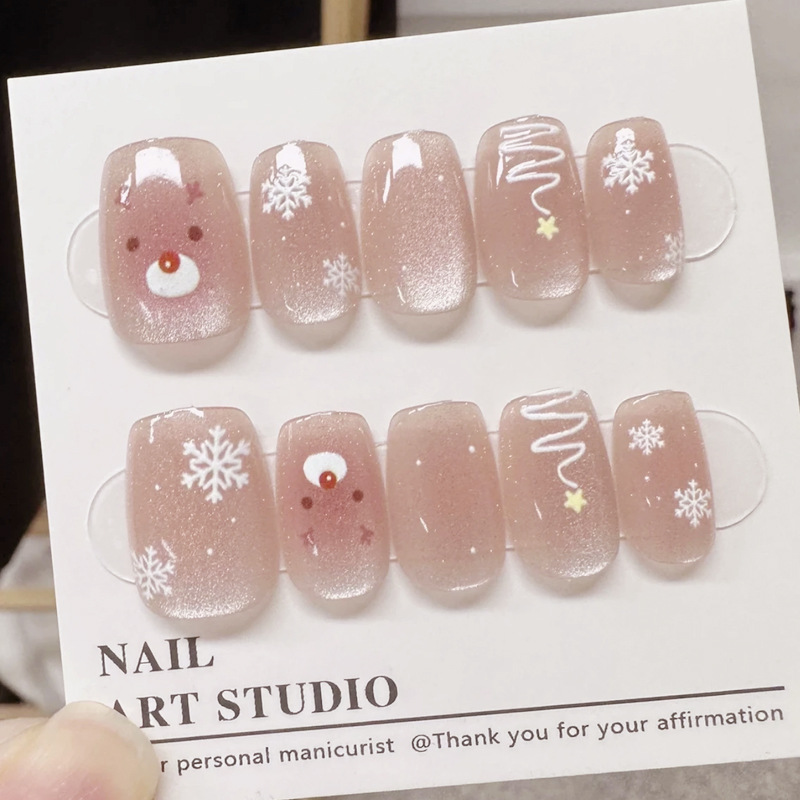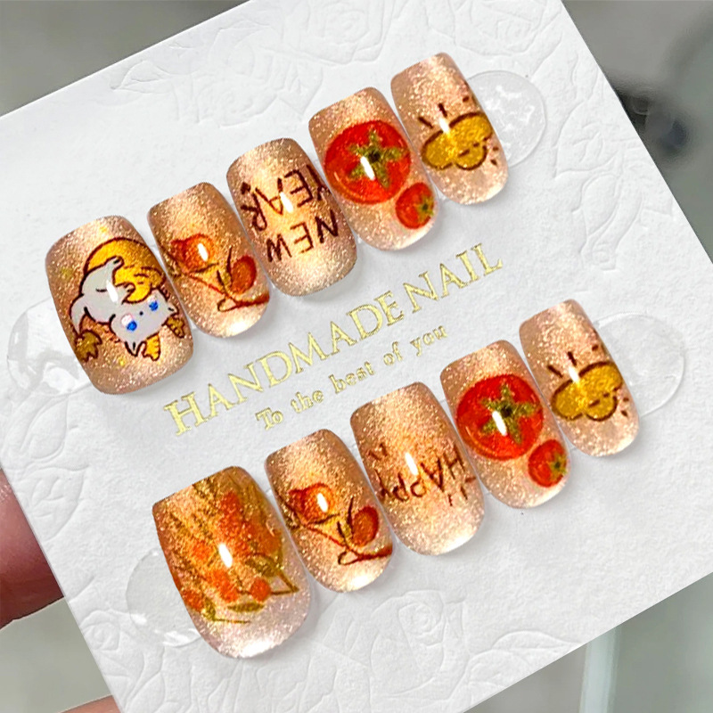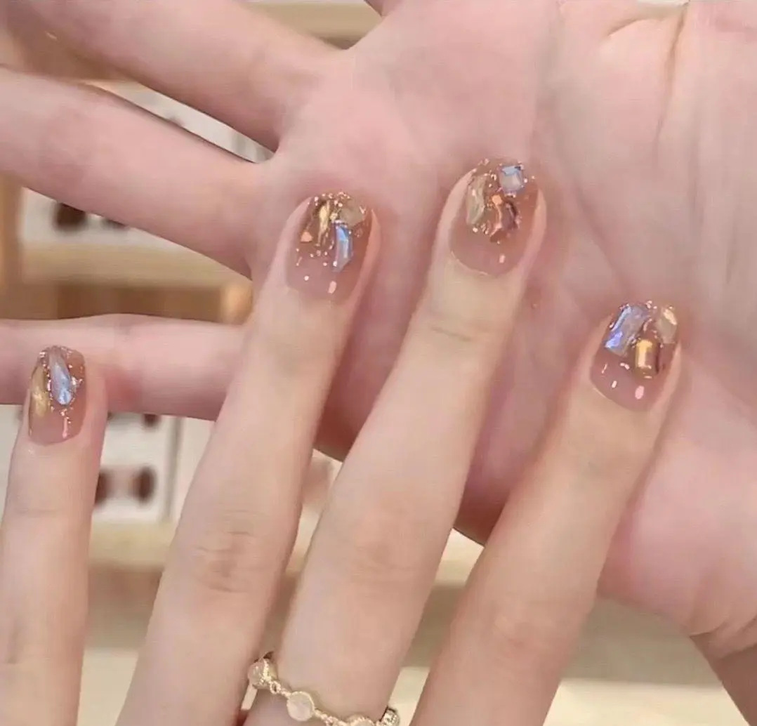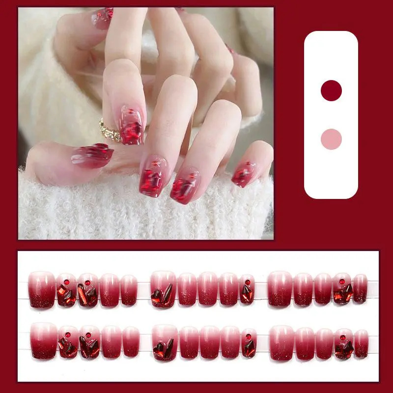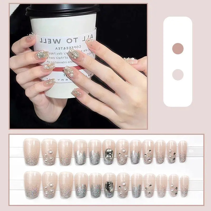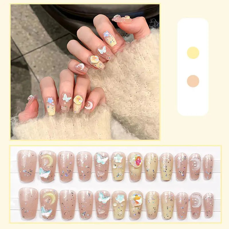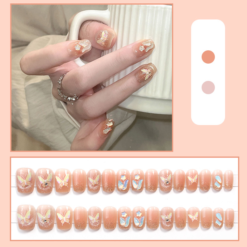 D291假指甲贴片可拆卸穿戴甲新品烟花追光猫眼手工封层30片光疗甲