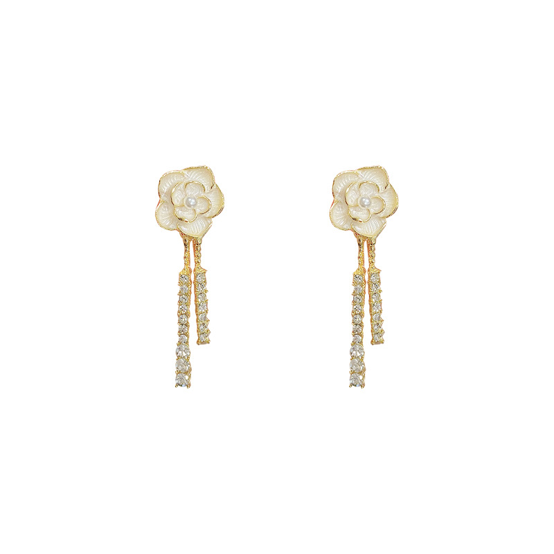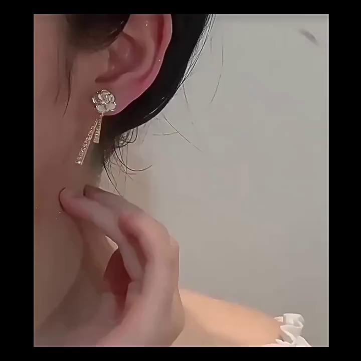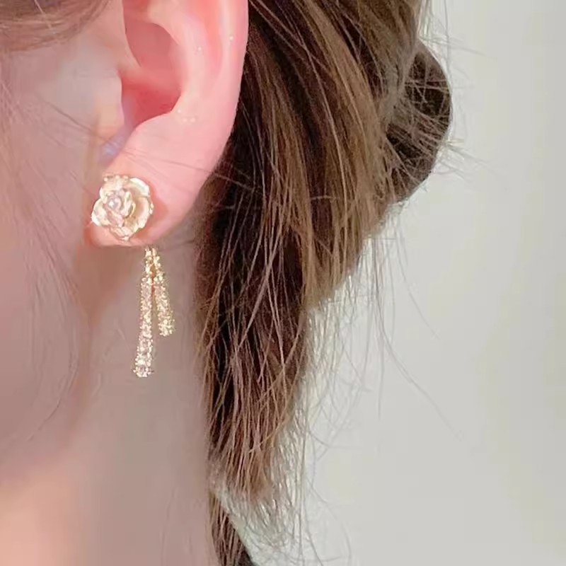 饰品新款水钻精致花朵耳钉女轻奢小众耳饰品山茶花耳环女S925银针