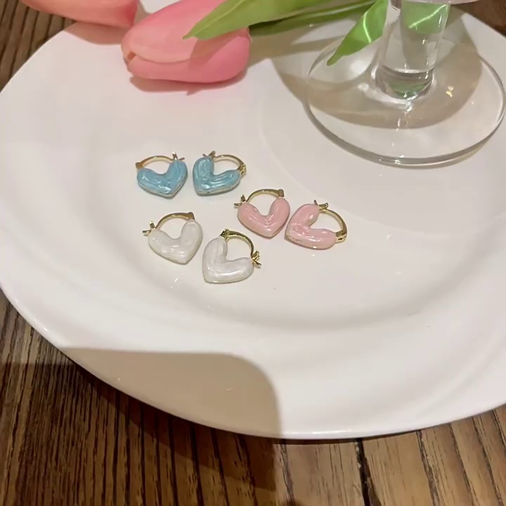 耳环百搭气质小清新耳钉S925银针轻奢小众高级设计感滴釉爱心耳扣