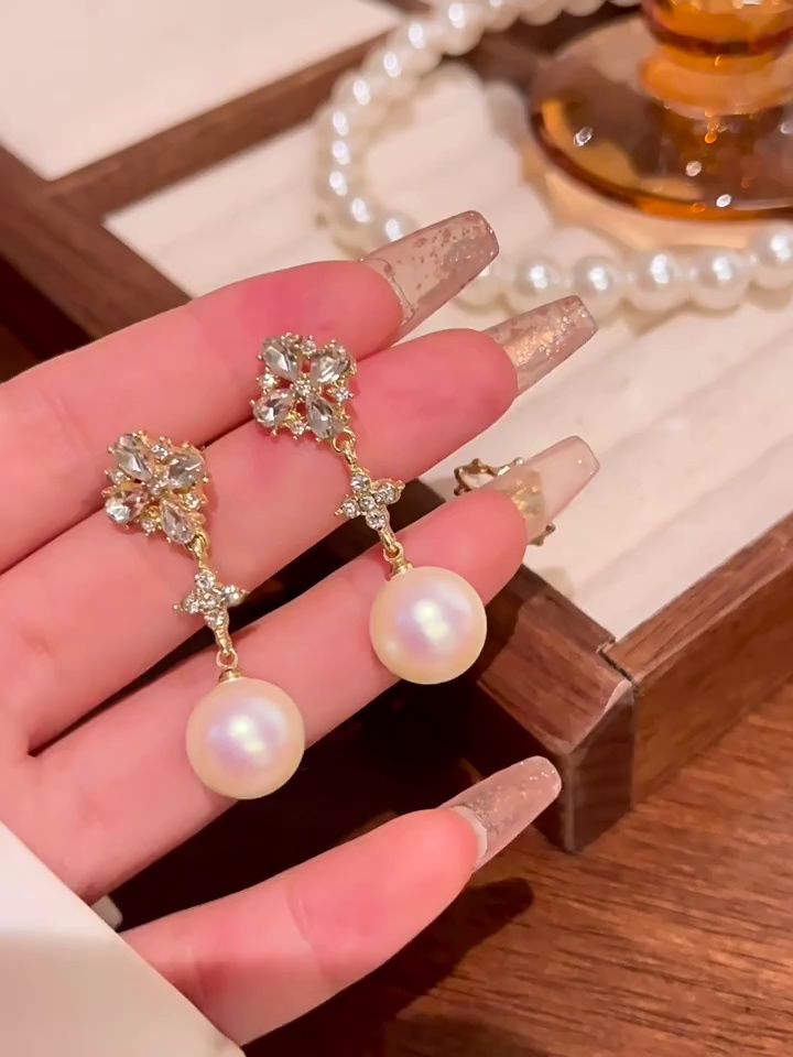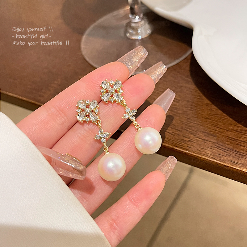 ins潮高级感设计感长款流苏珍珠耳钉925银针轻奢小众超闪锆石耳钉