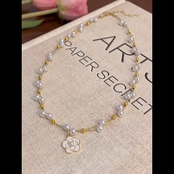 饰品法式复古百搭气质山茶花项链女小众高级感珍珠花朵锁骨链颈链