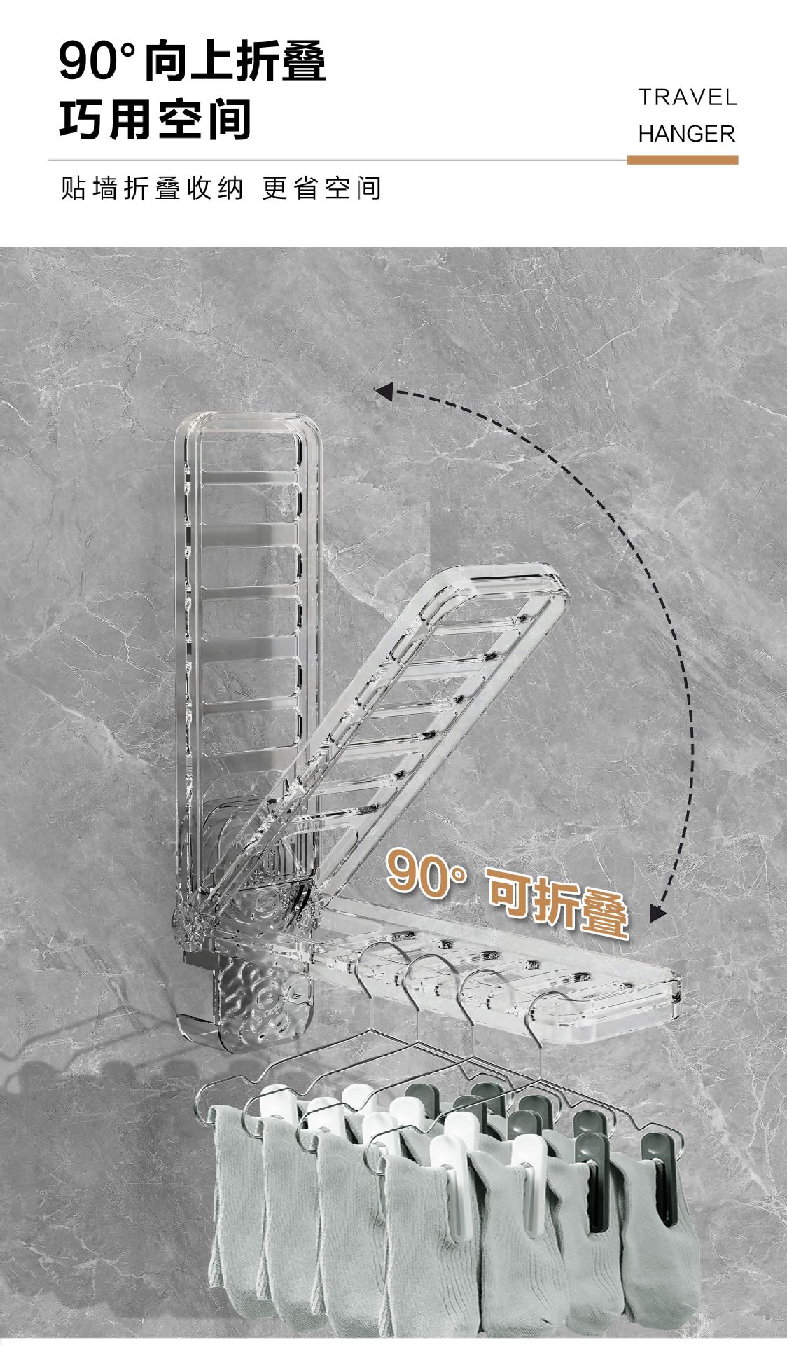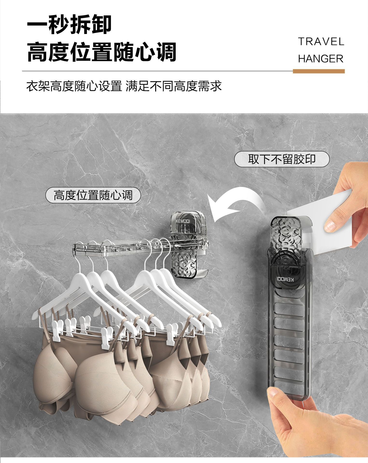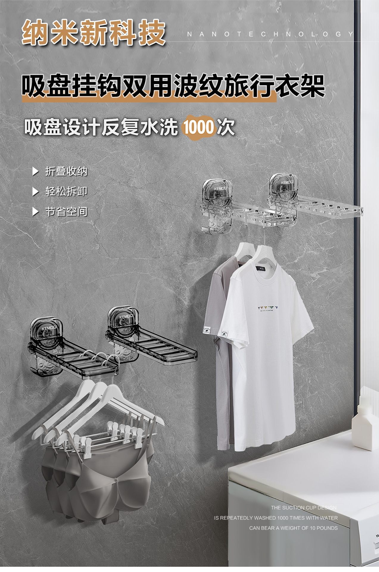 阳台免打孔家用折叠收纳旅行晾衣杆隐形旅行凉衣架吸盘晾衣架