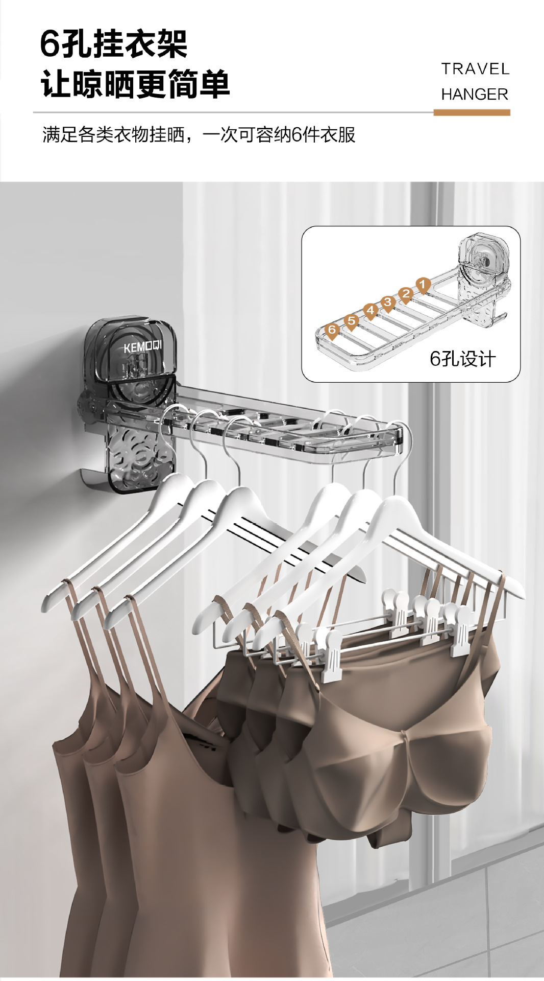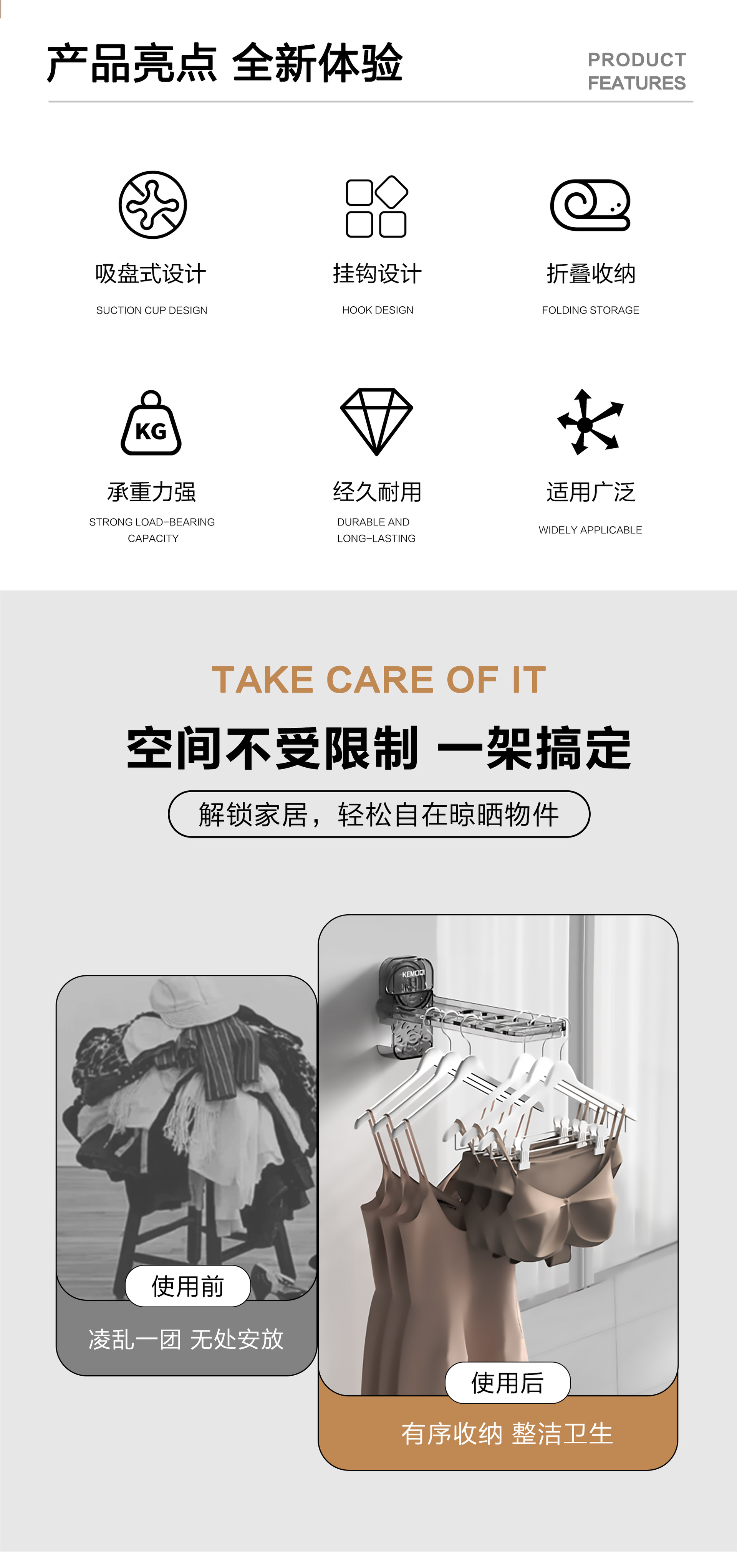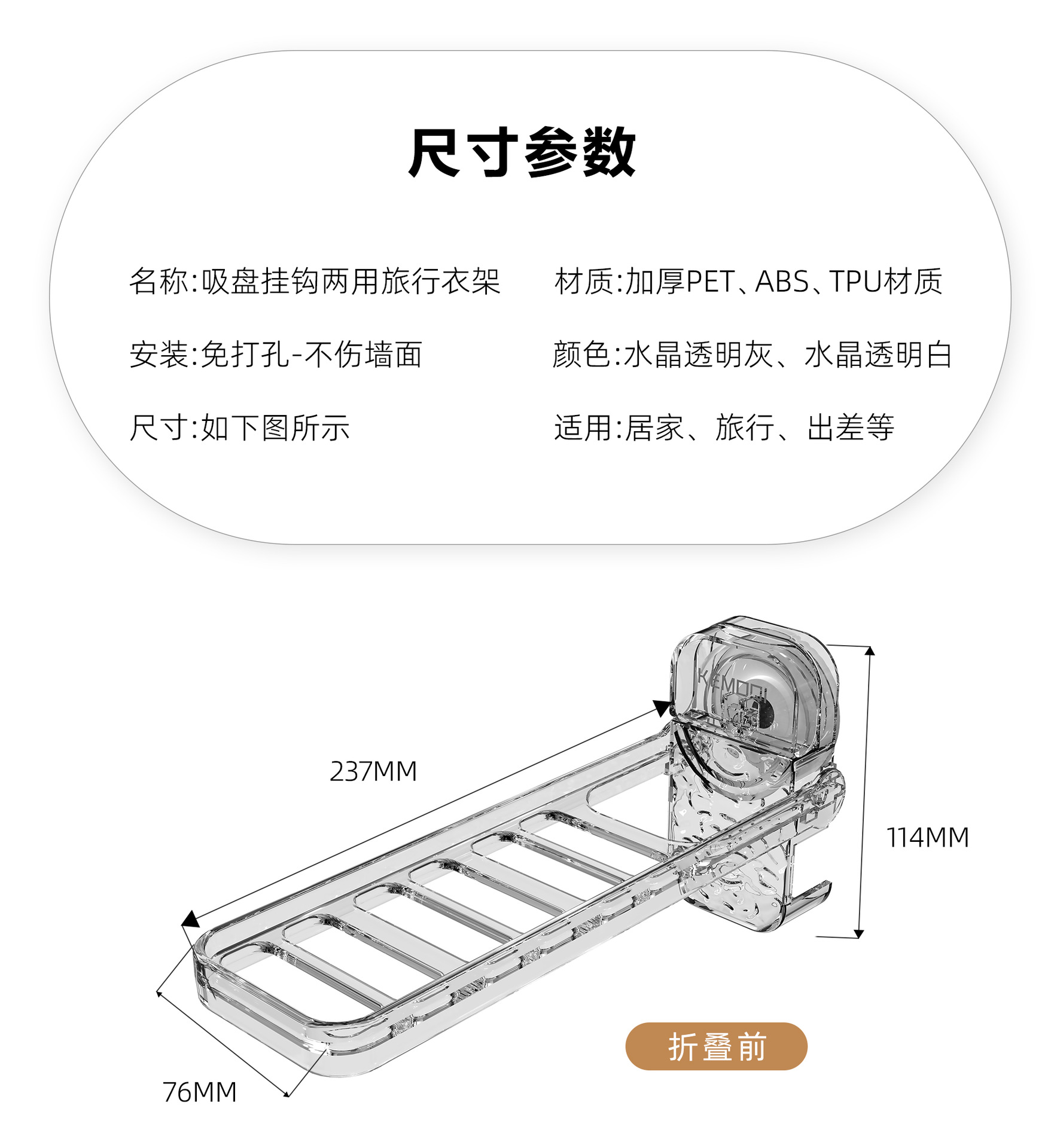 阳台免打孔家用折叠收纳旅行晾衣杆隐形旅行凉衣架吸盘晾衣架