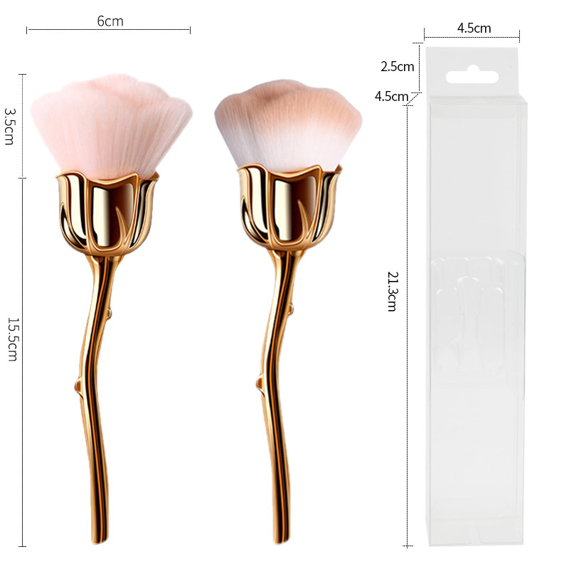 长柄玫瑰花粉尘刷金色电镀玫瑰花美甲粉尘刷大号软毛单支装