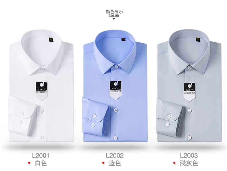 男装新款200支四股DP4.0免烫纯棉衬衫男士长袖商务职业正装白衬衣