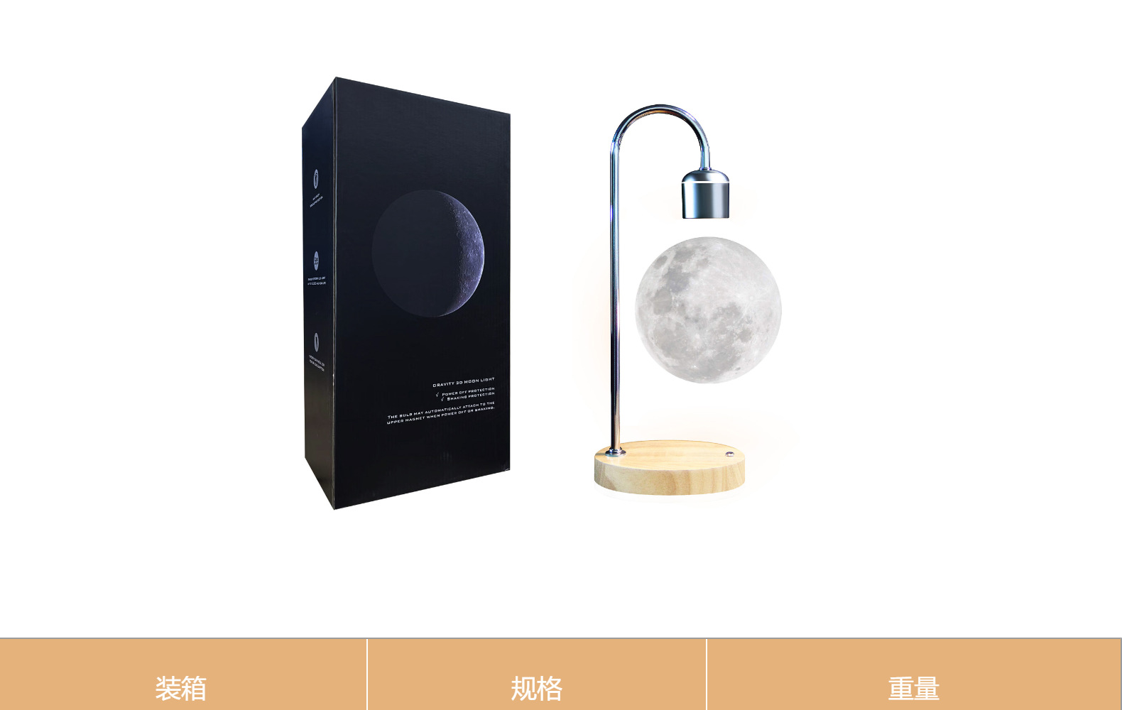 外贸专供悬浮月球灯3D打印一体无缝磁悬浮月亮台灯LED