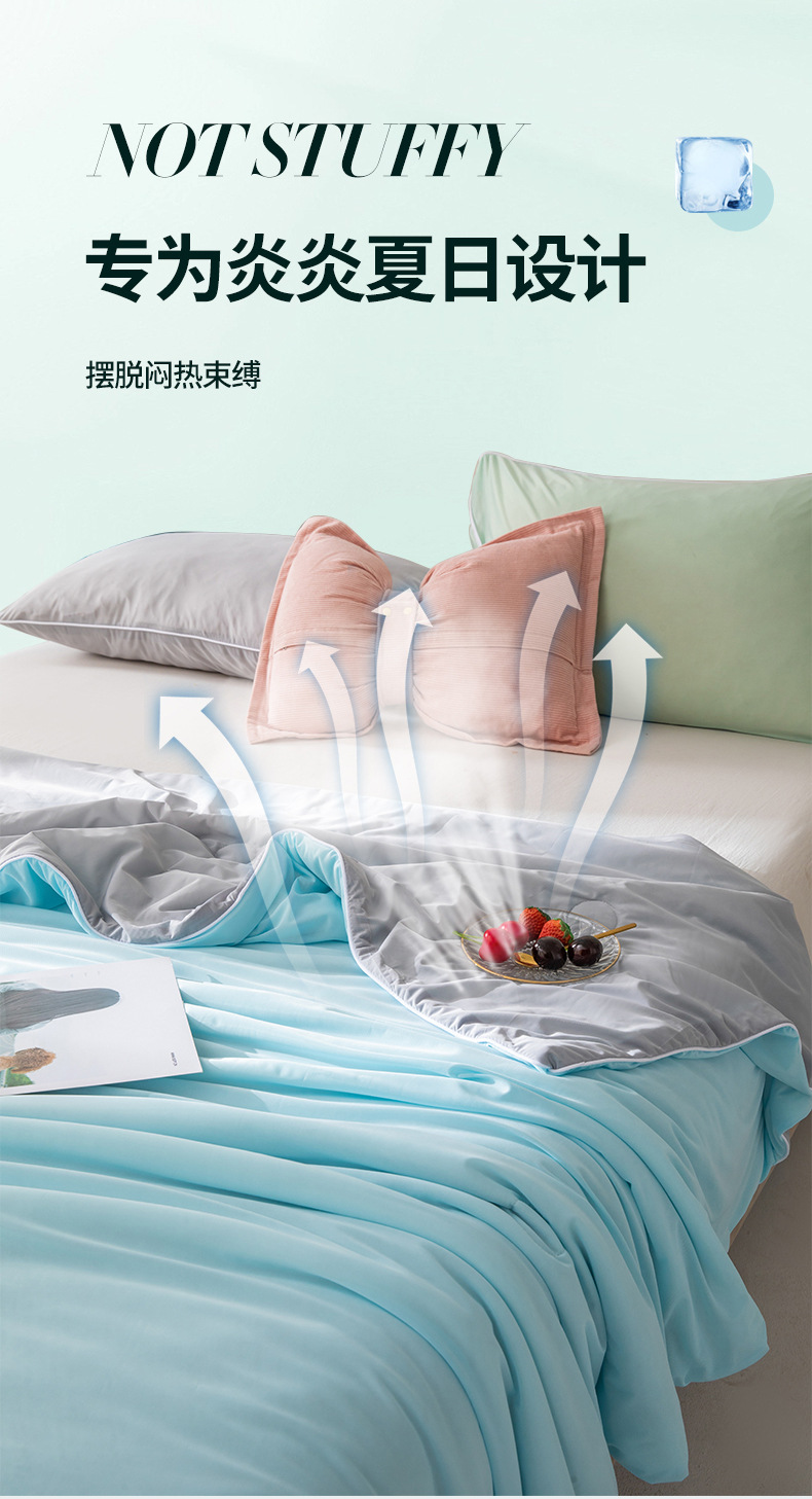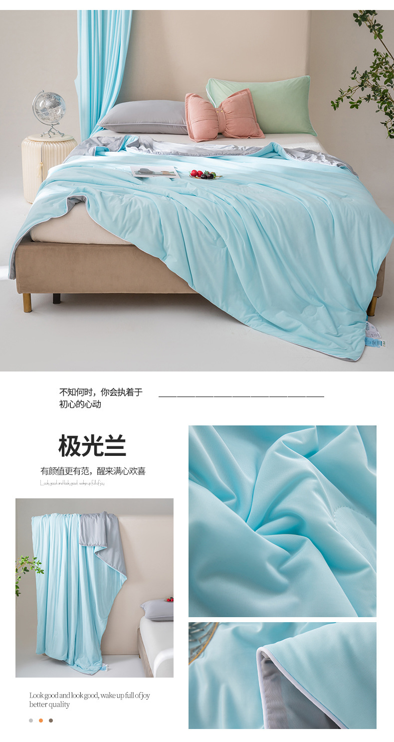 A类冰淇淋凉感丝夏凉被 夏季空调被纯色夏被可机洗冰丝薄被子批发