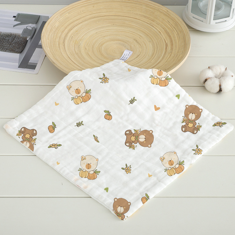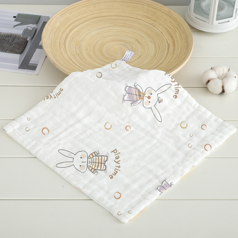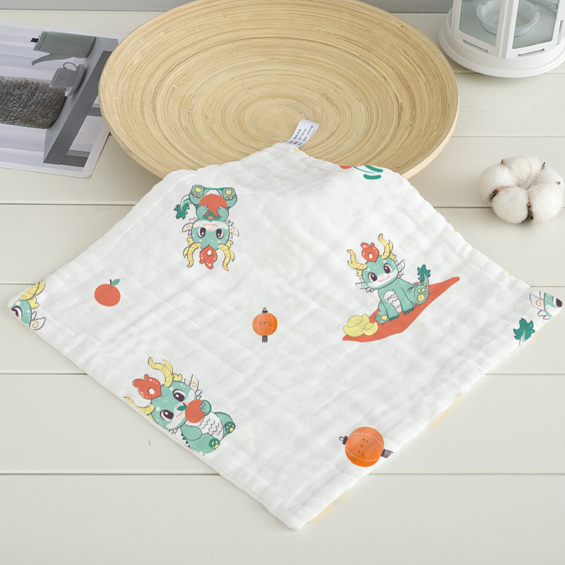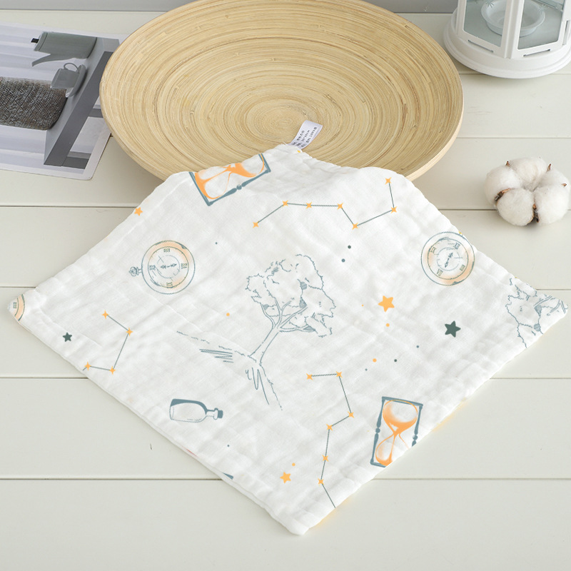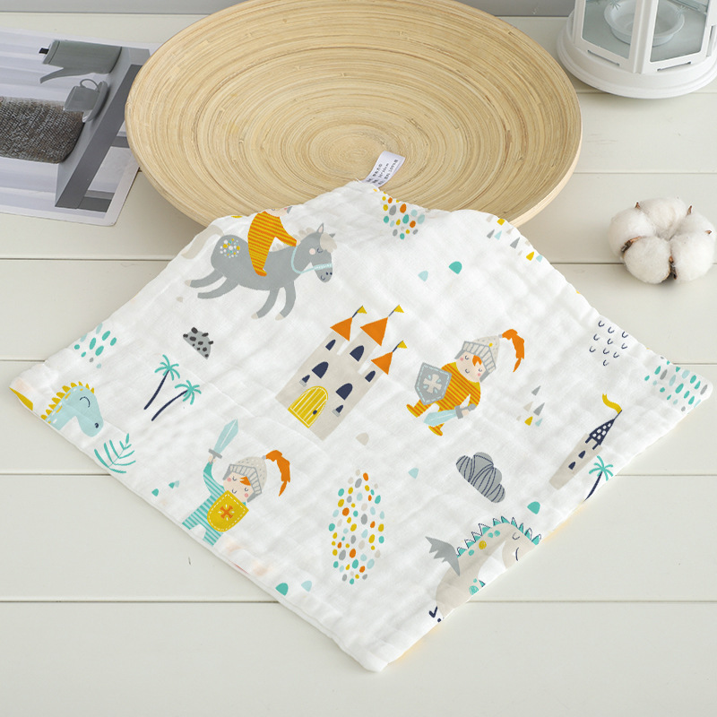 六层高密纯棉纱布方巾柔软吸水印花洗脸巾儿童毛巾口水巾全棉批发