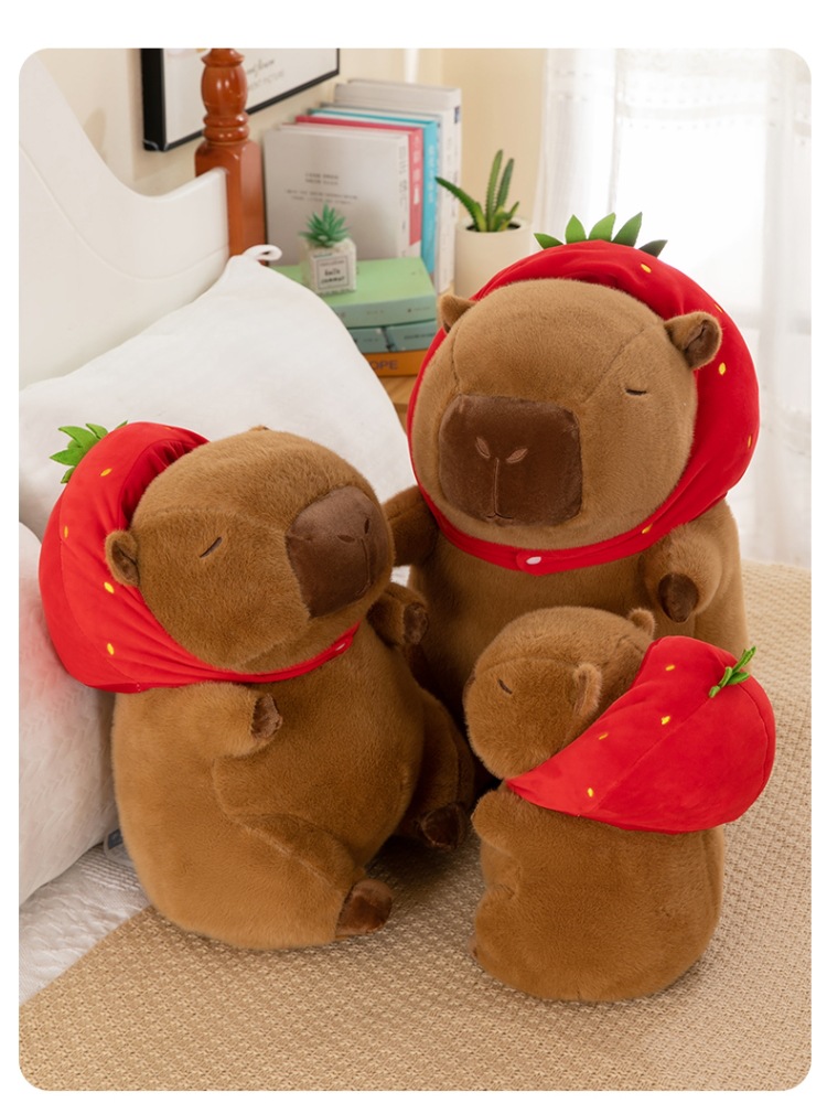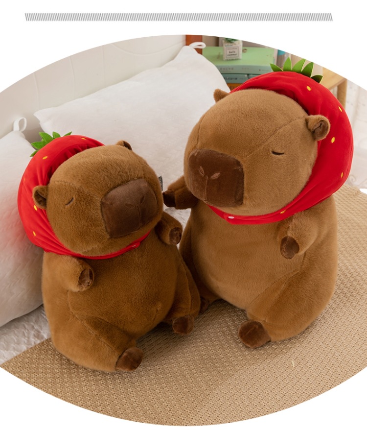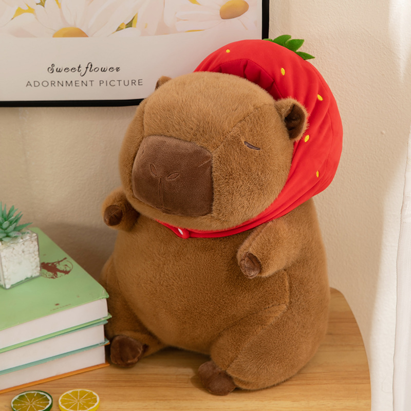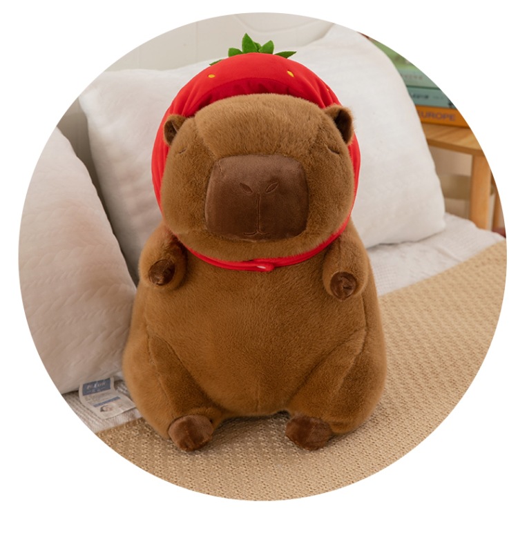 网红水豚呆萌卡皮巴拉毛绒玩具公仔戴草莓麻将包礼物丑萌安静玩偶