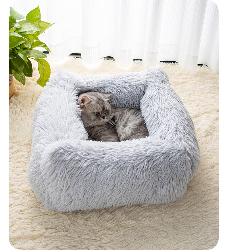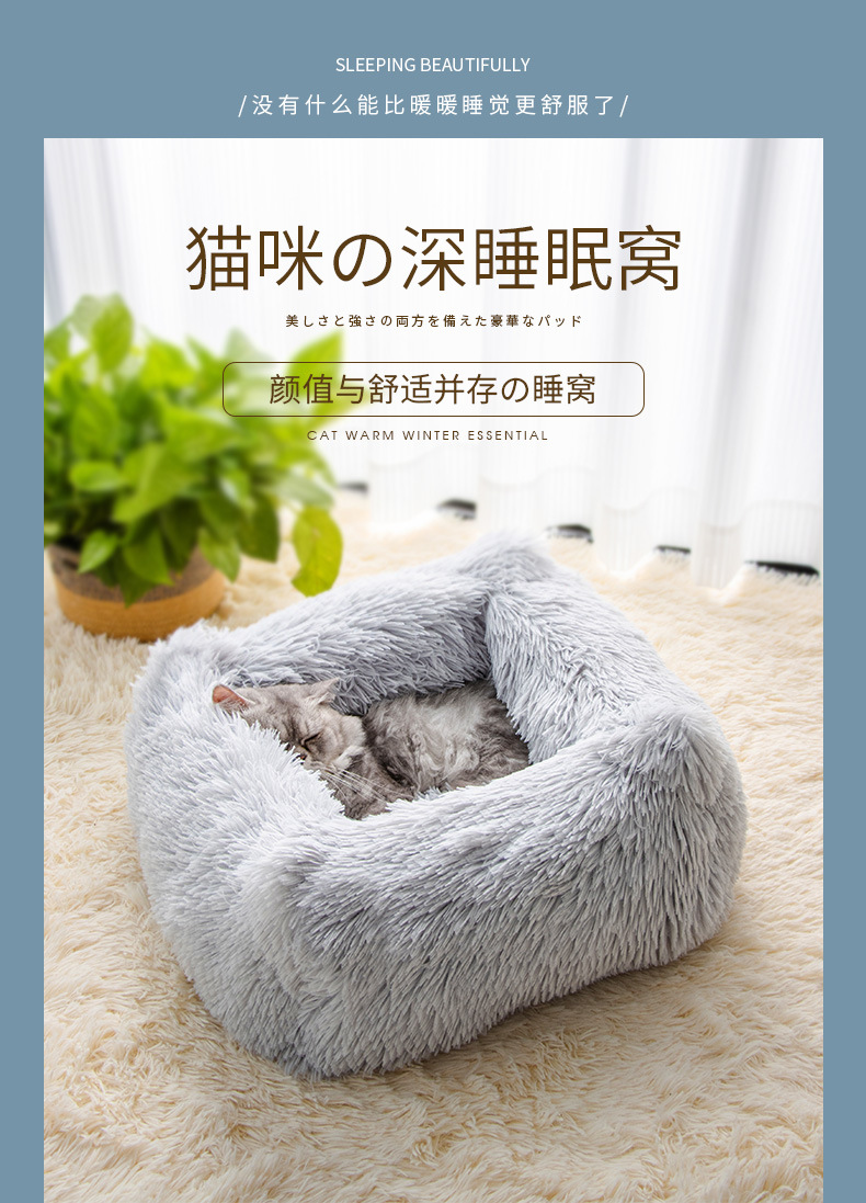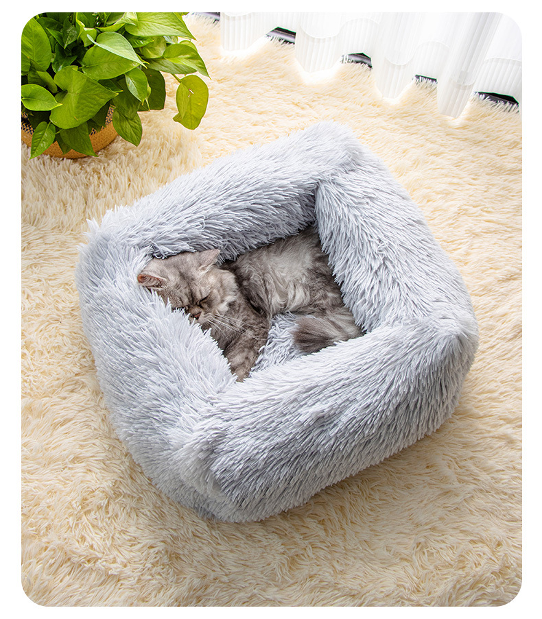 网红猫狗窝方形长毛绒秋冬窝猫床垫中小型犬绒猫窝