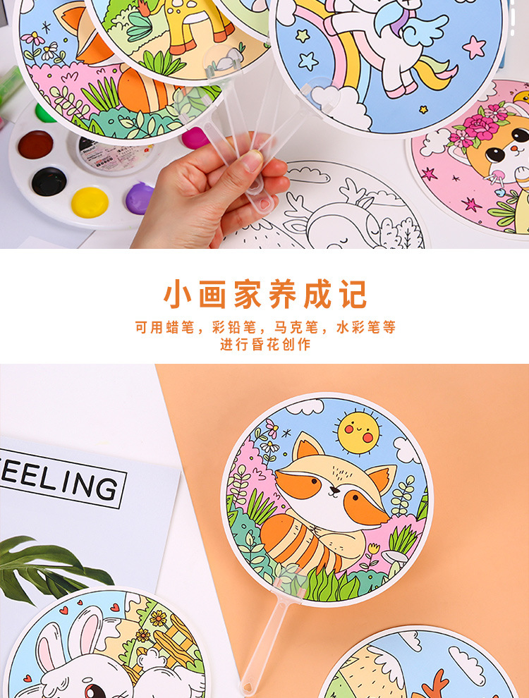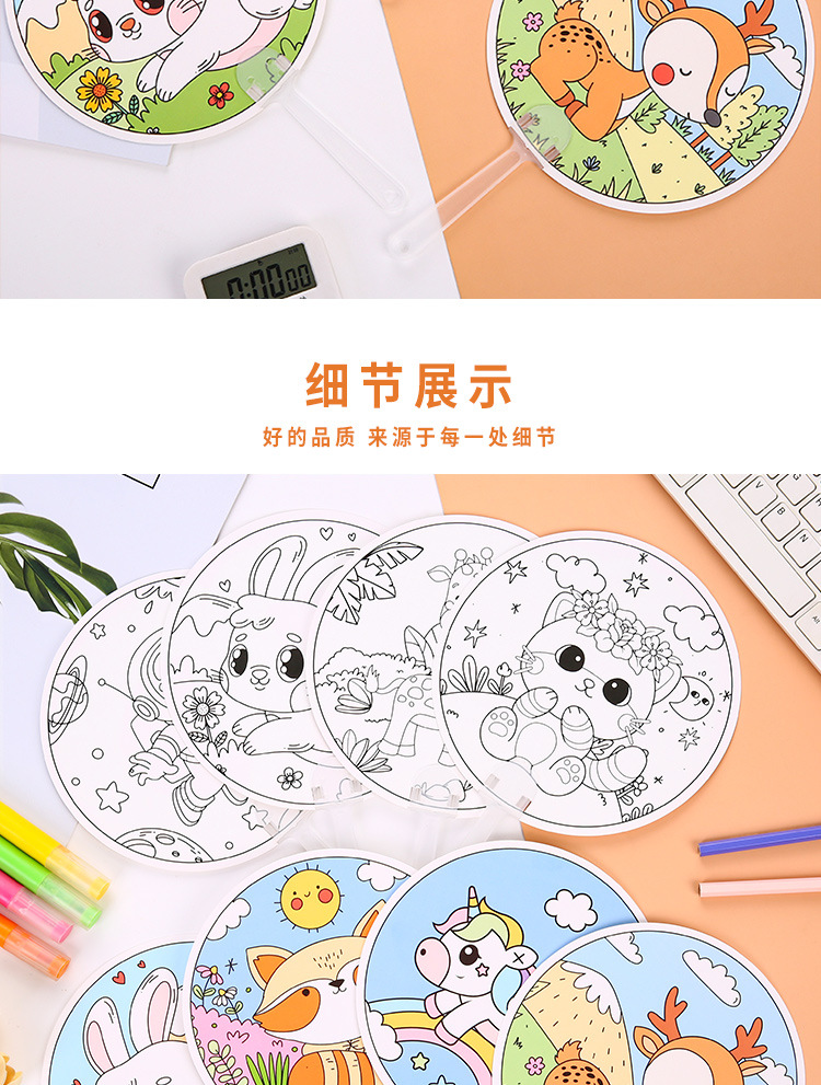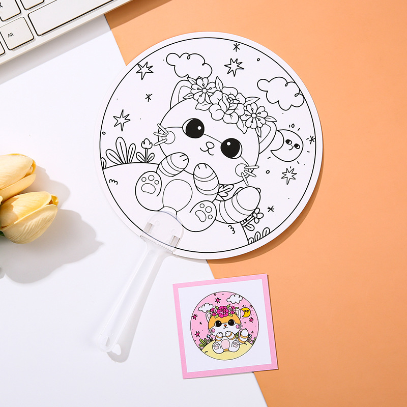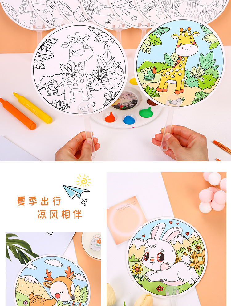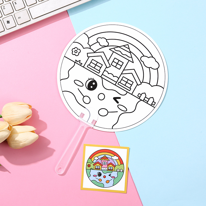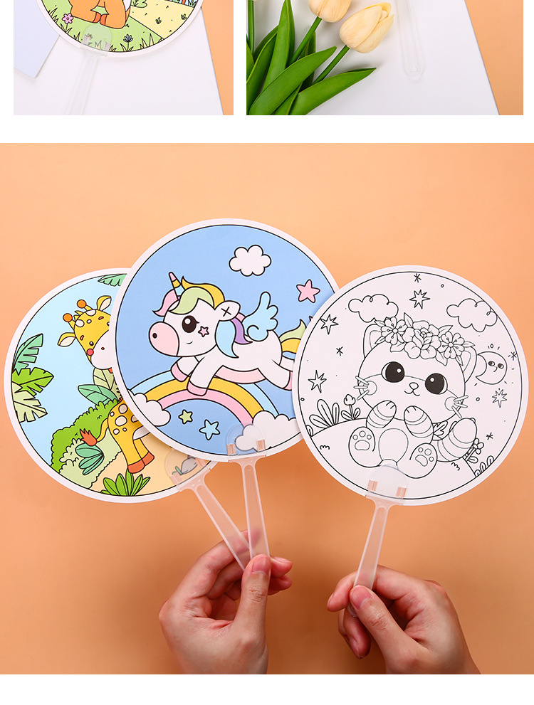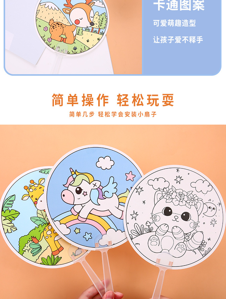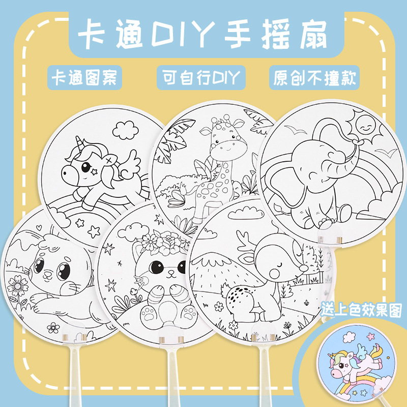 儿童手工涂鸦扇子创意diy涂色绘画小扇子卡通空白圆扇益智玩具