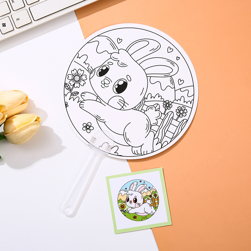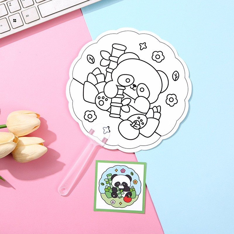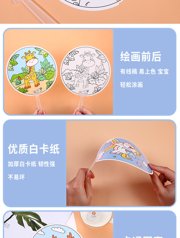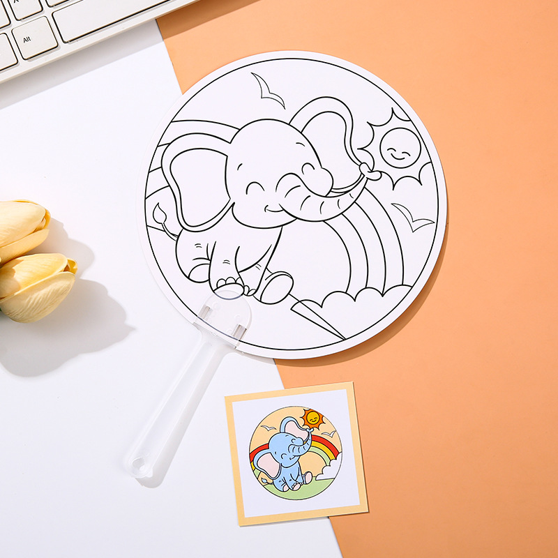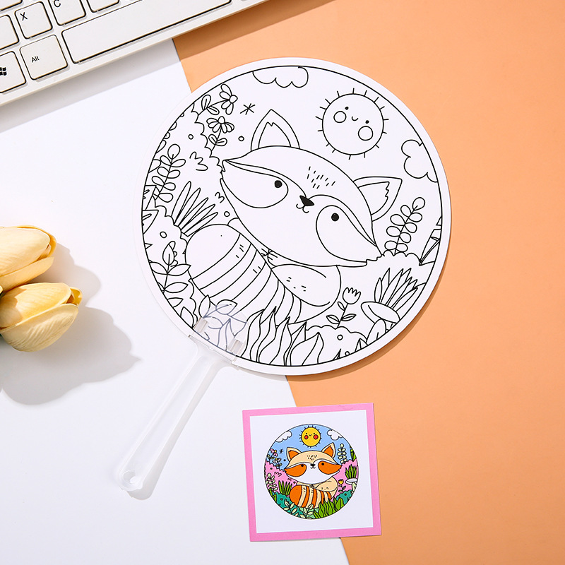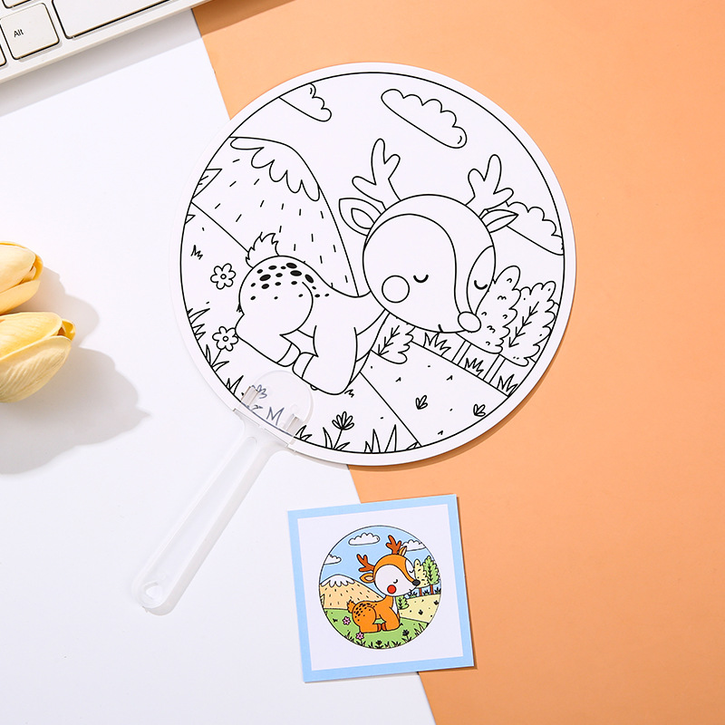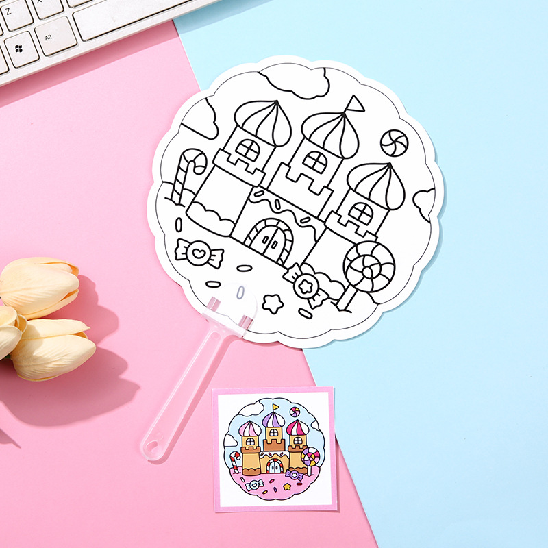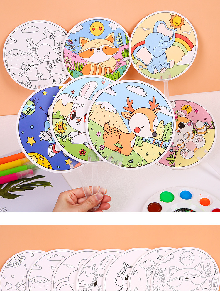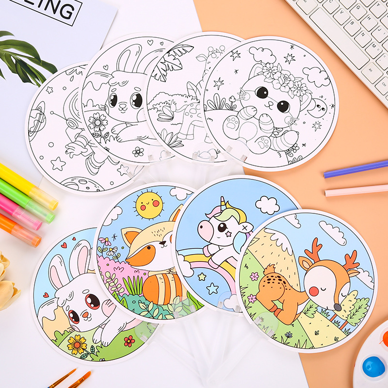 儿童手工涂鸦扇子创意diy涂色绘画小扇子卡通空白圆扇益智玩具