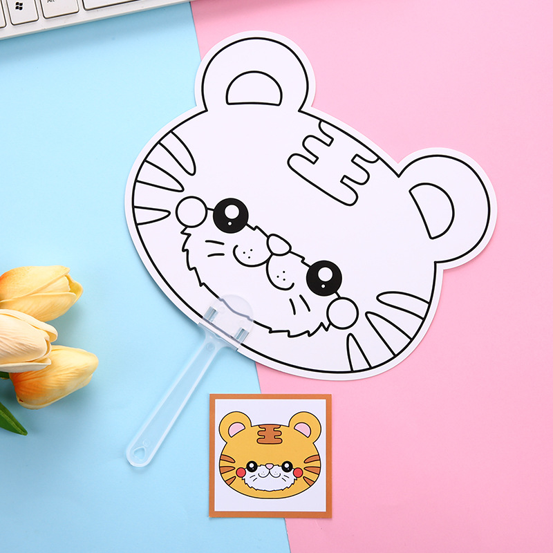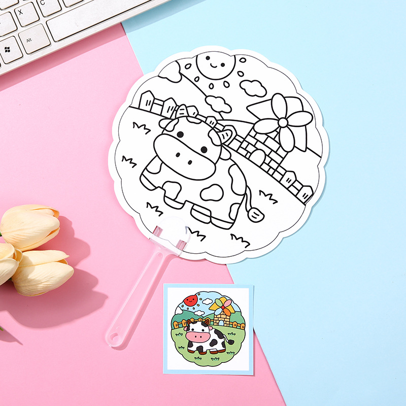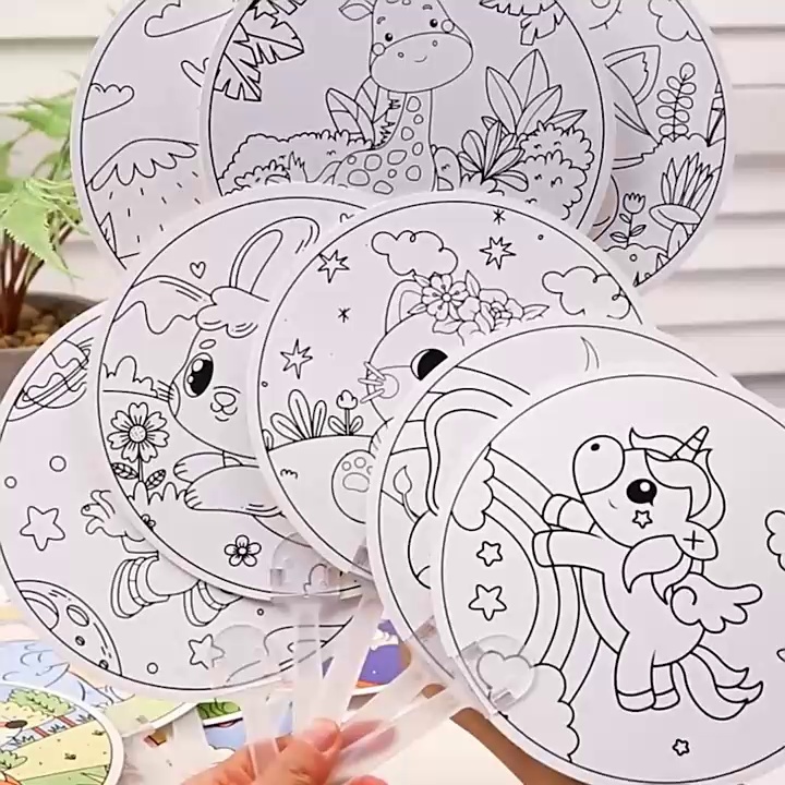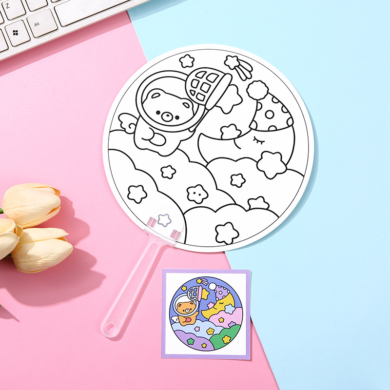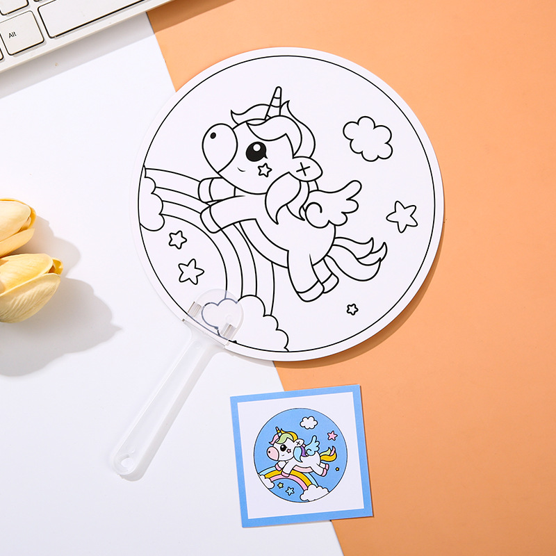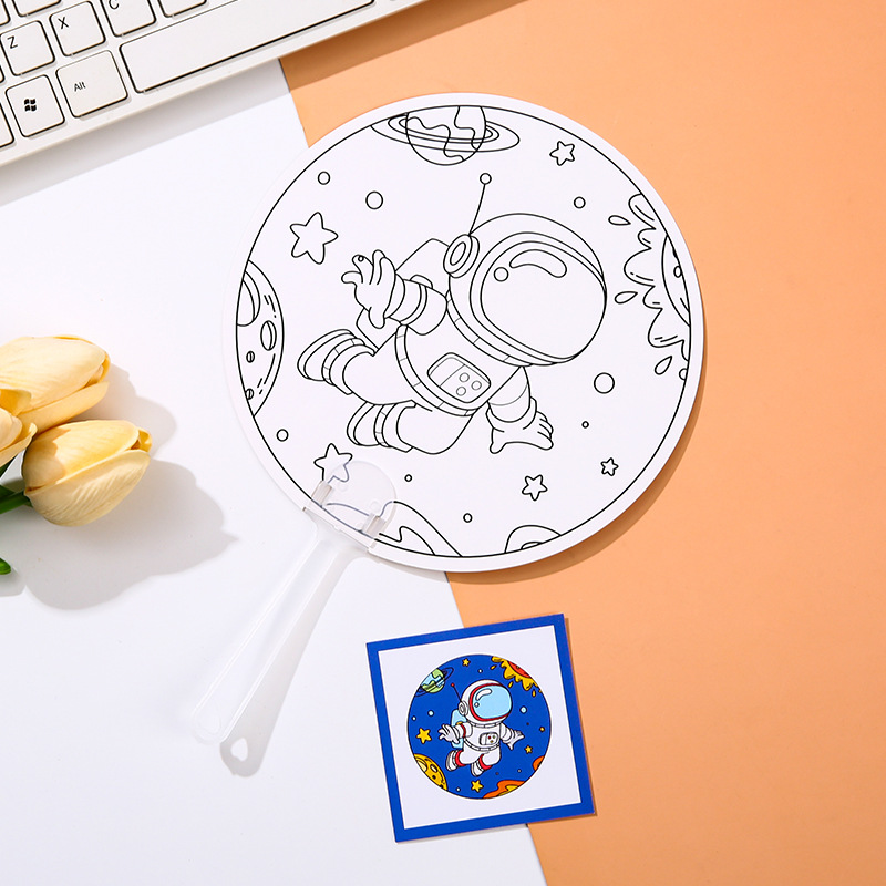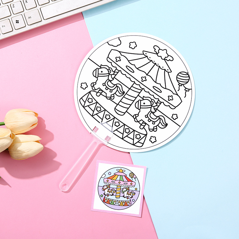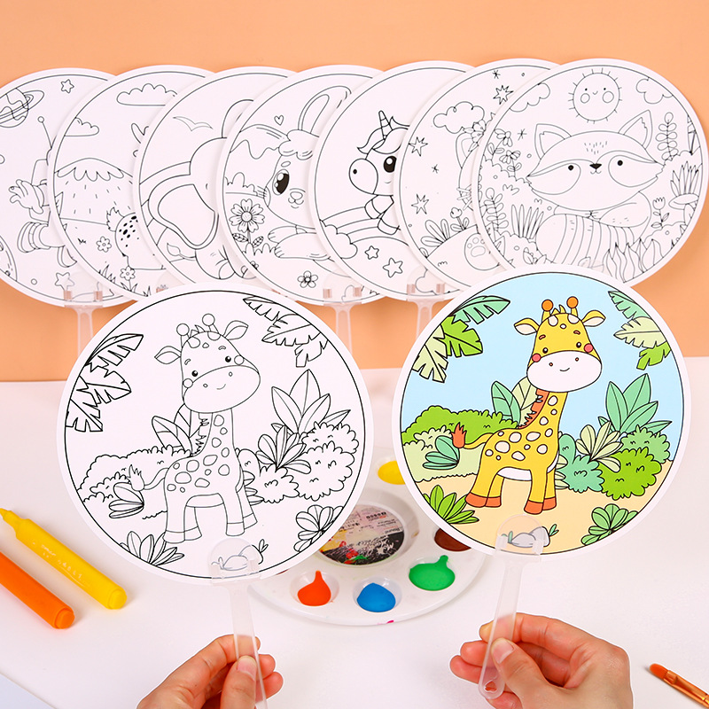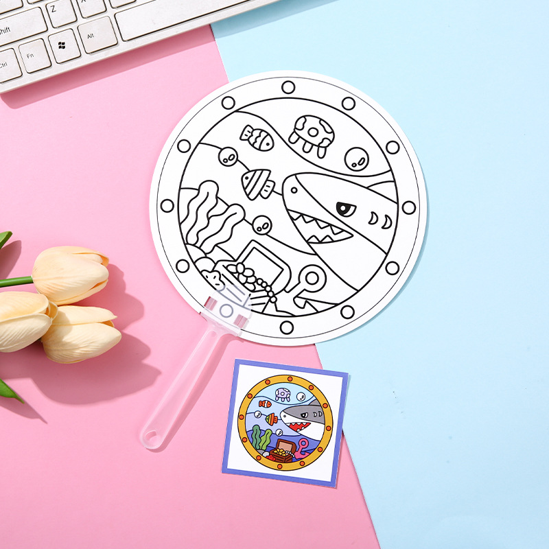 儿童手工涂鸦扇子创意diy涂色绘画小扇子卡通空白圆扇益智玩具