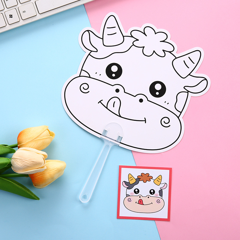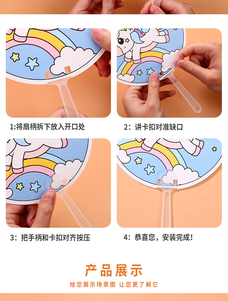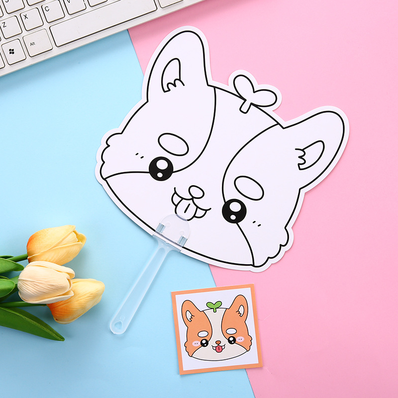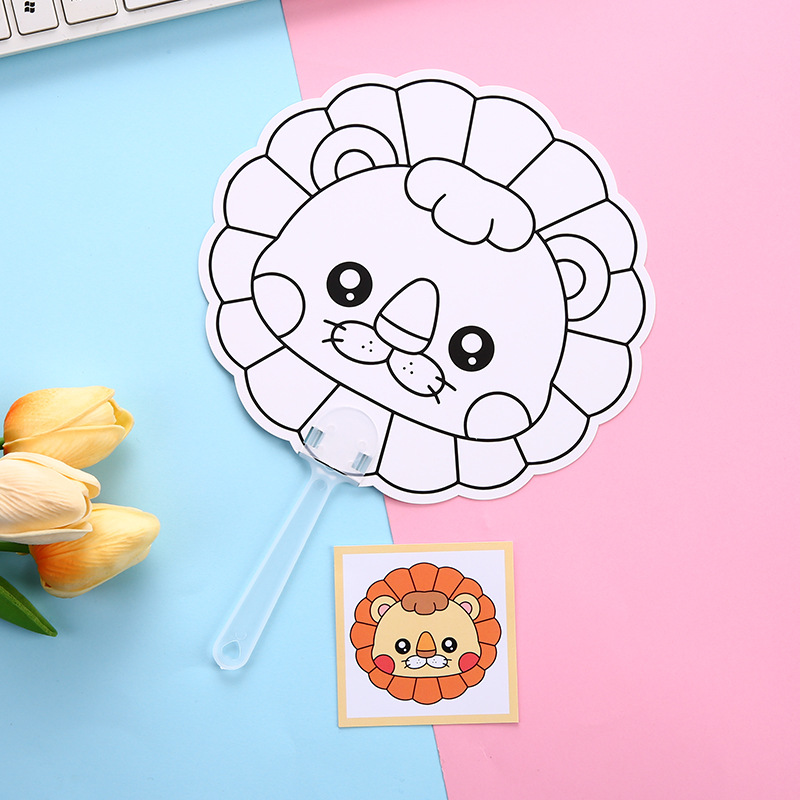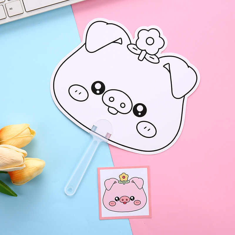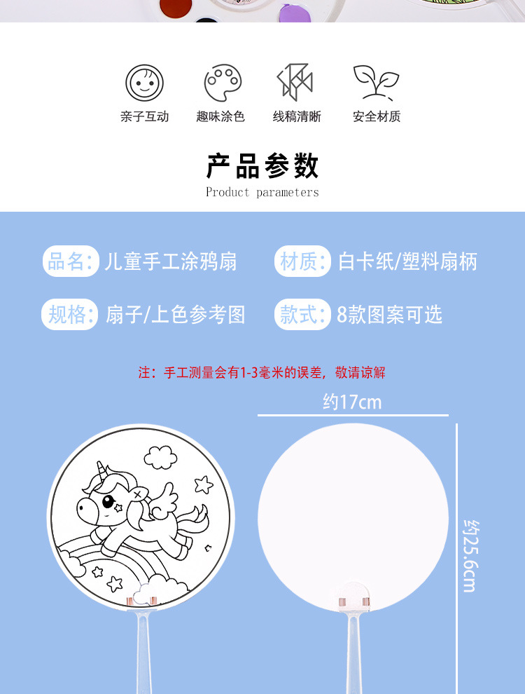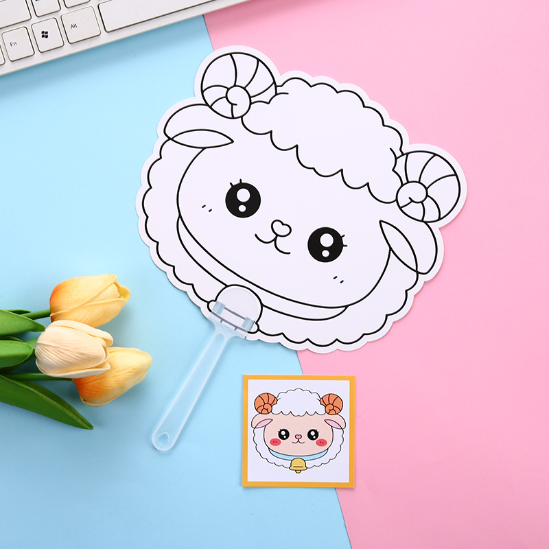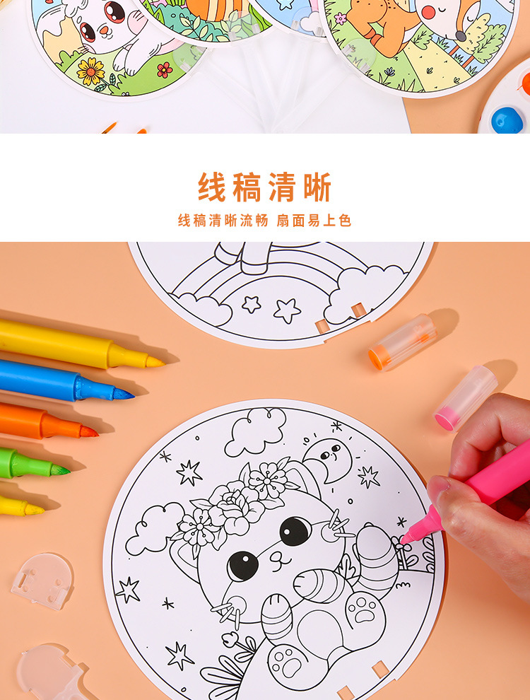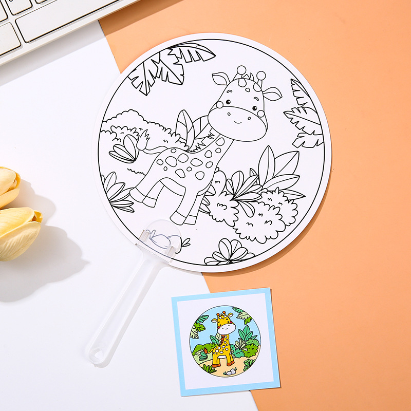 儿童手工涂鸦扇子创意diy涂色绘画小扇子卡通空白圆扇益智玩具