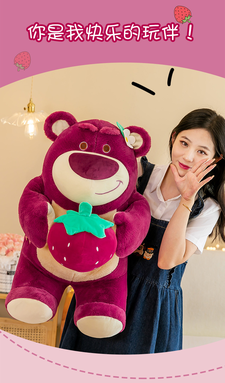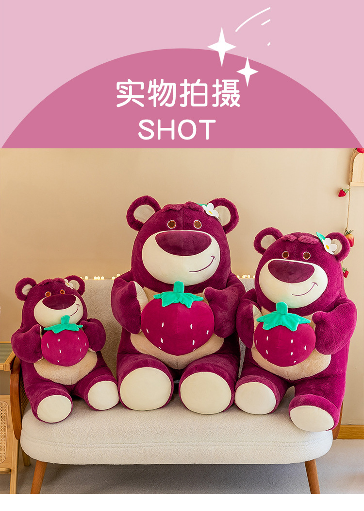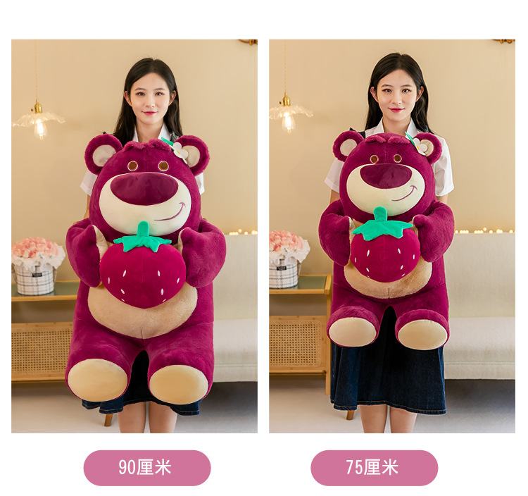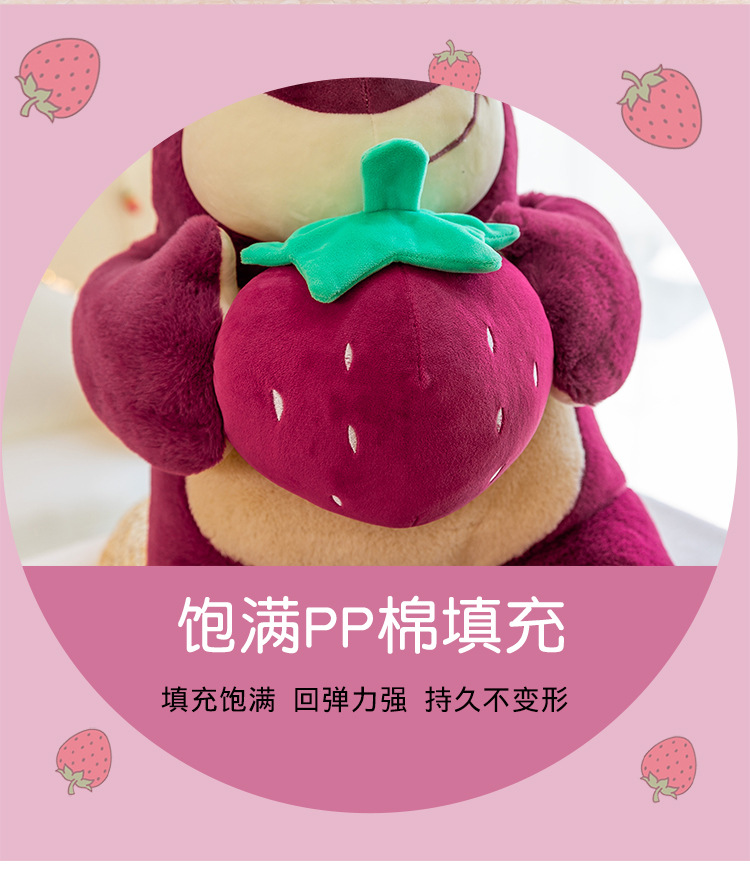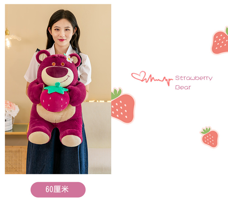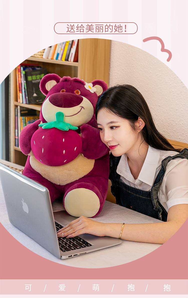卡通抱草莓小熊毛绒公仔玩具可爱草莓熊玩偶男女安抚睡觉抱枕礼物