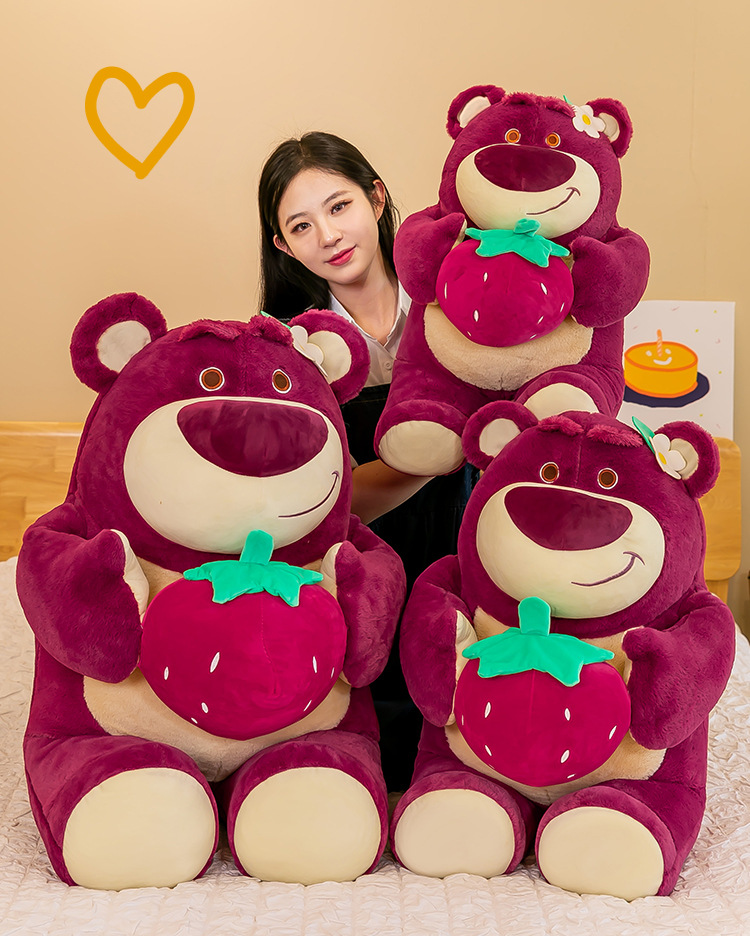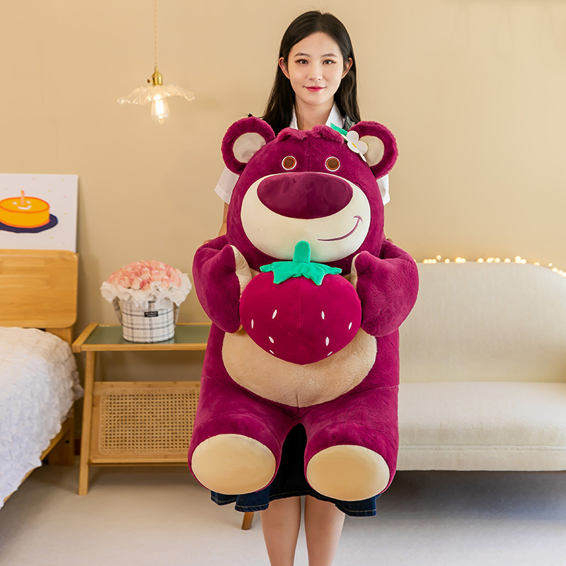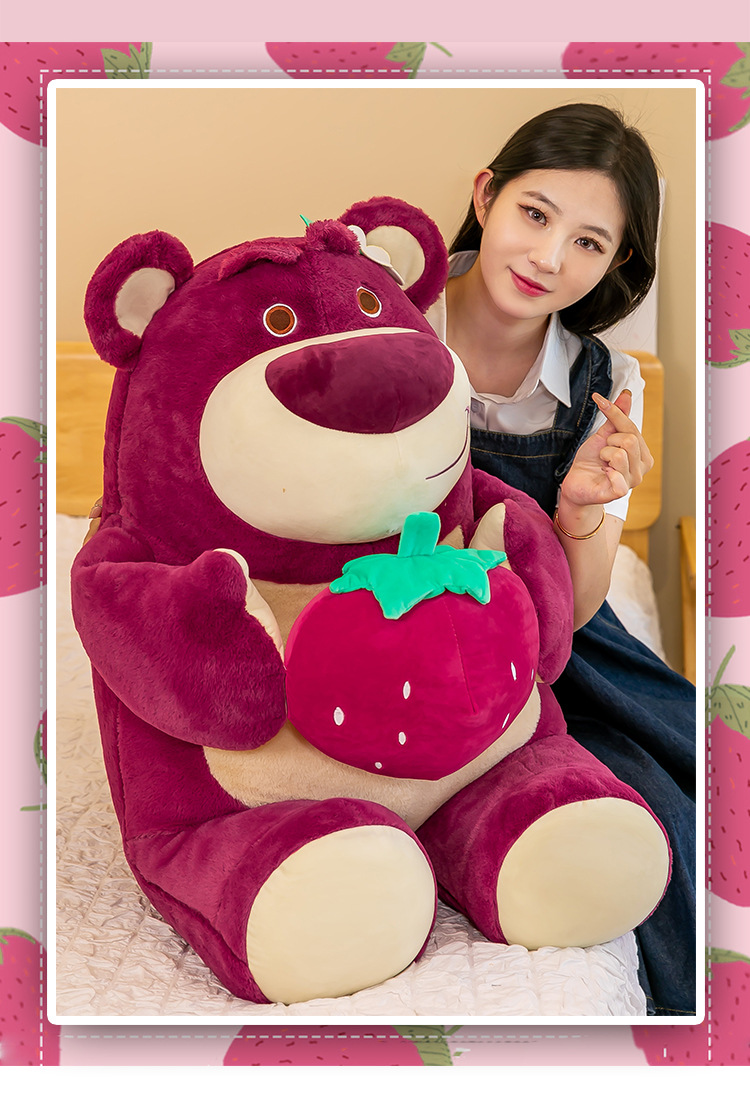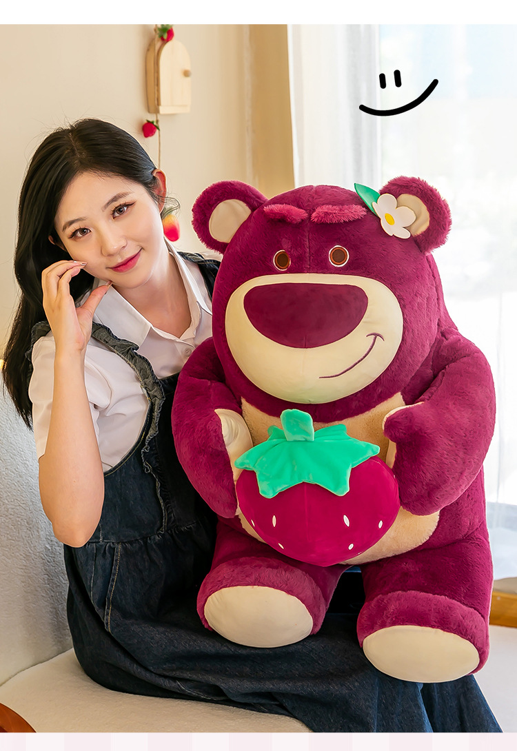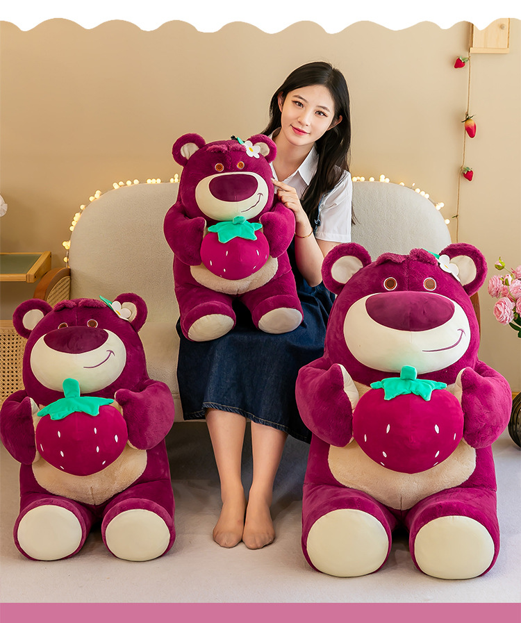 卡通抱草莓小熊毛绒公仔玩具可爱草莓熊玩偶男女安抚睡觉抱枕礼物