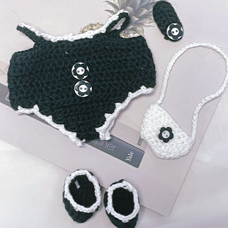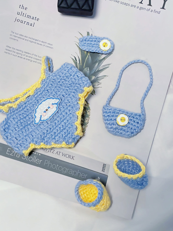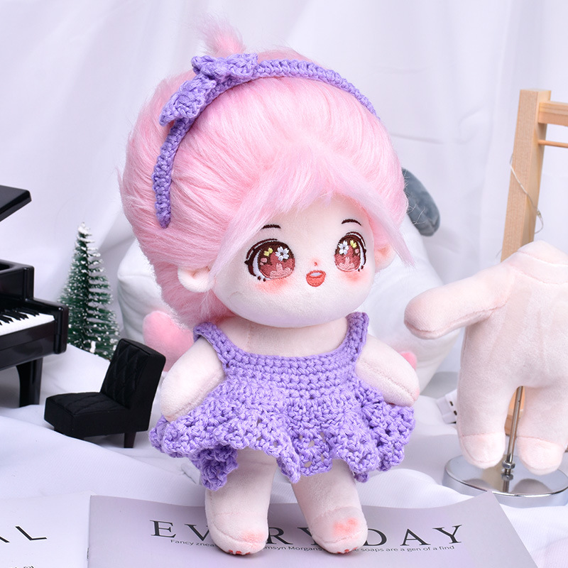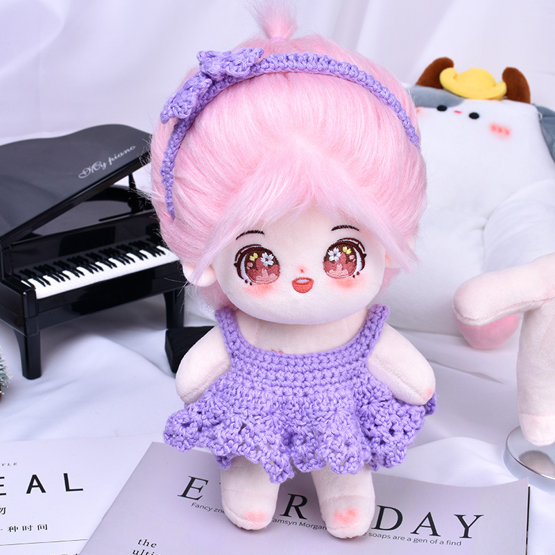 新款纯手工钩织棉花娃娃20cm衣服高颜值可爱风潮汕手钩花娃衣女