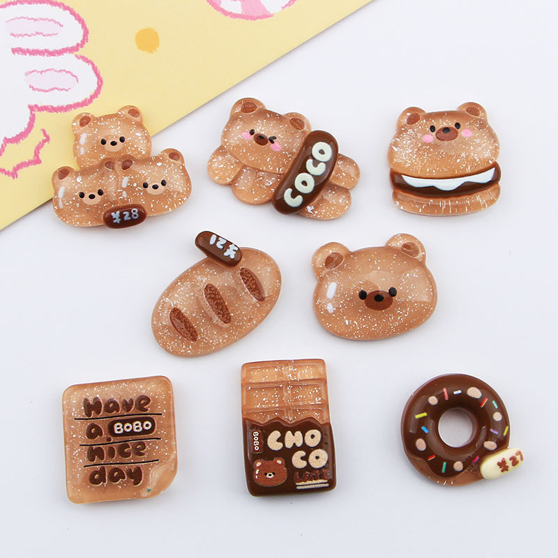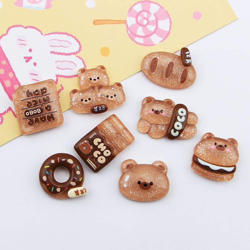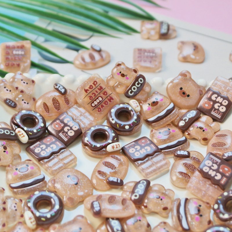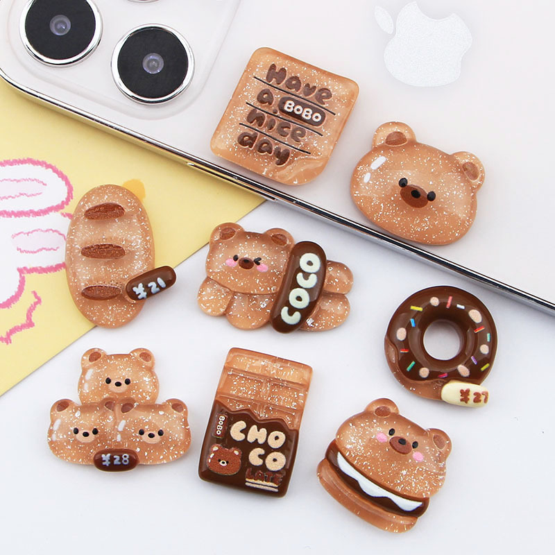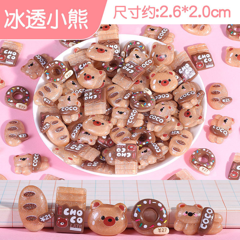 咖色冰透可爱熊饼干树脂配件咖啡熊 diy奶油胶手机壳发夹批发材料