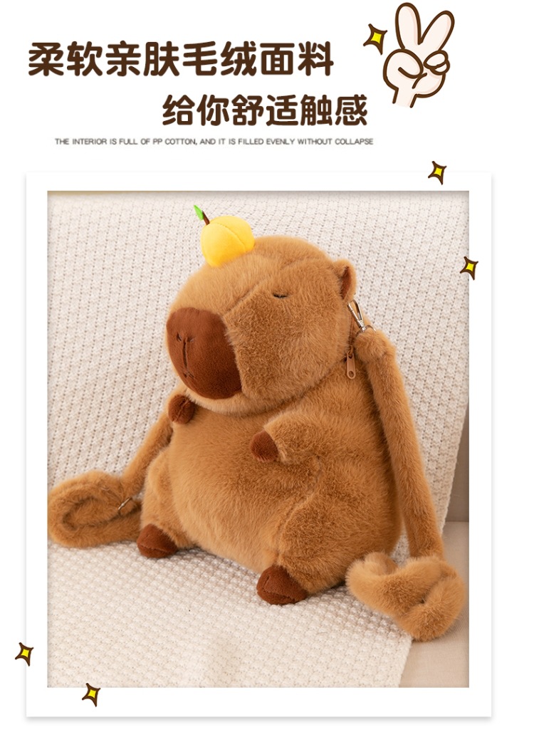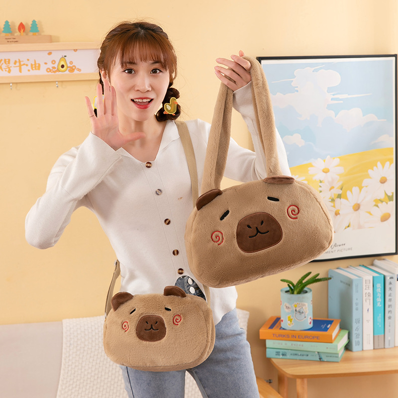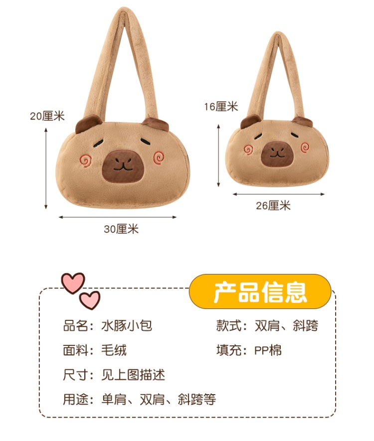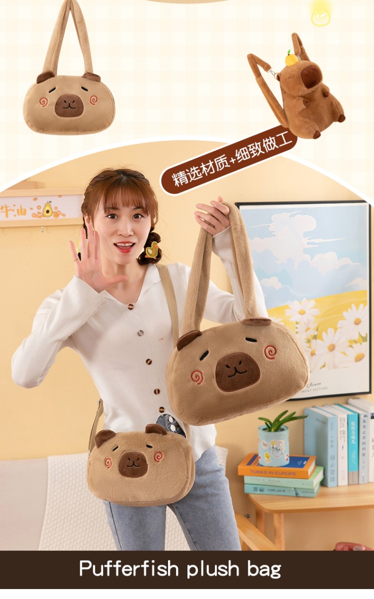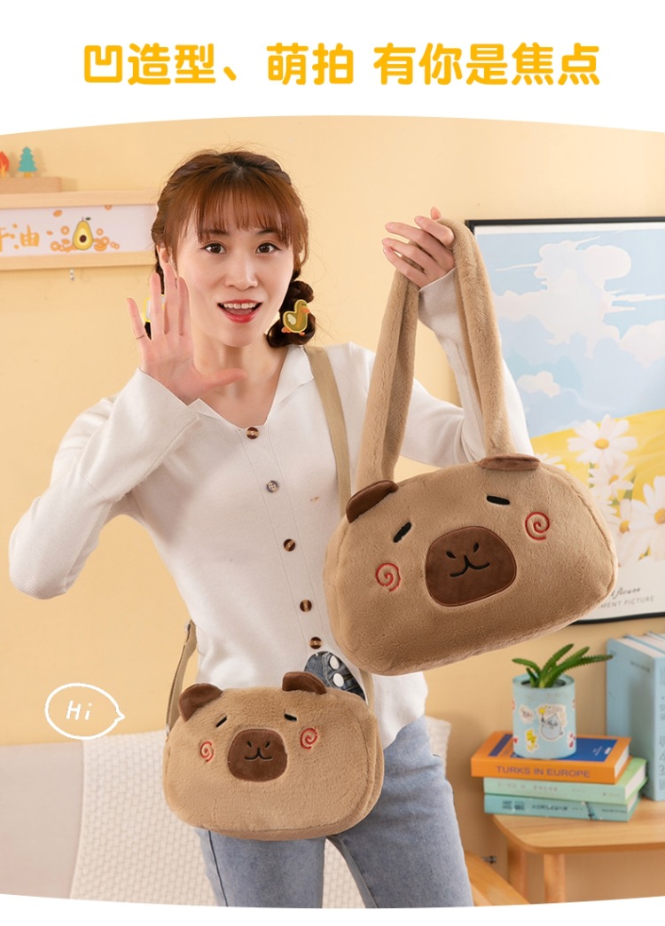 跨境可爱爆款水豚双肩背包卡通公仔手提包单肩斜跨包腋下包大容量