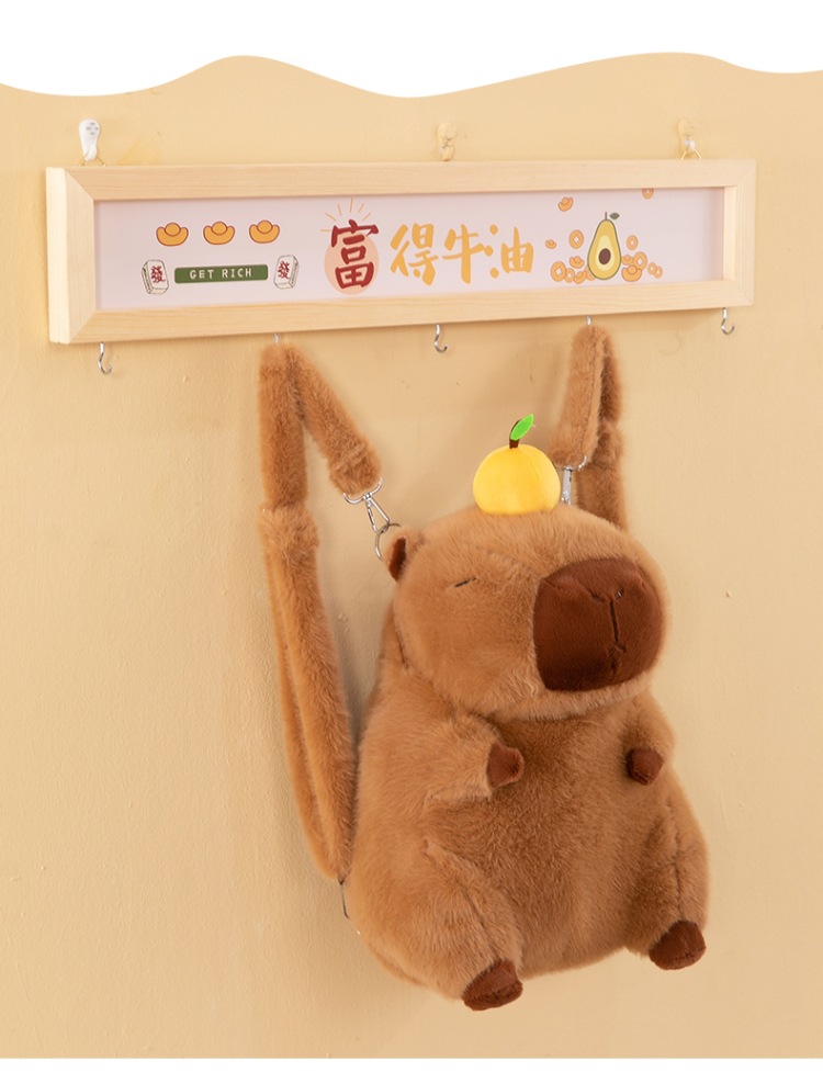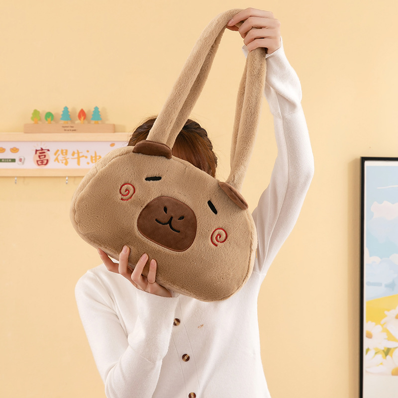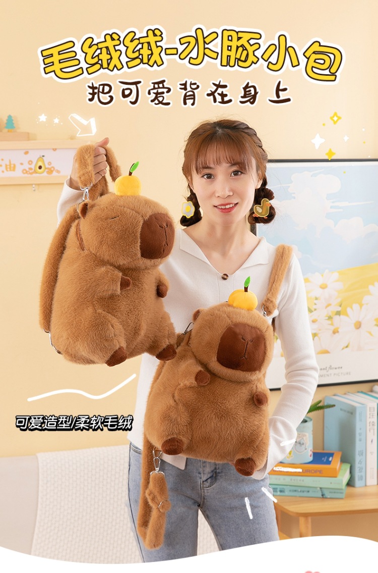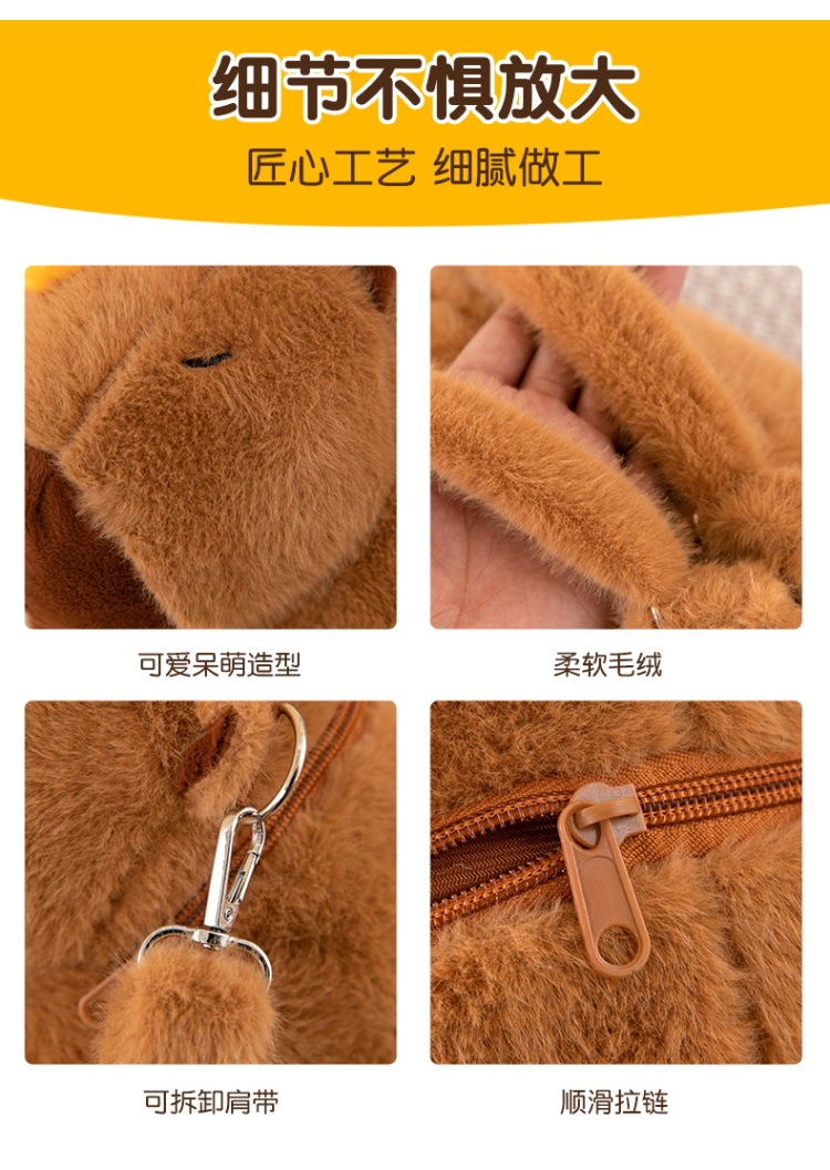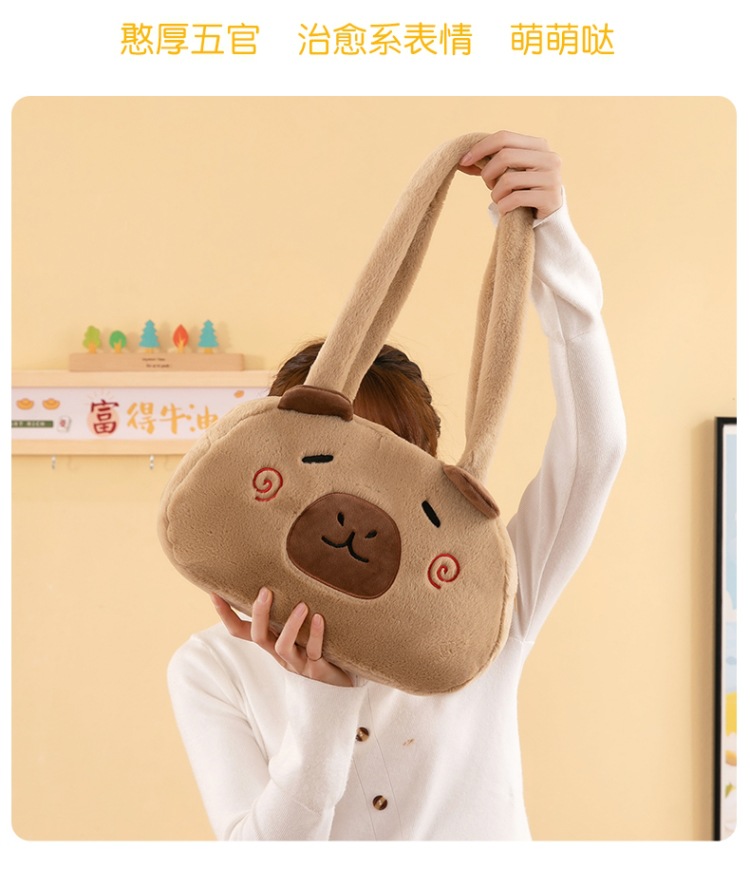 跨境可爱爆款水豚双肩背包卡通公仔手提包单肩斜跨包腋下包大容量
