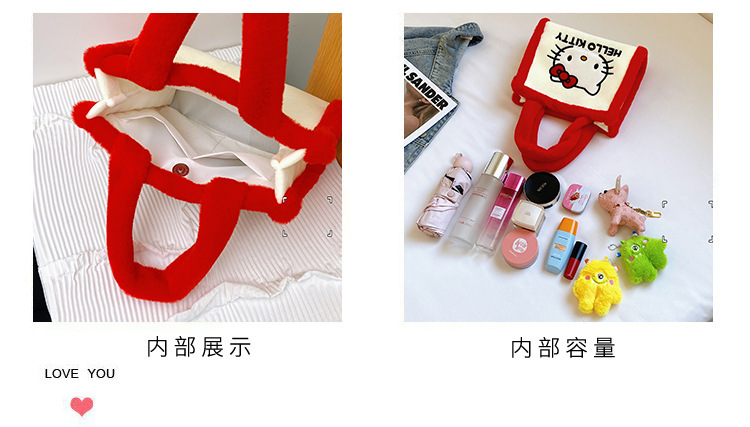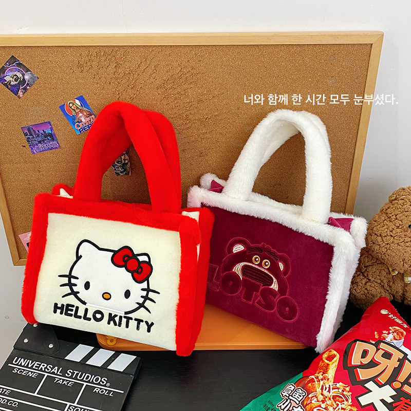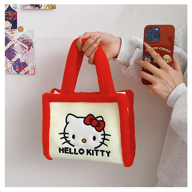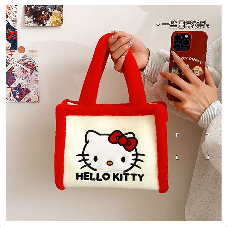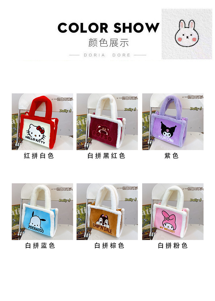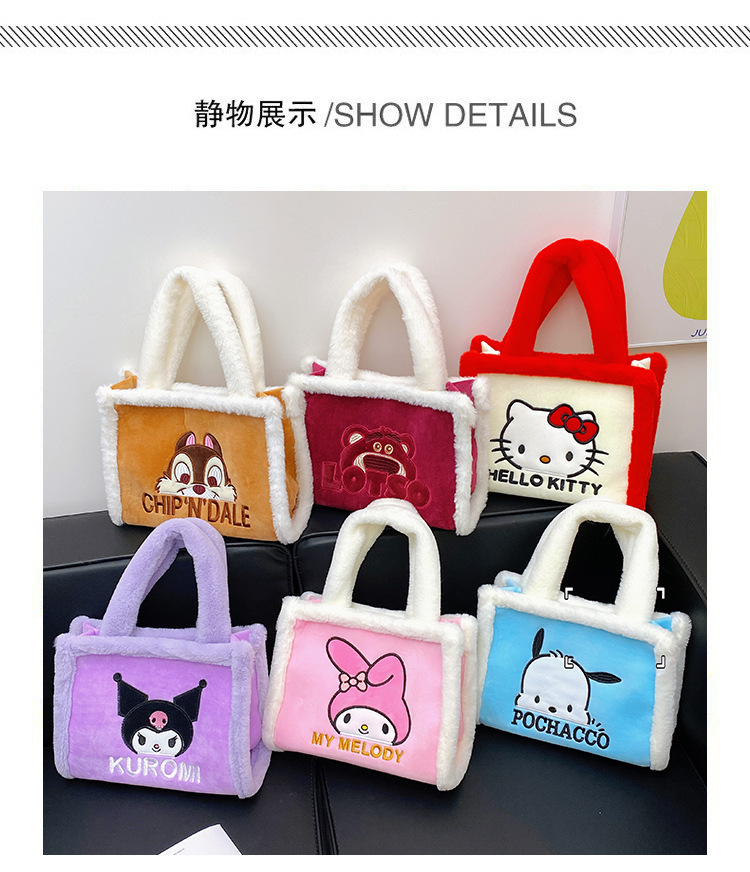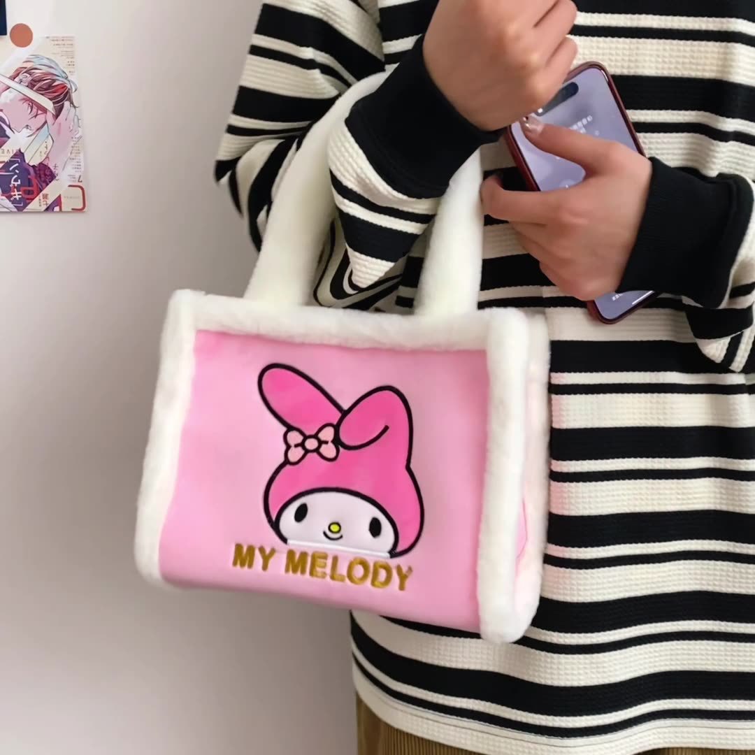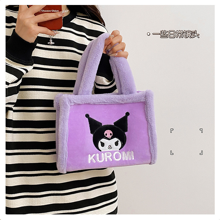 跨境卡通三丽鸥手提包毛绒玩具包大容量托特包女士单肩包腋下包包
