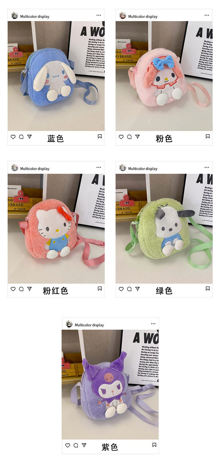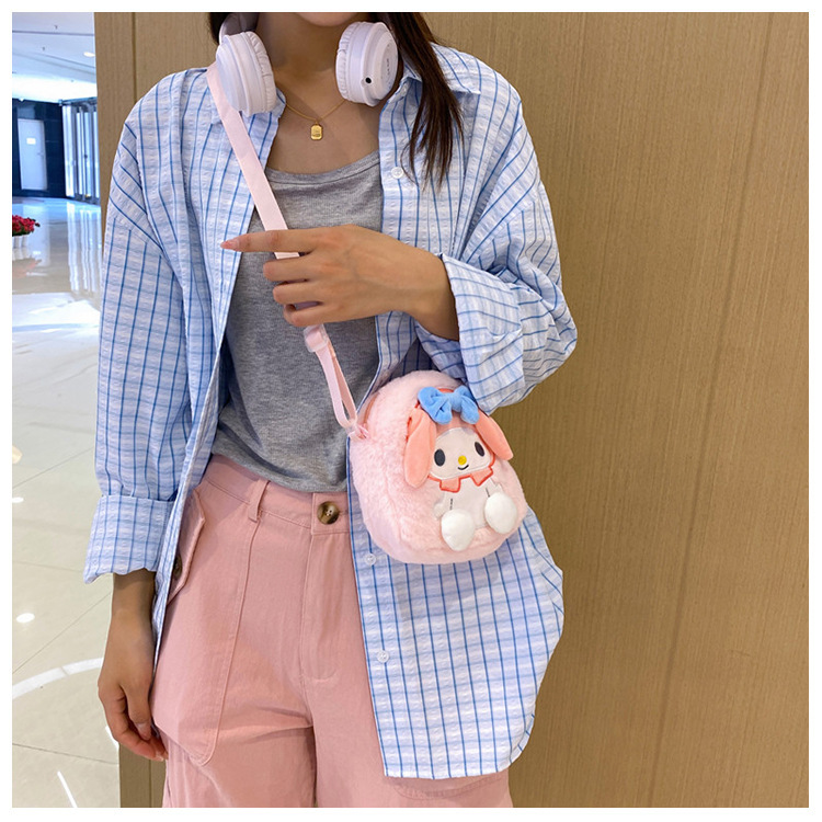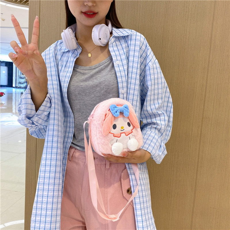 跨境新款卡通三丽鸥毛绒玩具包单肩斜挎包可爱库洛米化妆包批发