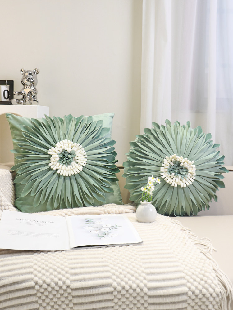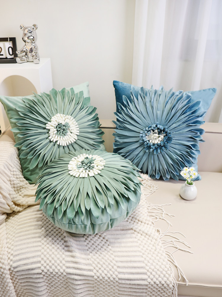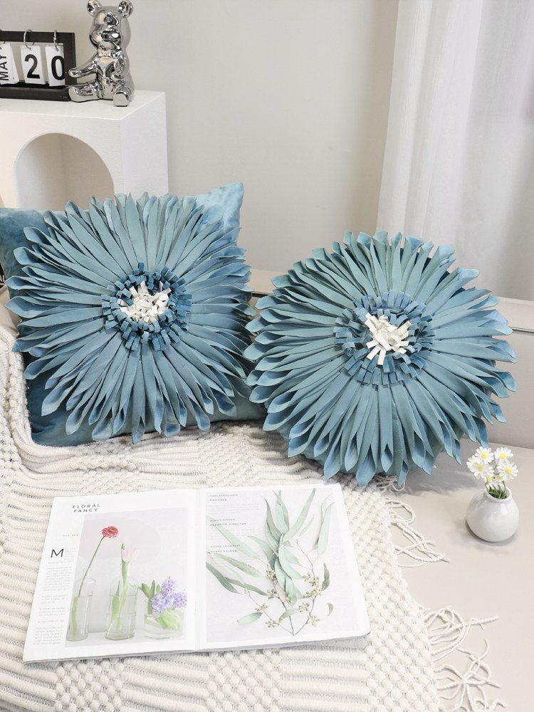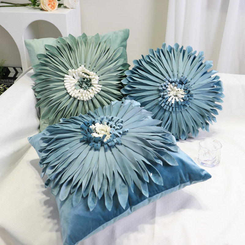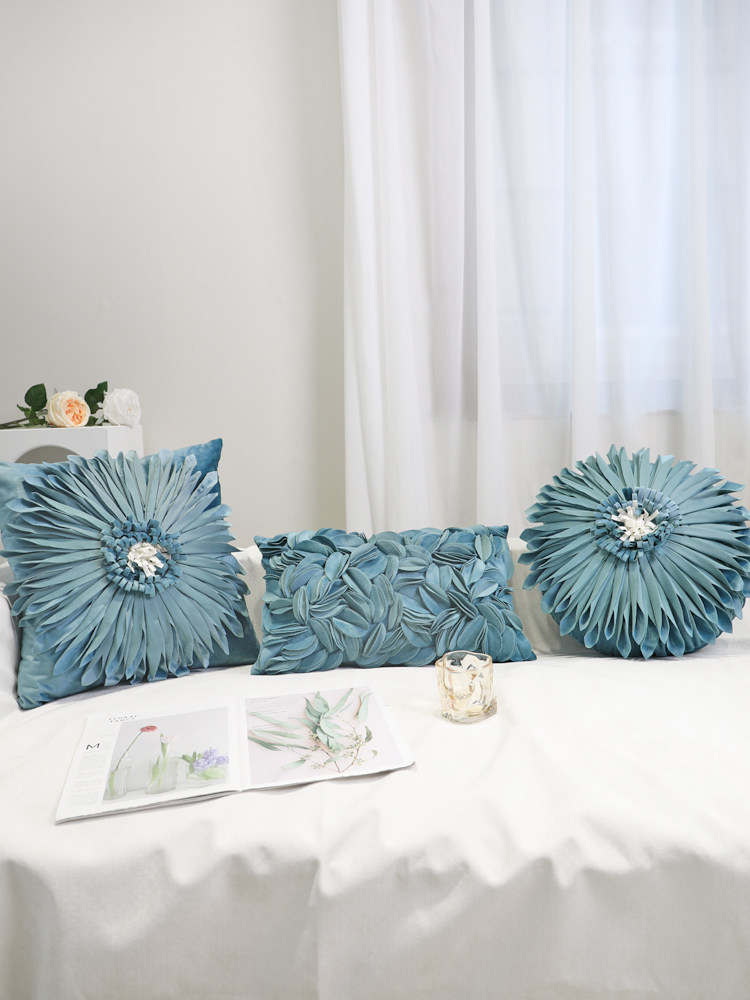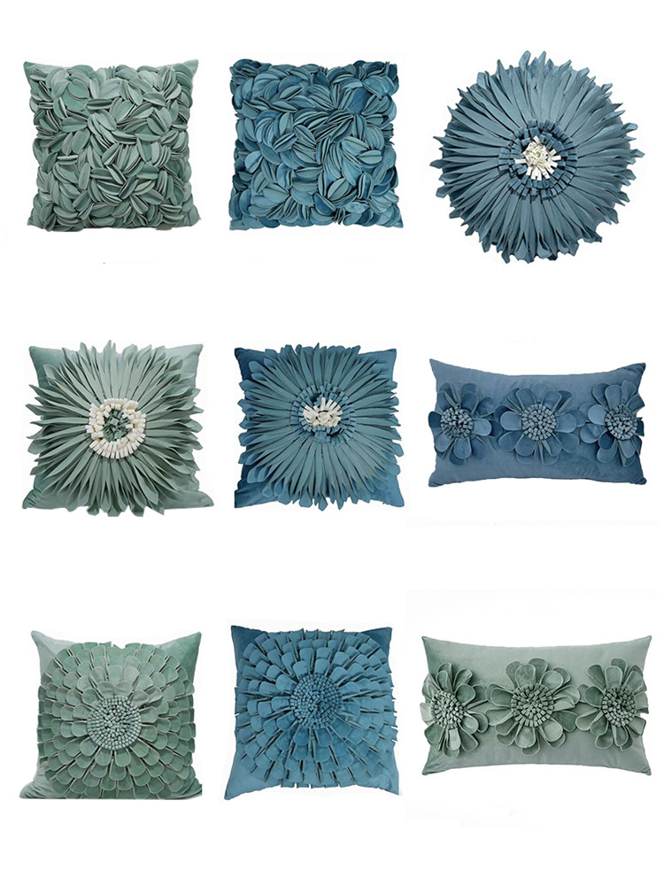 北欧纯色抱枕沙发床头靠枕雾霾蓝高级色时尚靠包轻奢花朵装饰枕套