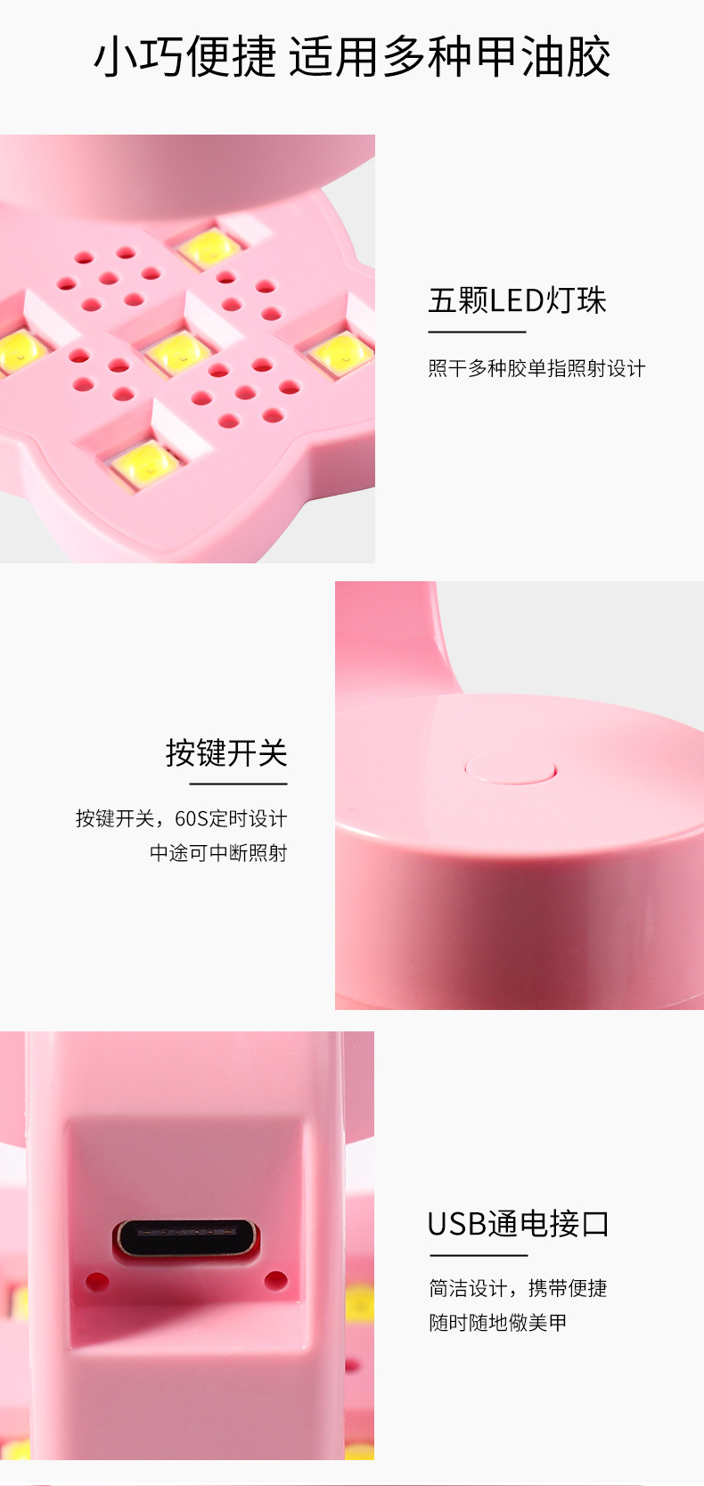 新款蝴蝶美甲灯5LED光疗灯18w紫外线美甲灯便携不黑手速干光疗A1